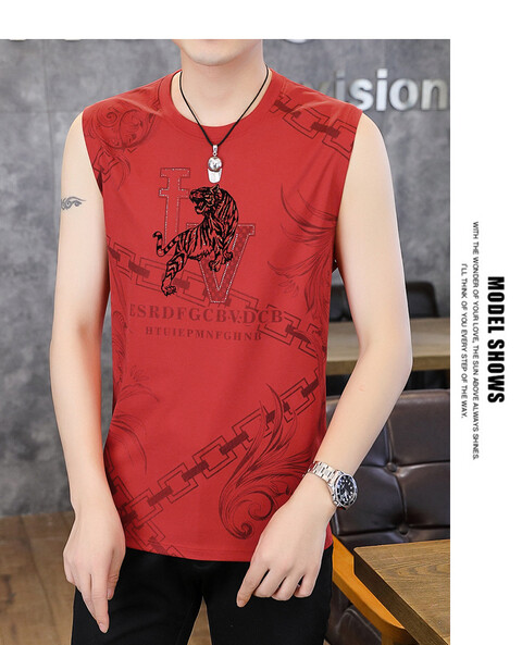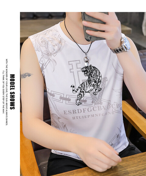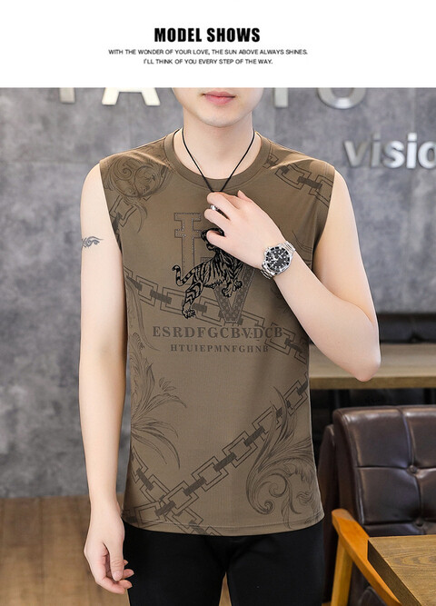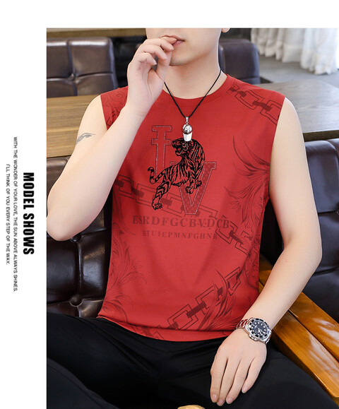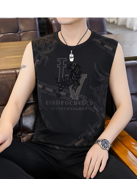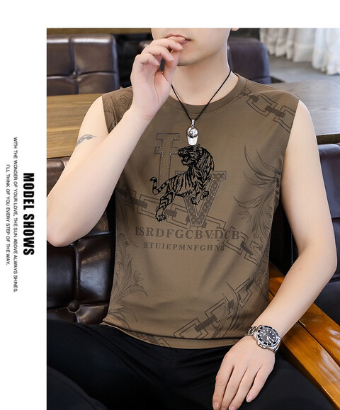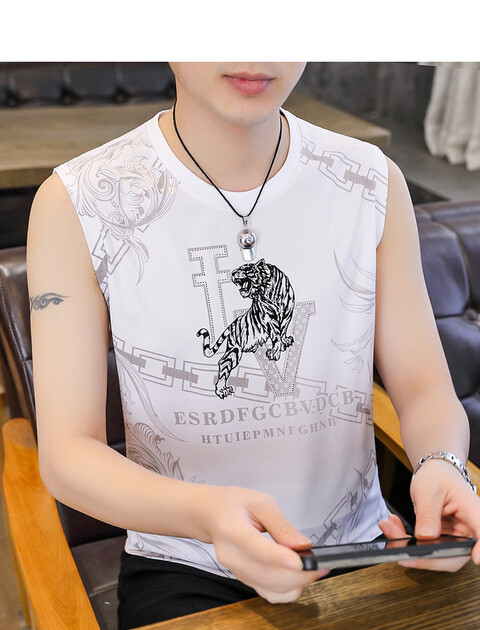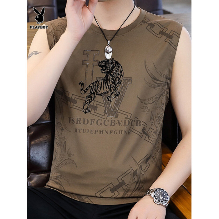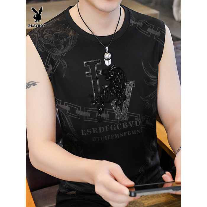 花花公子冰絲短袖t恤男士夏季新款彈力速乾時尚無袖背心男裝T恤衫