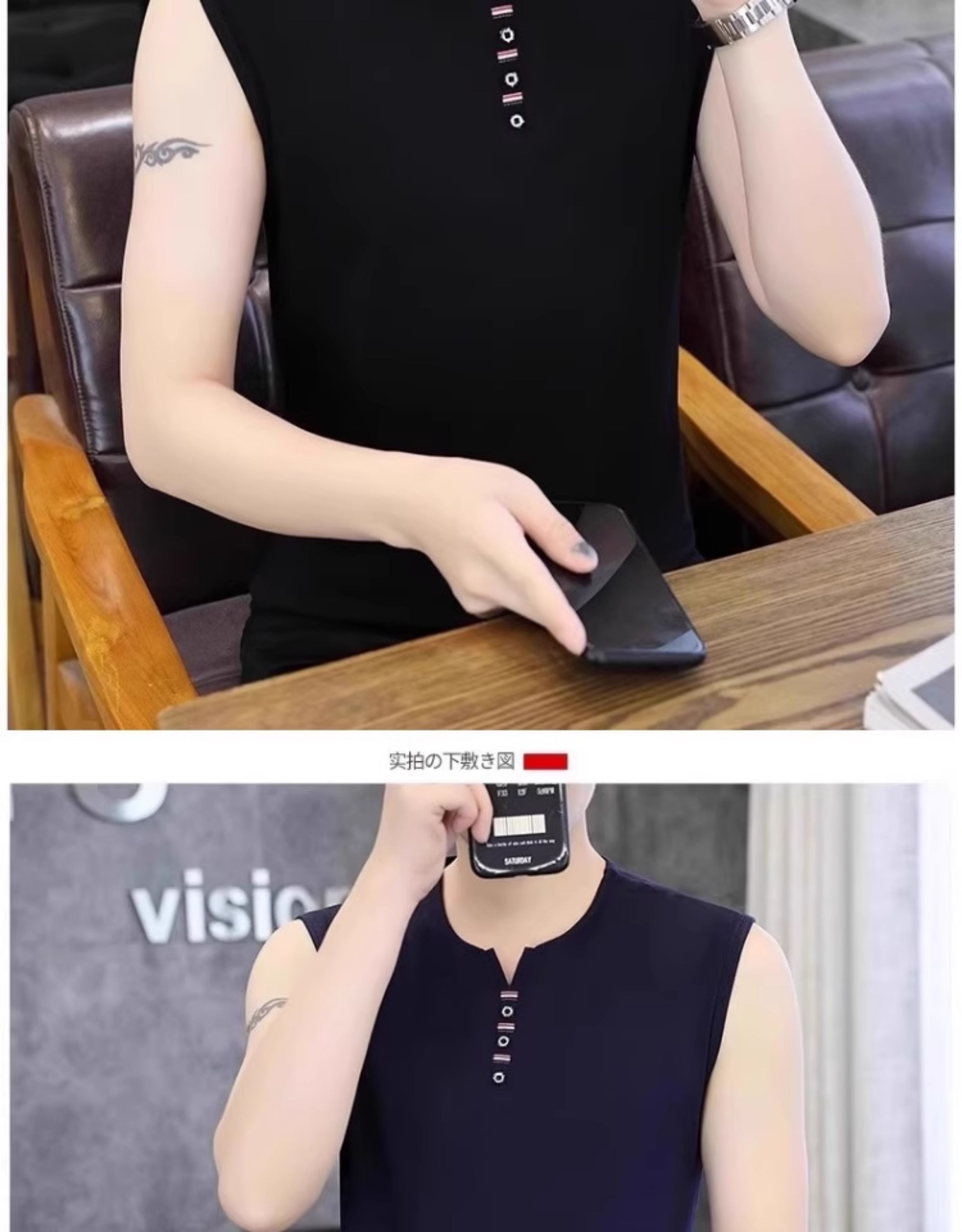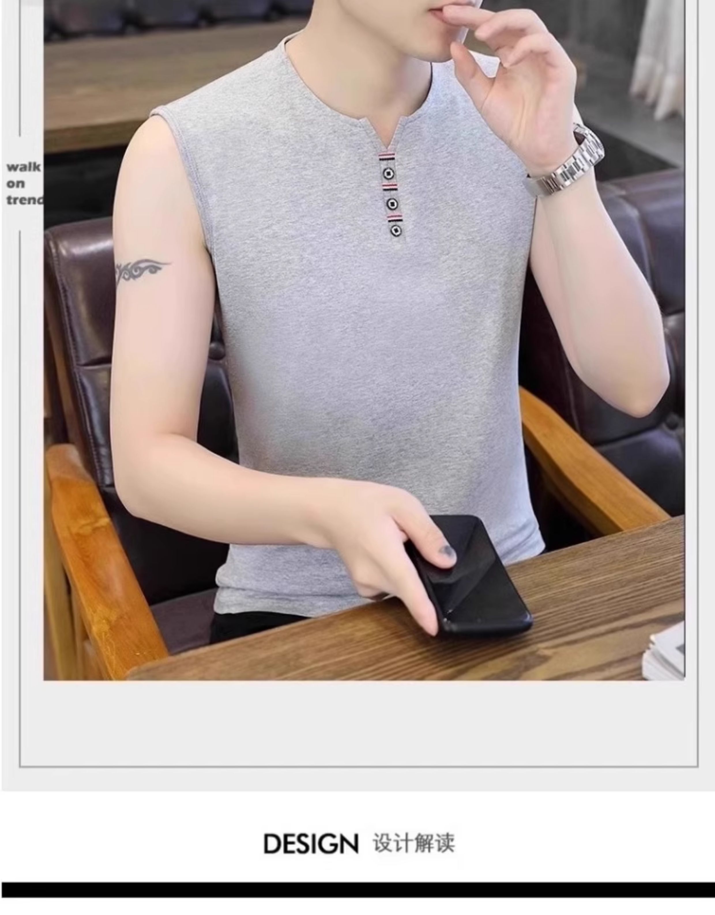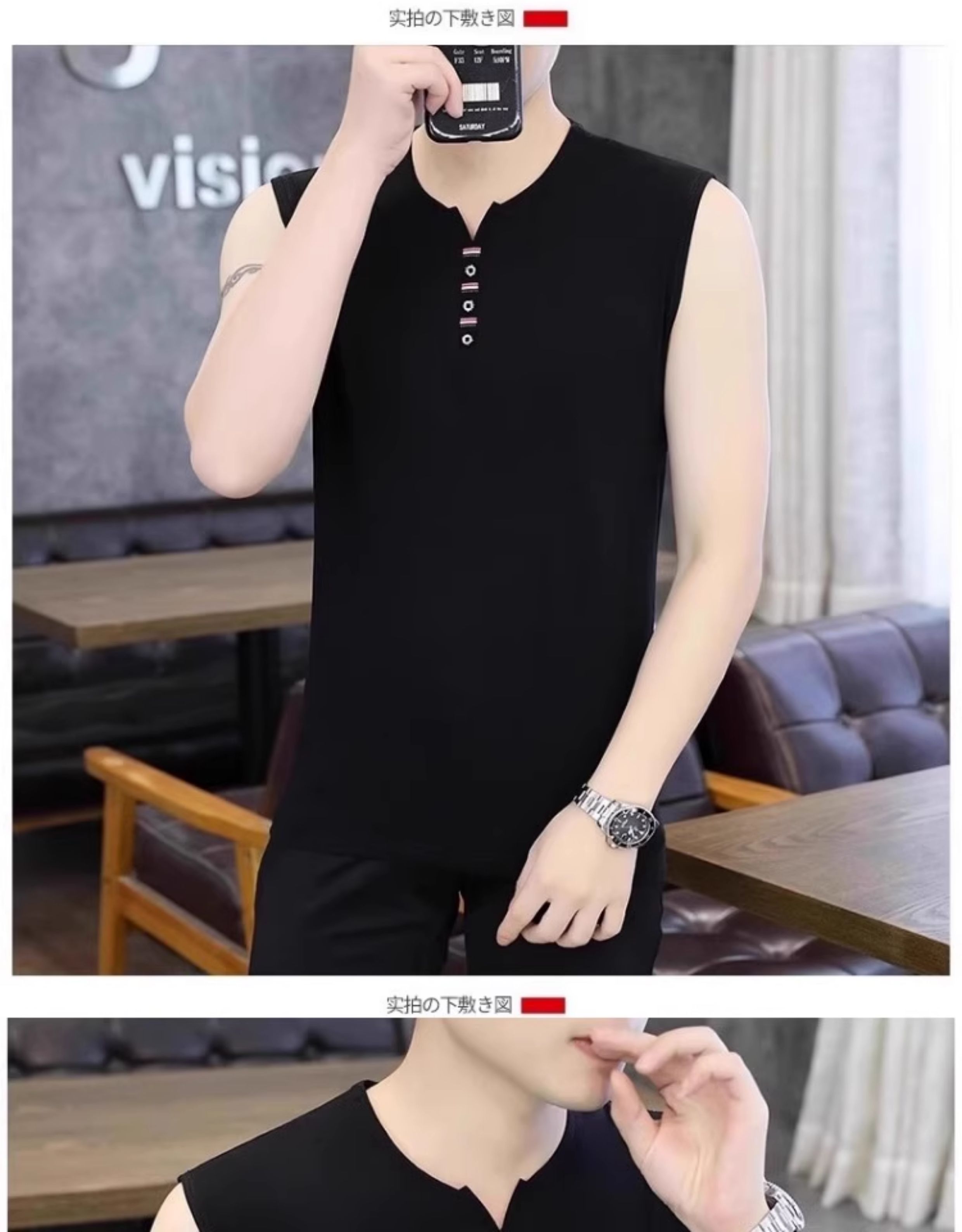 高級v領背心男士夏季2025新款潮流純色坎肩休閒運動無袖t恤衫男款