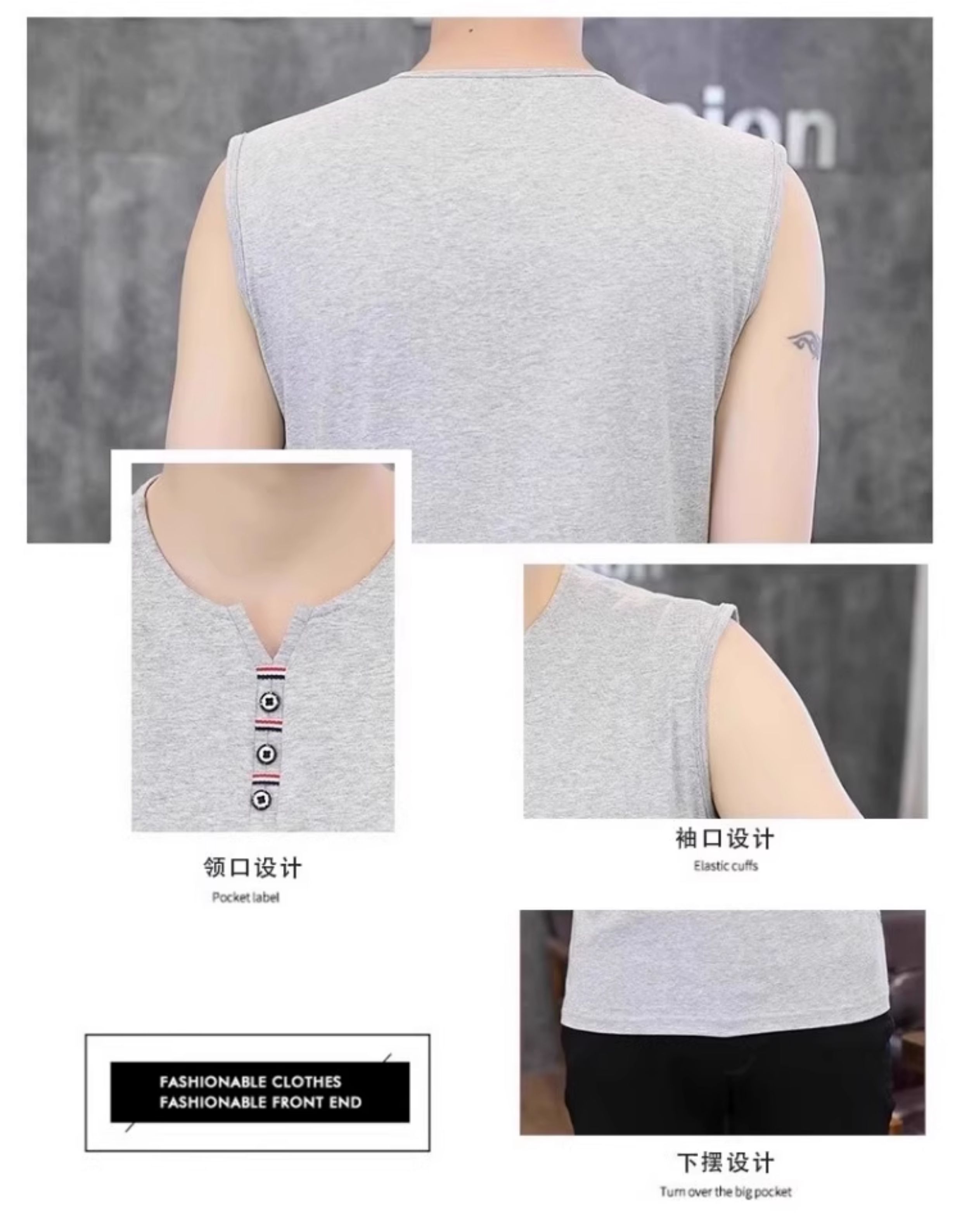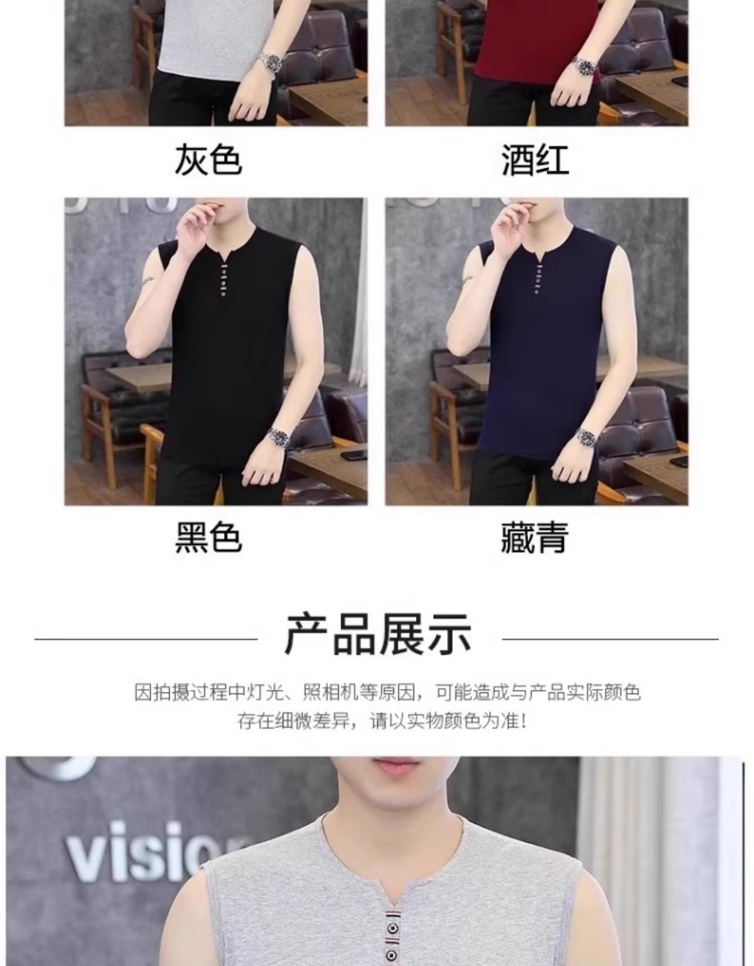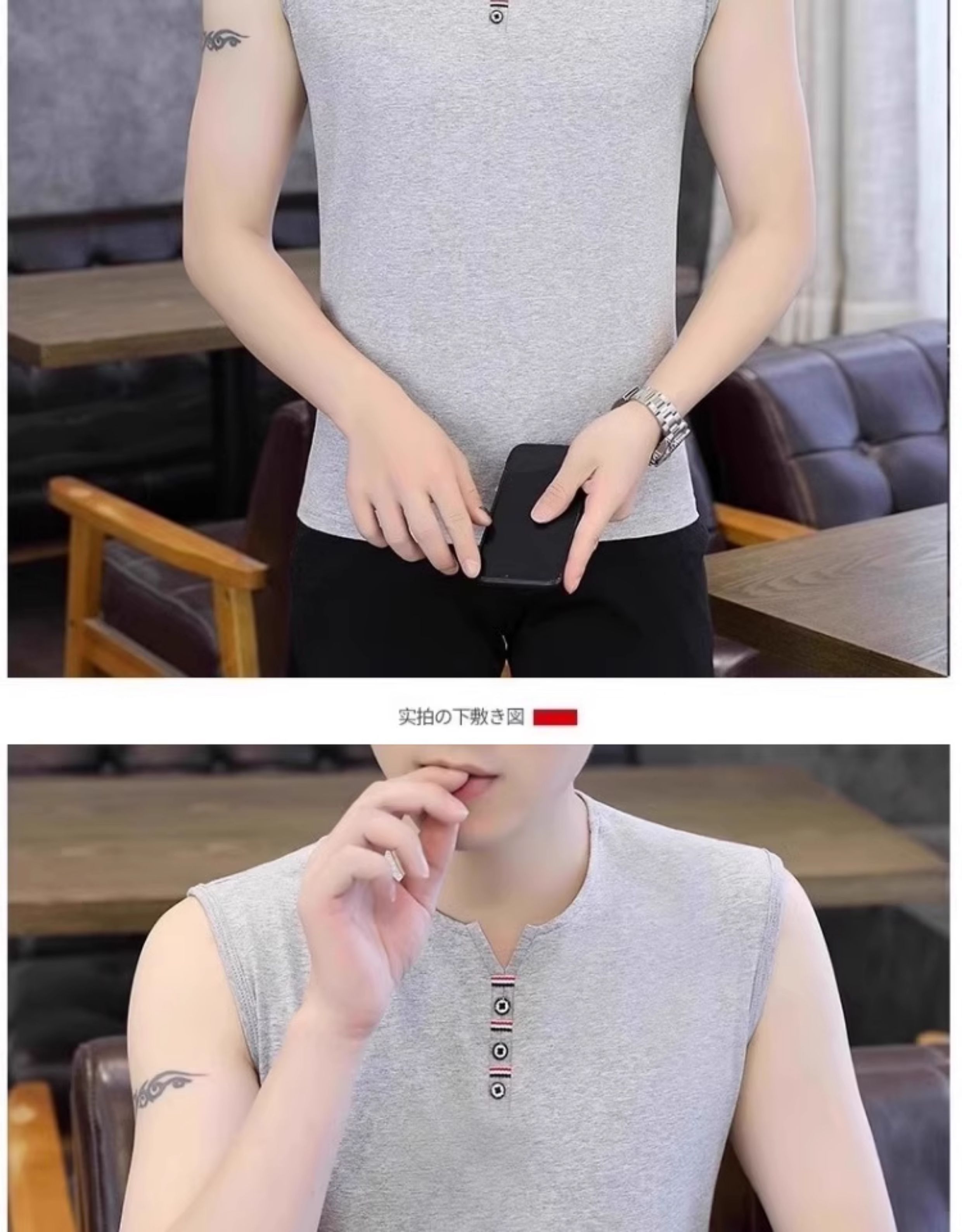 高級v領背心男士夏季2025新款潮流純色坎肩休閒運動無袖t恤衫男款