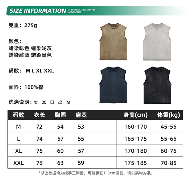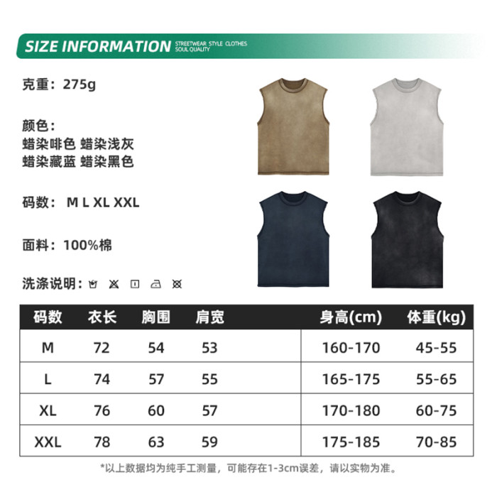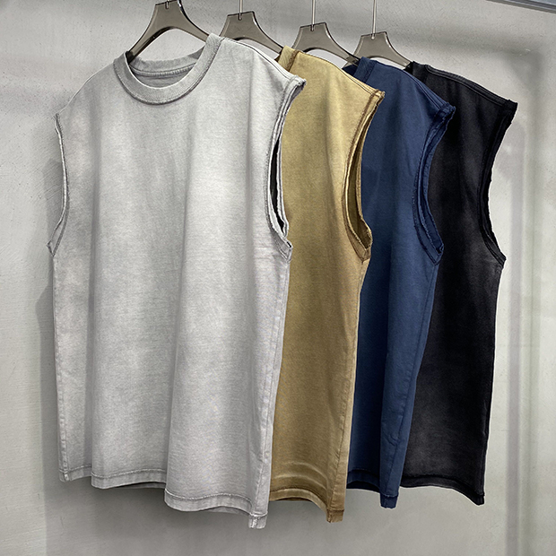 夏季美式重磅復古洗水做舊散邊背心男女寬松嘻哈oversize無袖T恤