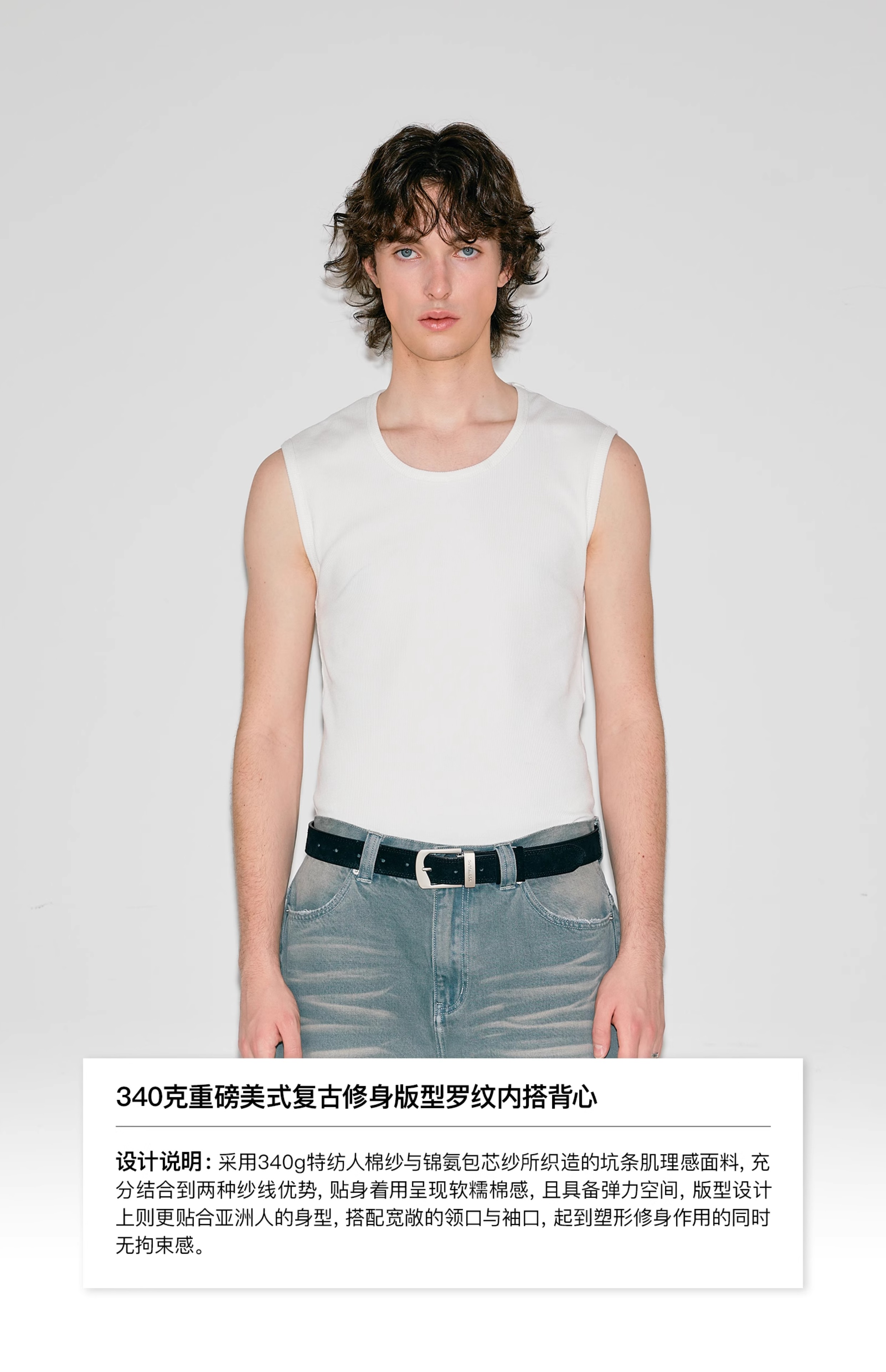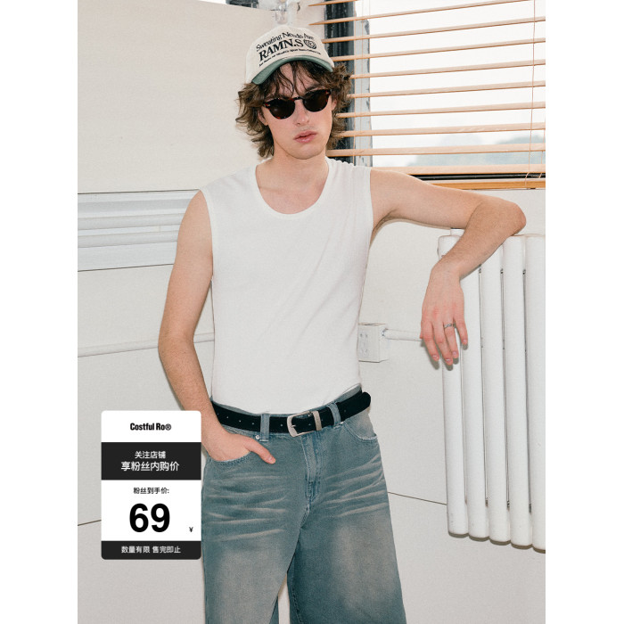 Costful Ro特紡人棉紗340g重磅螺紋背心 透氣親膚修身內搭坎肩