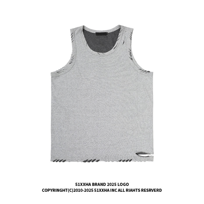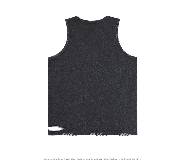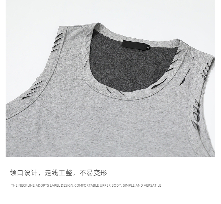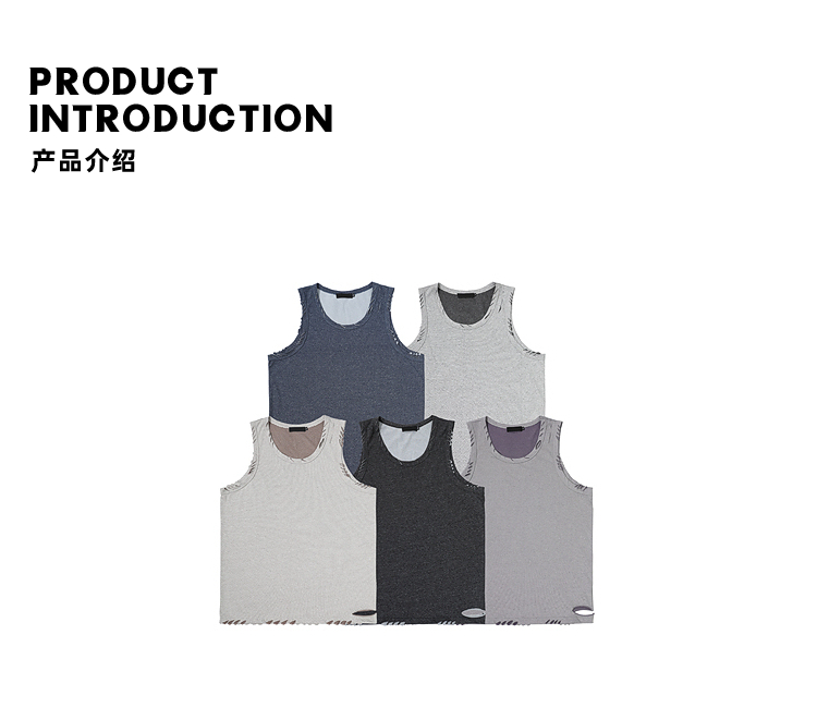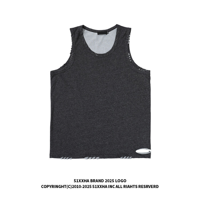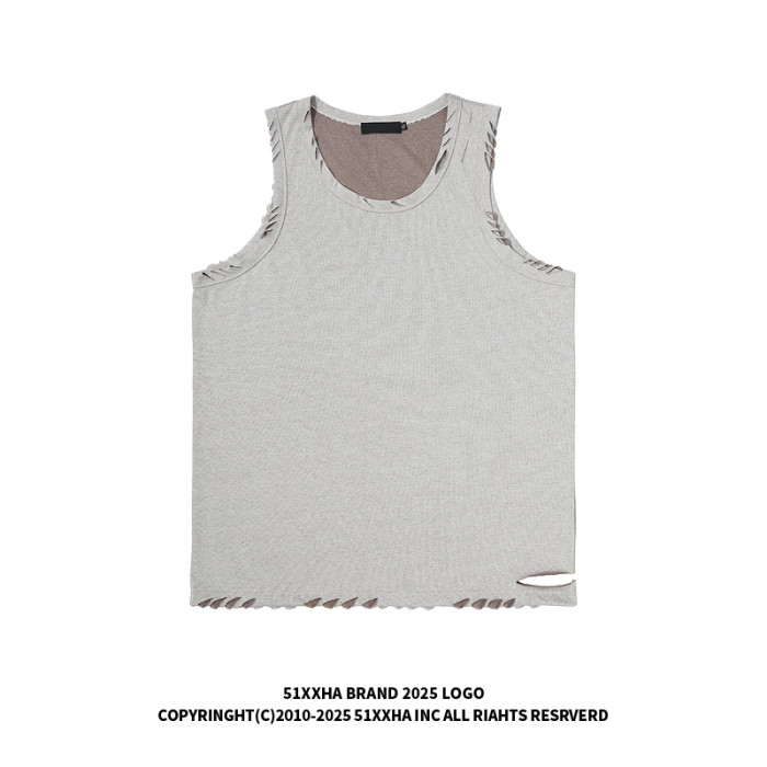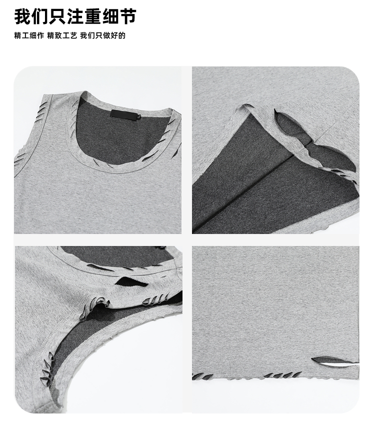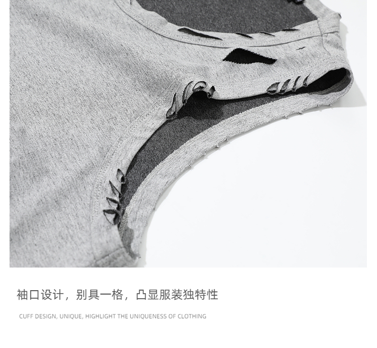 51嘻哈美式高街設計感破洞背心運動健身坎肩寬松休閒無袖T恤男款