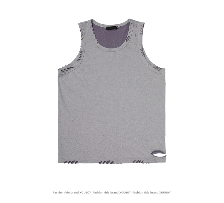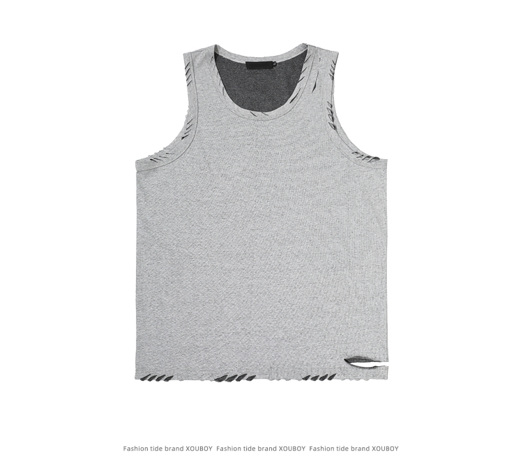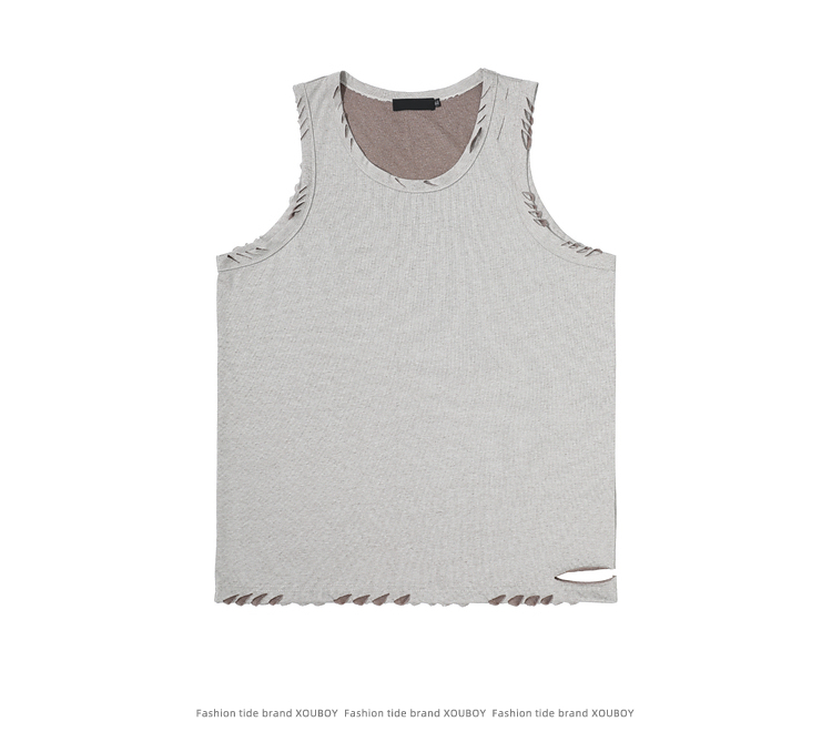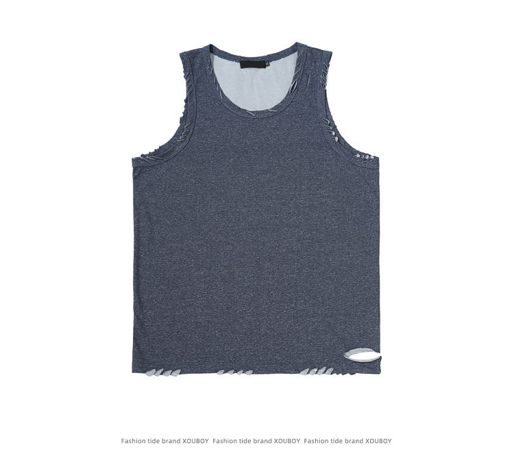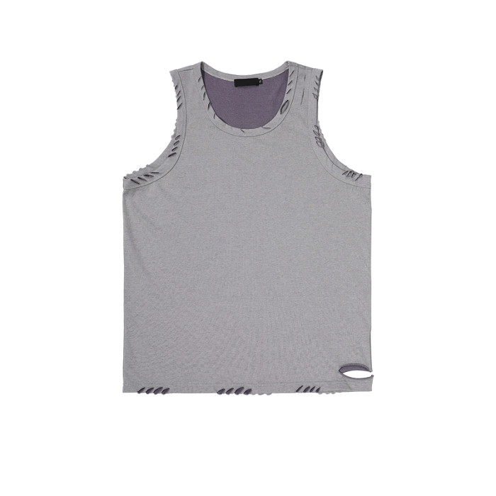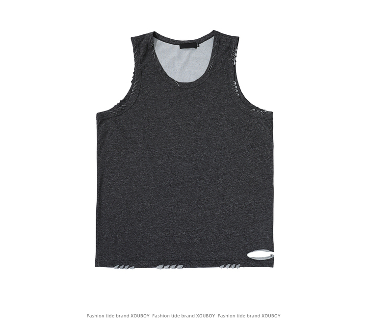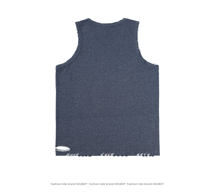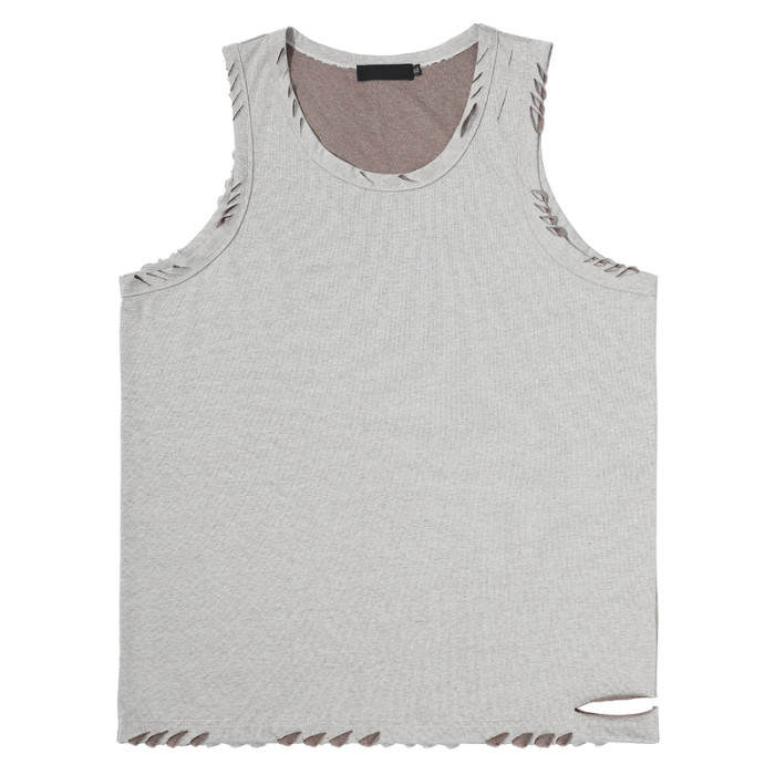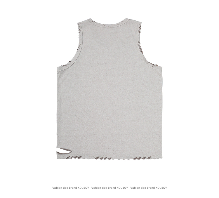 51嘻哈美式高街設計感破洞背心運動健身坎肩寬松休閒無袖T恤男款