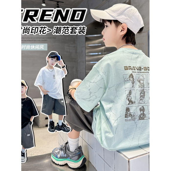 男童夏季套裝2025新款兒童裝夏裝潮帥氣時髦男孩短袖運動夏款衣服