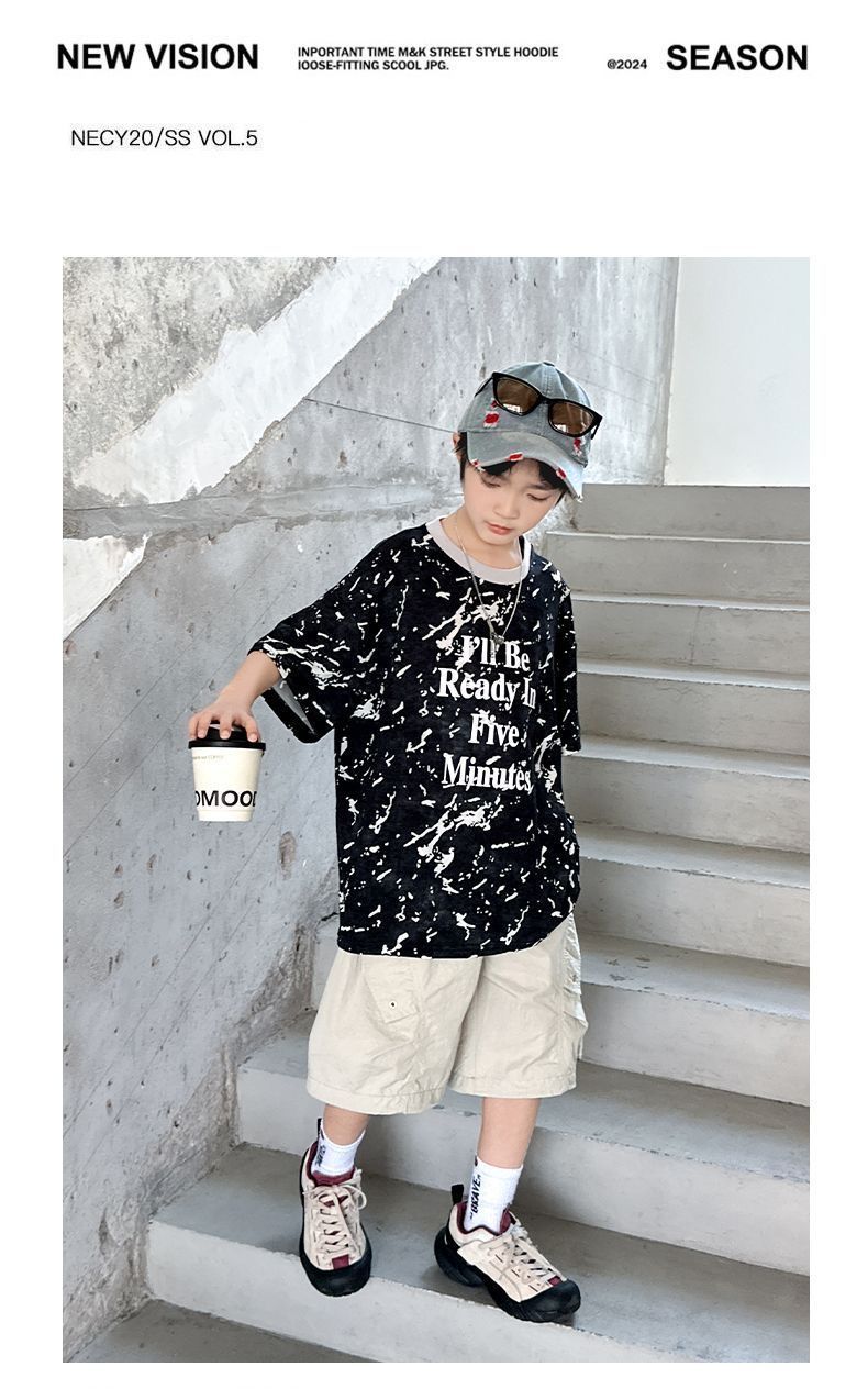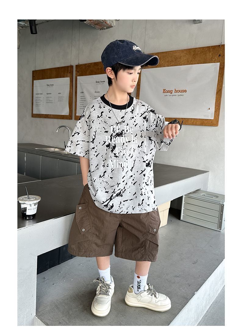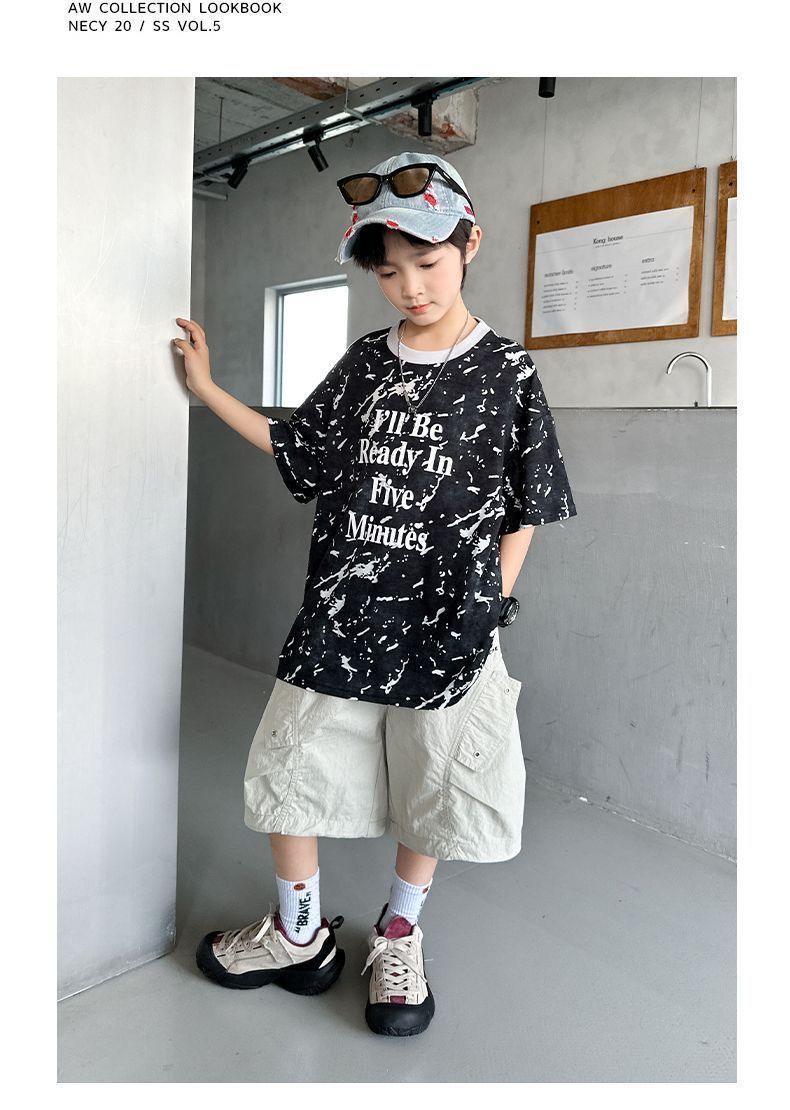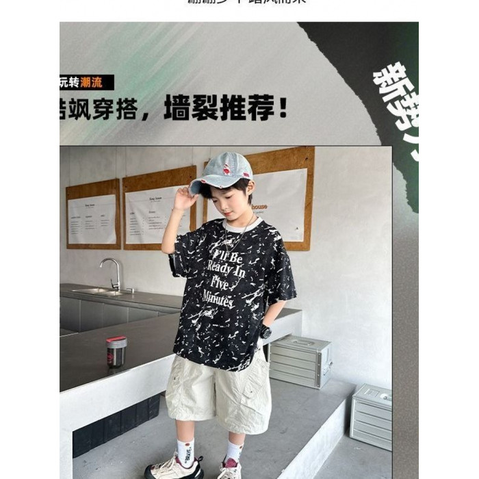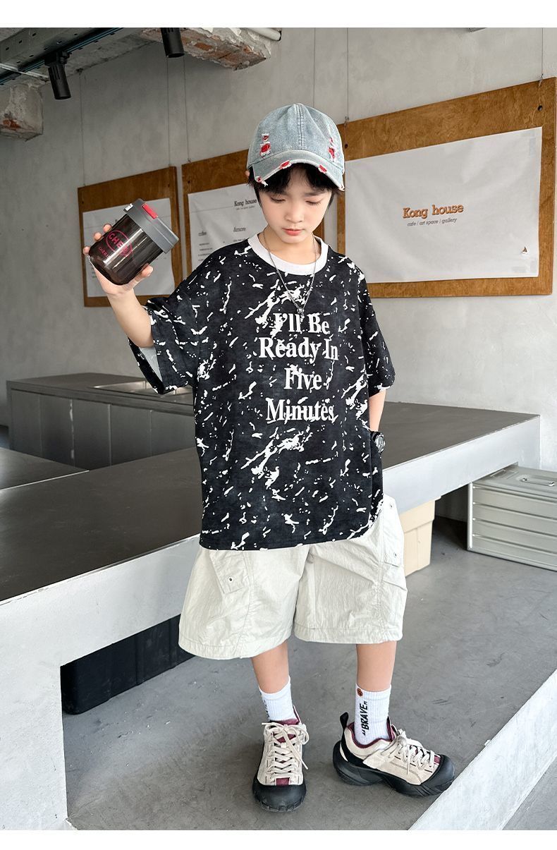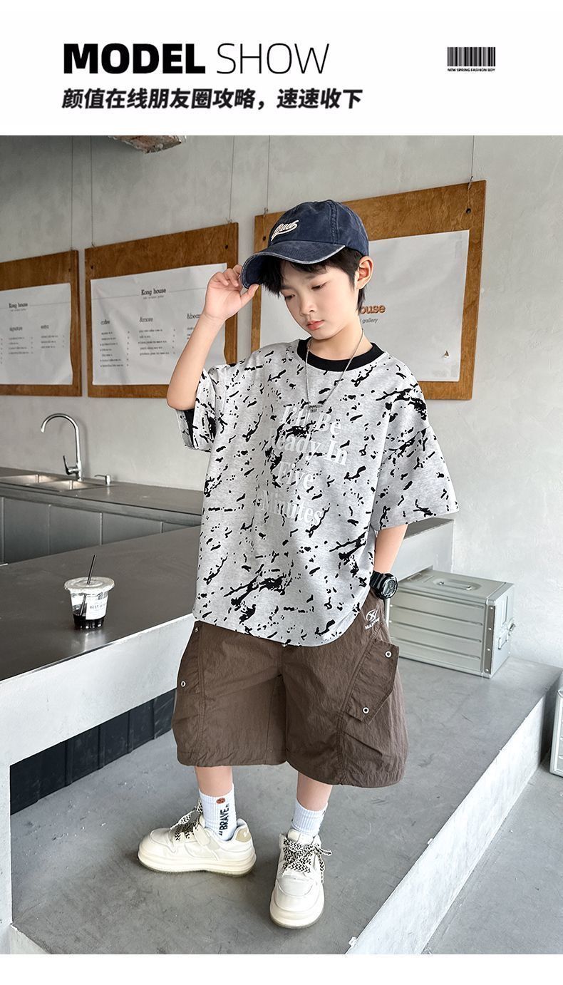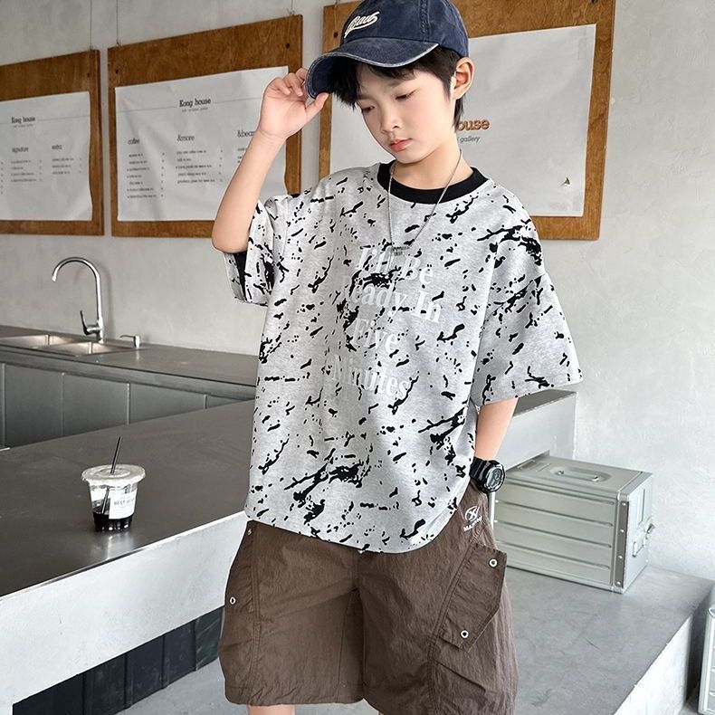 安哼安哼男童夏裝帥氣時髦燒畫兒童夏季短袖2025新款中大童裝夏款