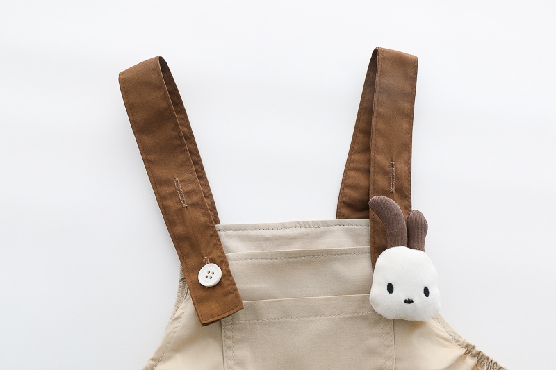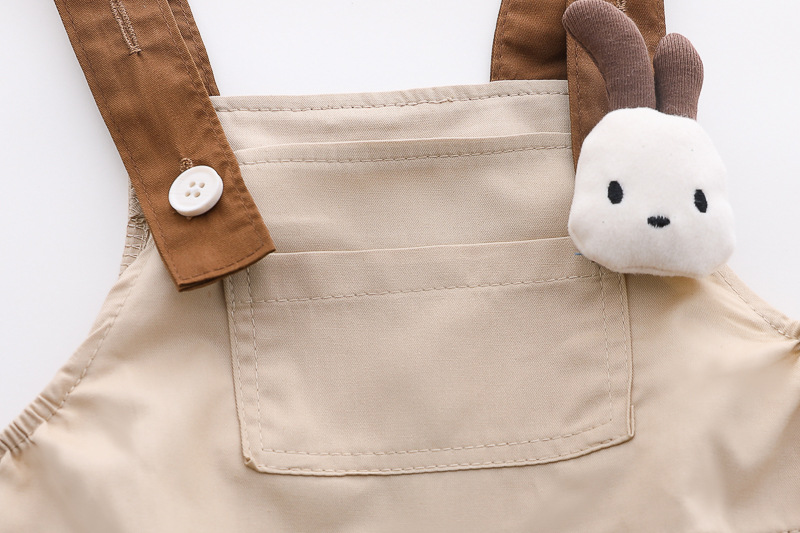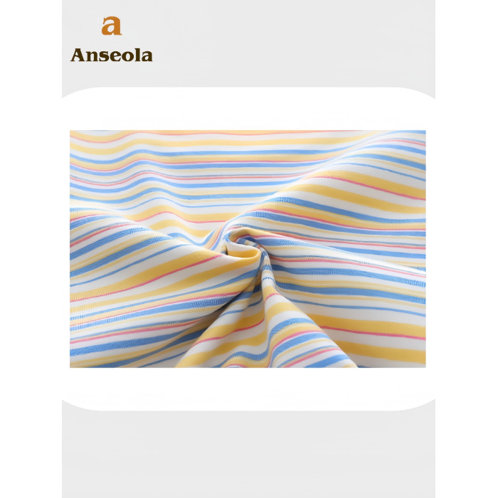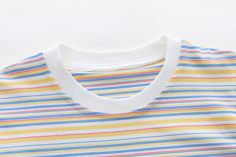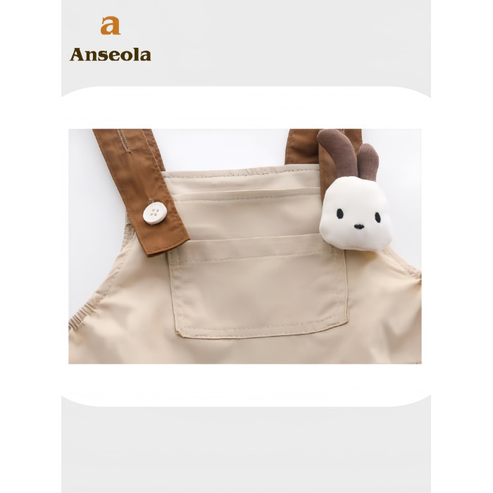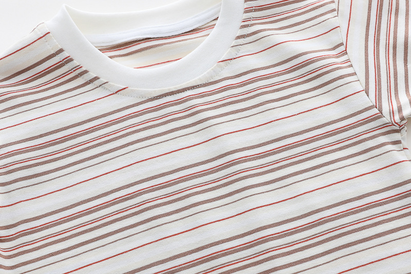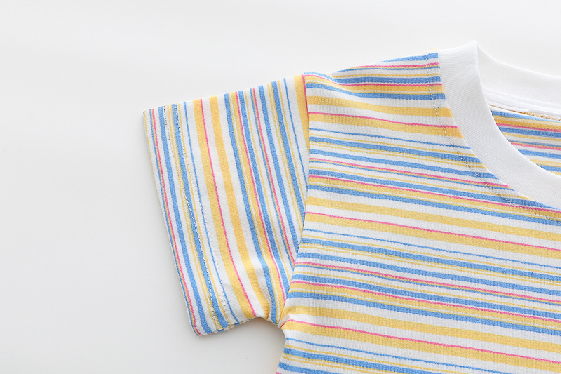 法國anseola夏季男童短袖套裝2025新款寶寶條紋小狗背帶褲兩件套