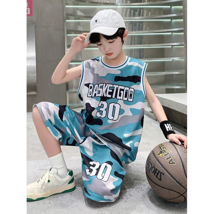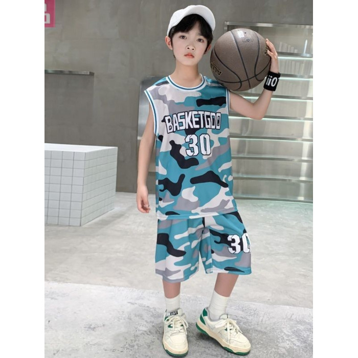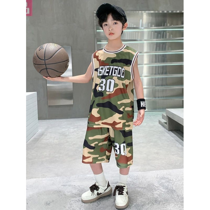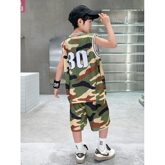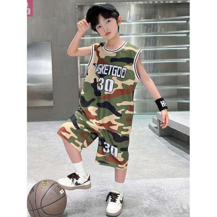 安哼安哼男童夏季套裝2025新款夏裝迷彩運動服中大童男孩籃球服背