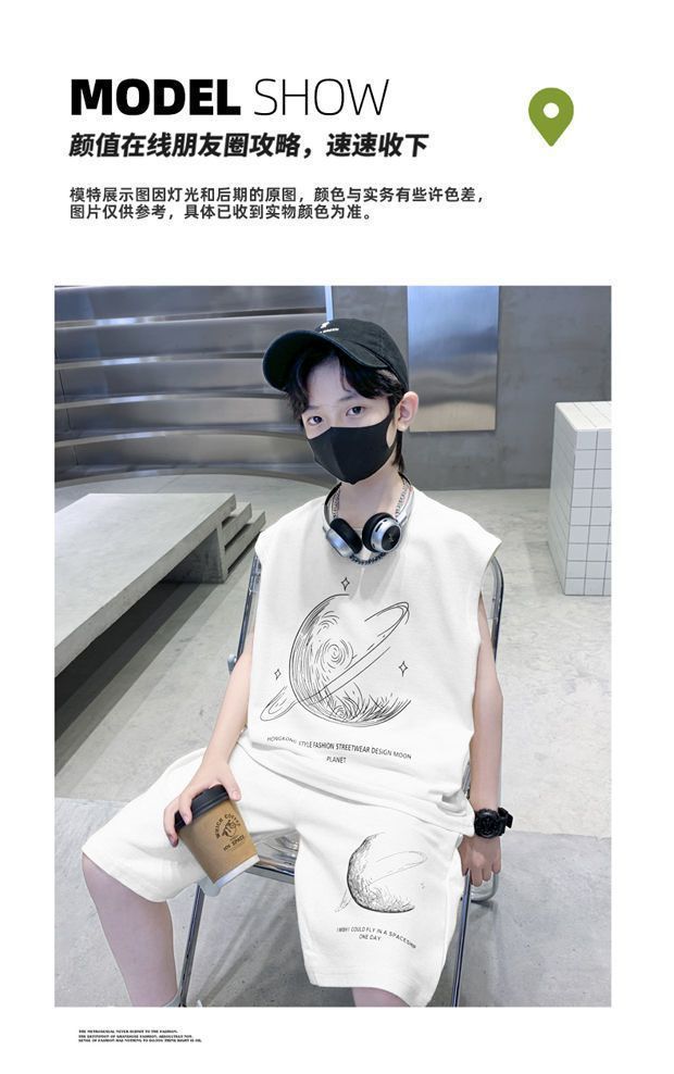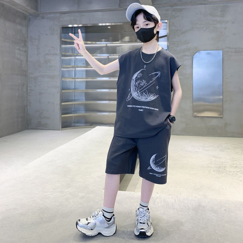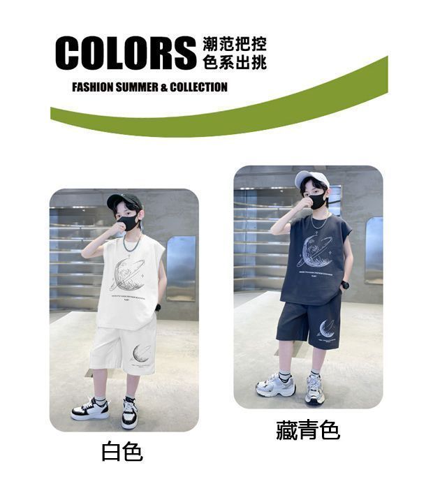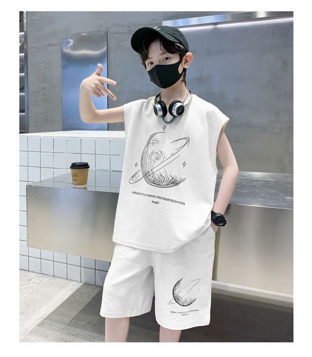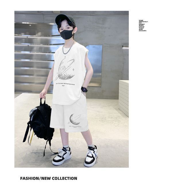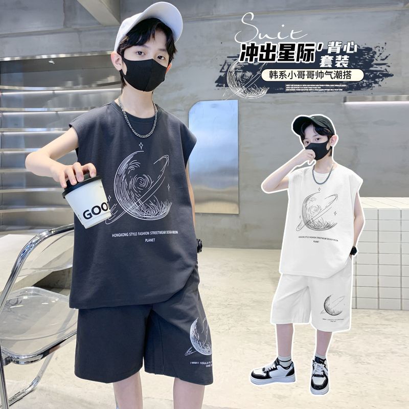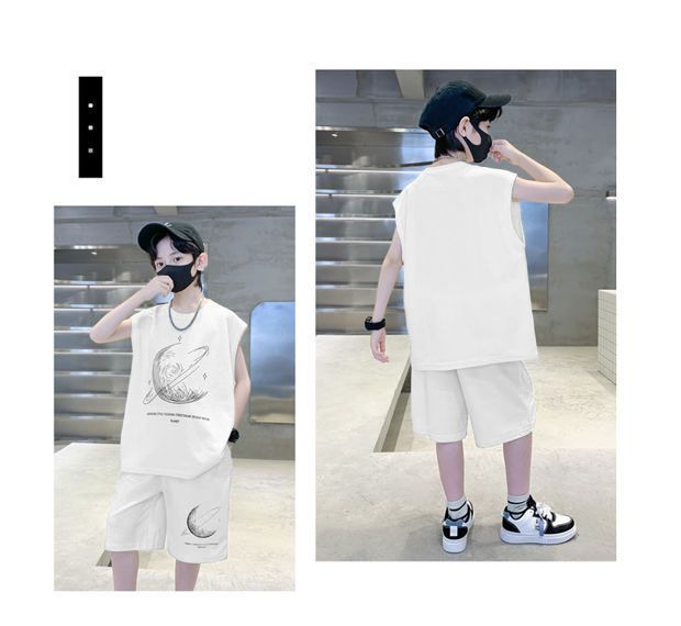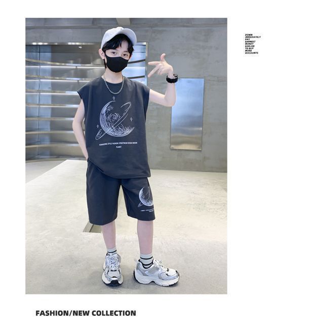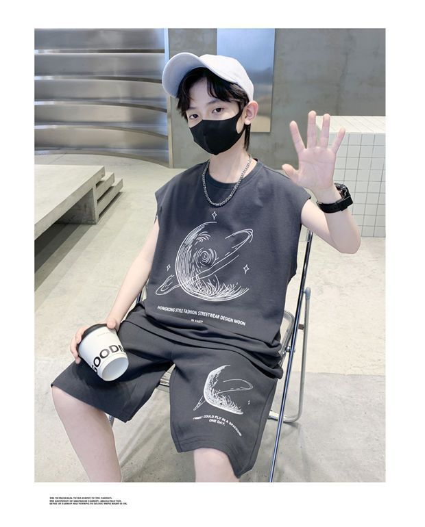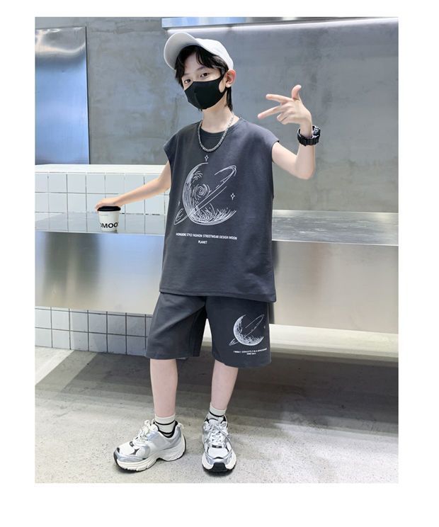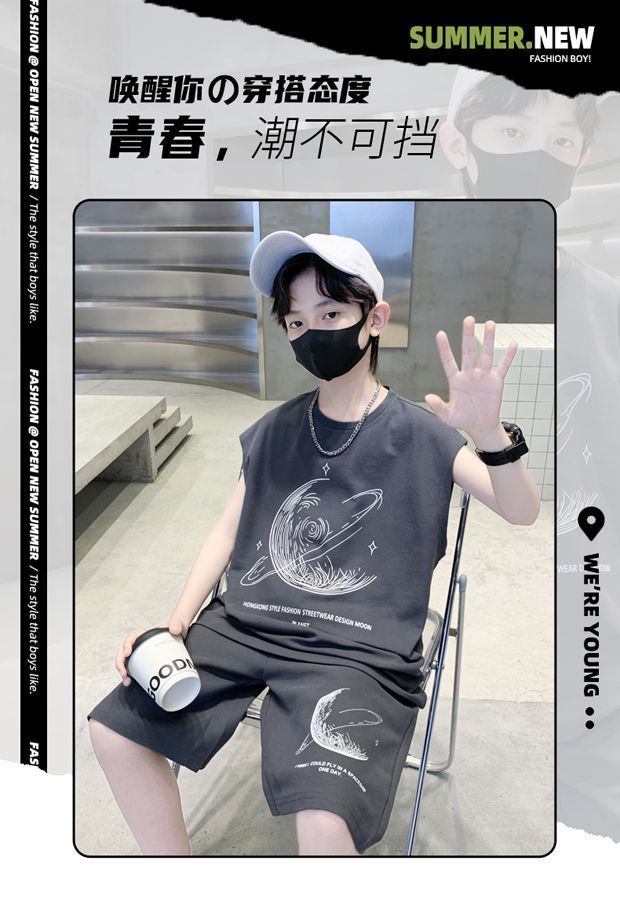 安哼安哼男童夏裝套裝寬松新款兒童無袖背心運動痞帥炸街衣服酷帥