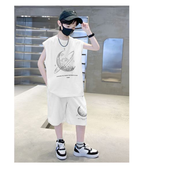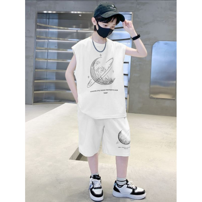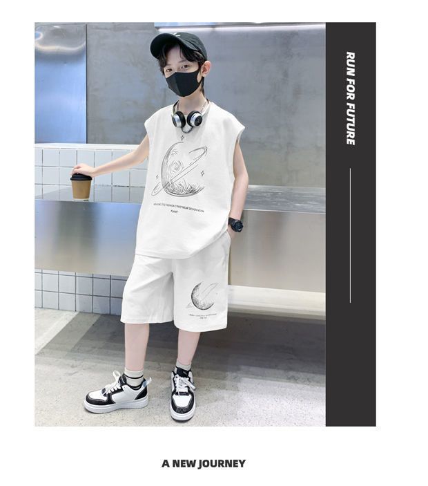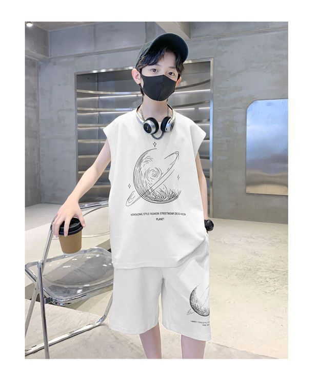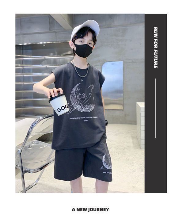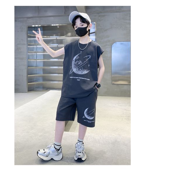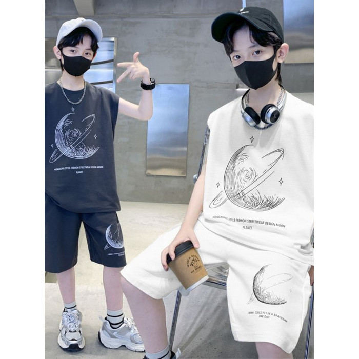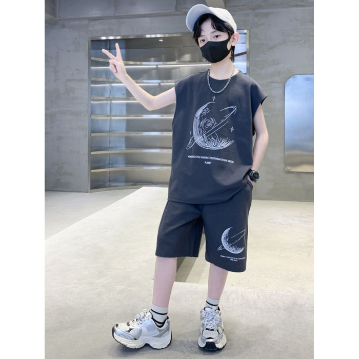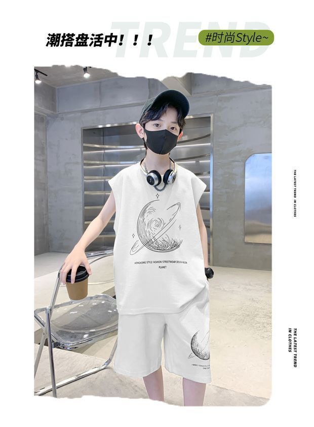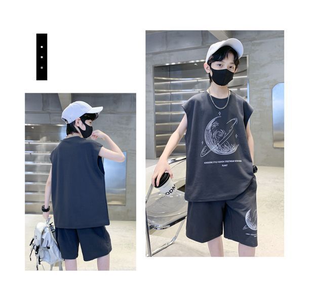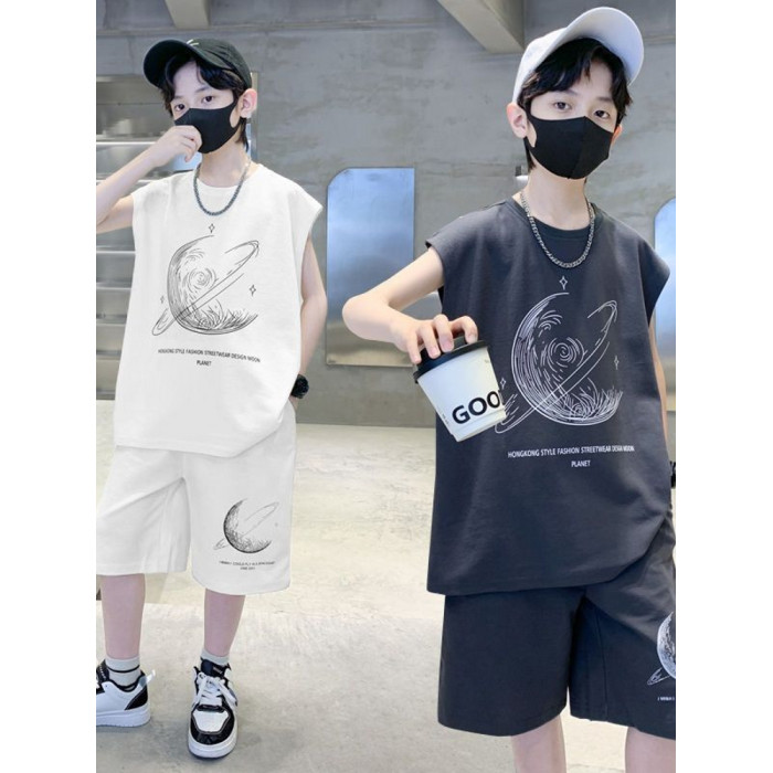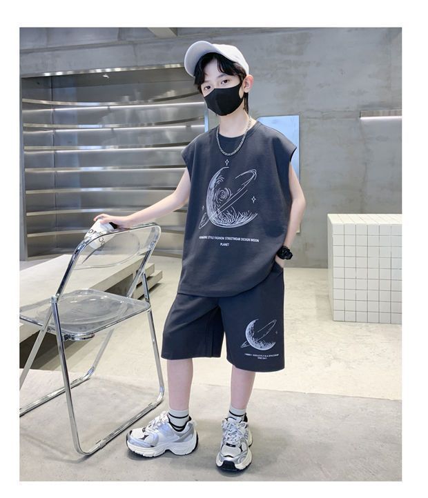 安哼安哼男童夏裝套裝寬松新款兒童無袖背心運動痞帥炸街衣服酷帥