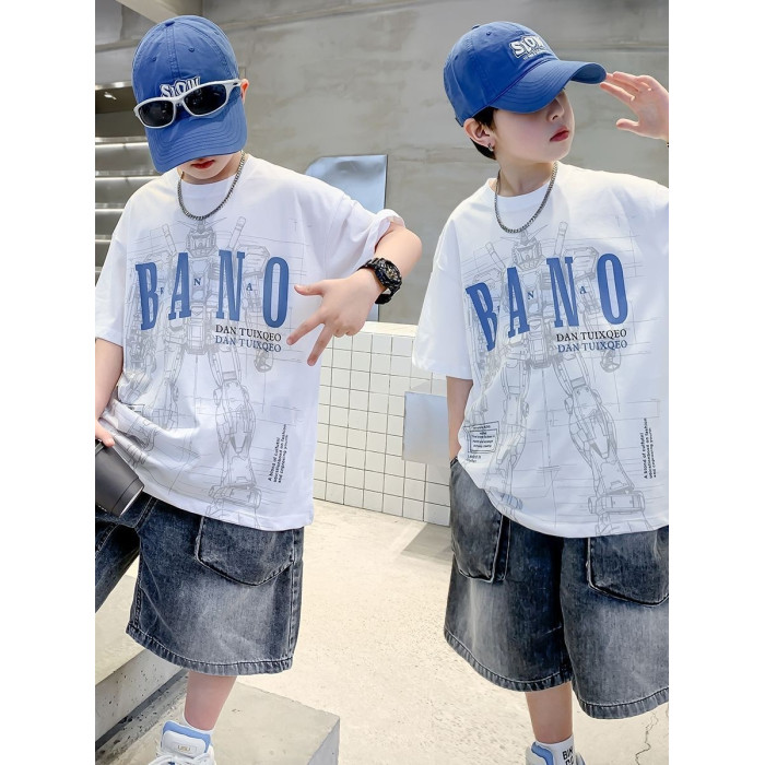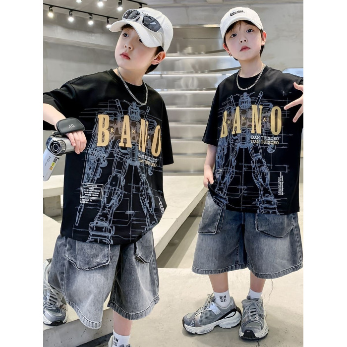 安哼安哼男童卡通短袖t恤2025新款潮兒童夏裝中大童體恤上衣夏季