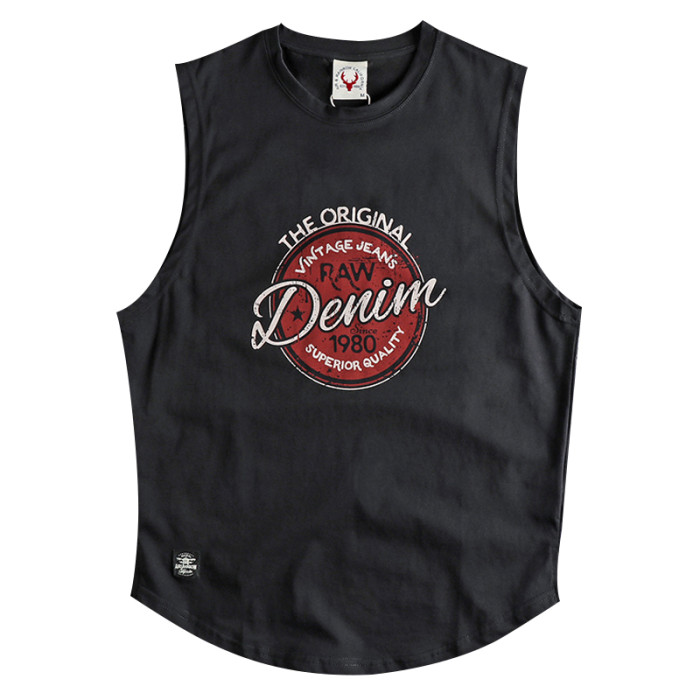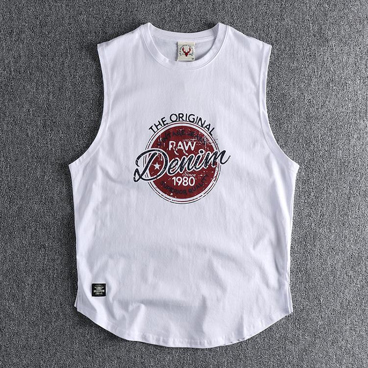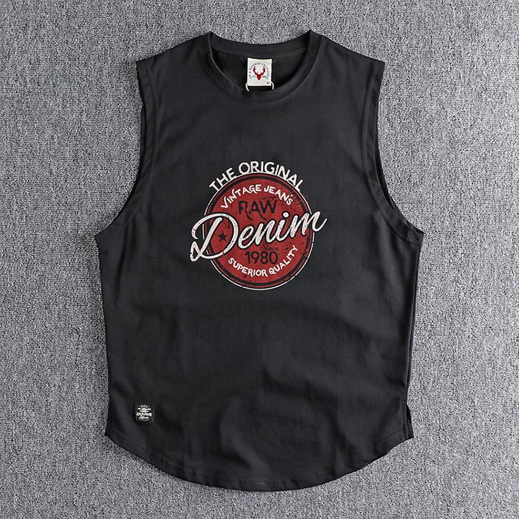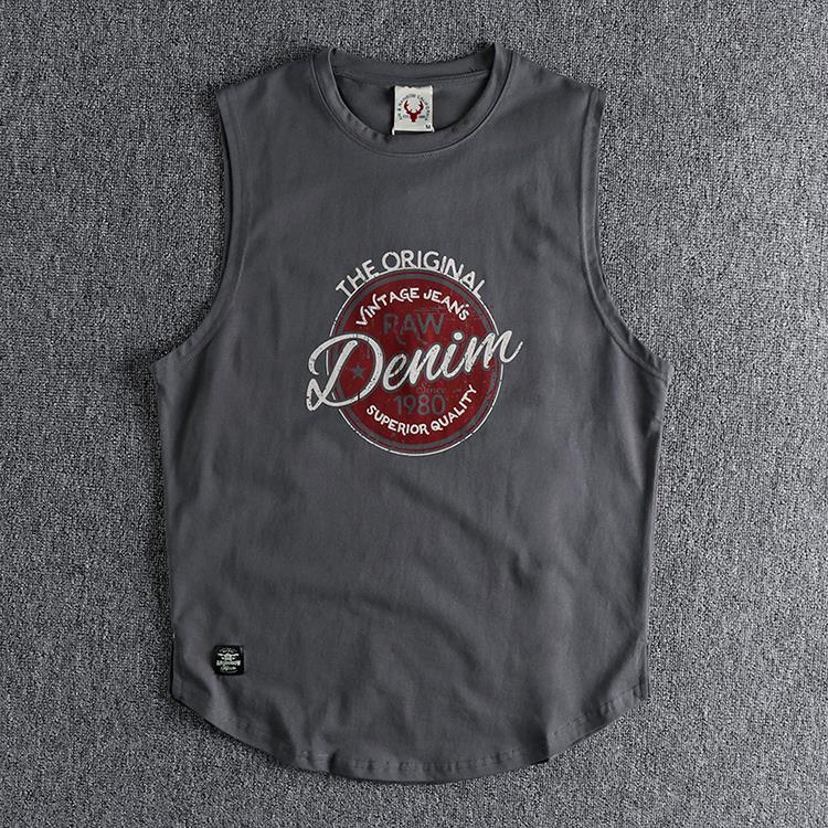 香港潮牌復古做舊字母印花無袖背心男 全棉寬松汗衫潮流青年運動T