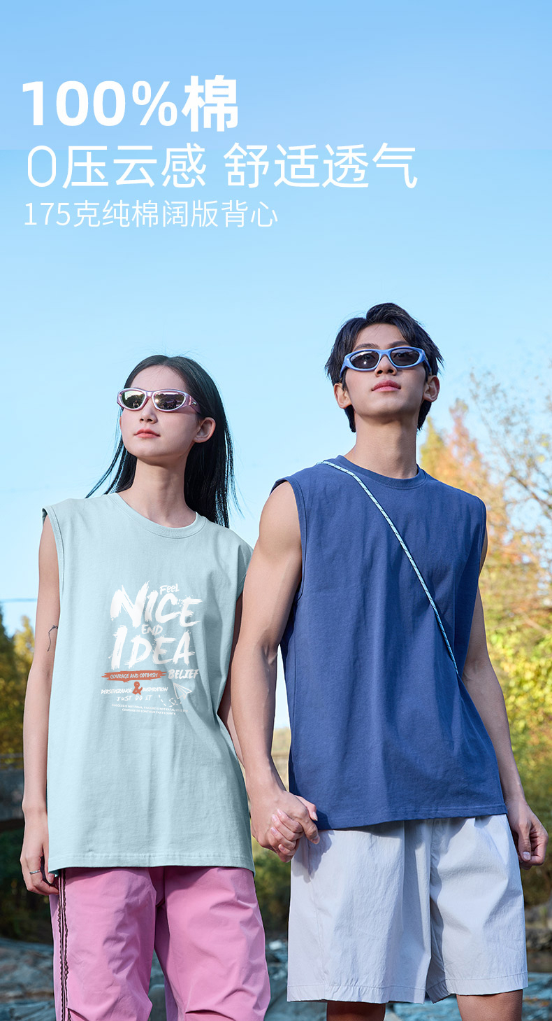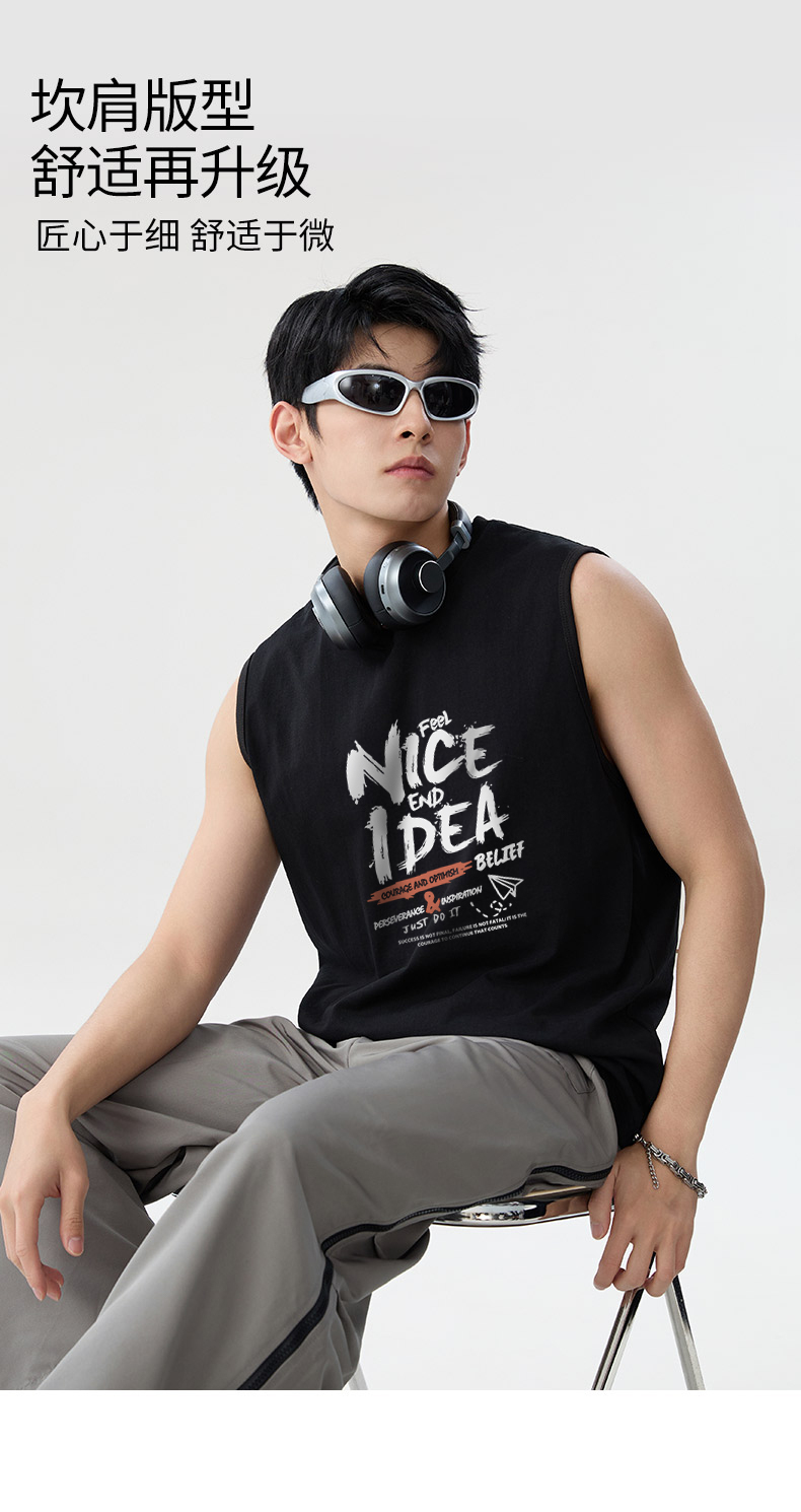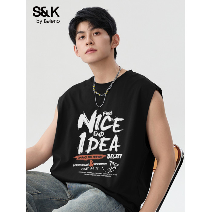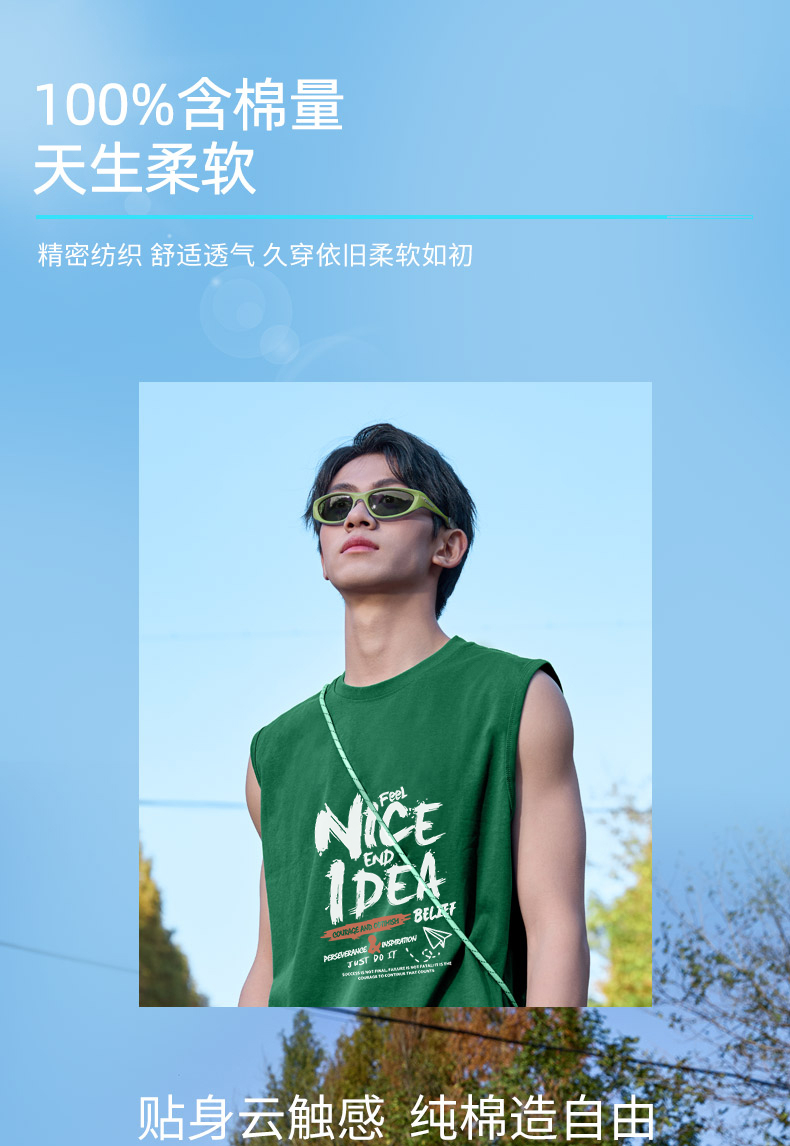 班尼路S&K系列男士純棉背心夏季外穿運動健身坎肩美式休閒無袖t恤