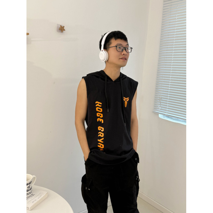夏季歐文科比籃球美式坎肩連帽運動背心男純棉無袖t恤衛衣健身衣