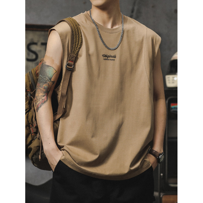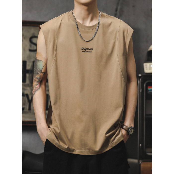 250G重磅運動背心男士夏季潮流外穿純棉坎肩美式寬松無袖t恤汗衫