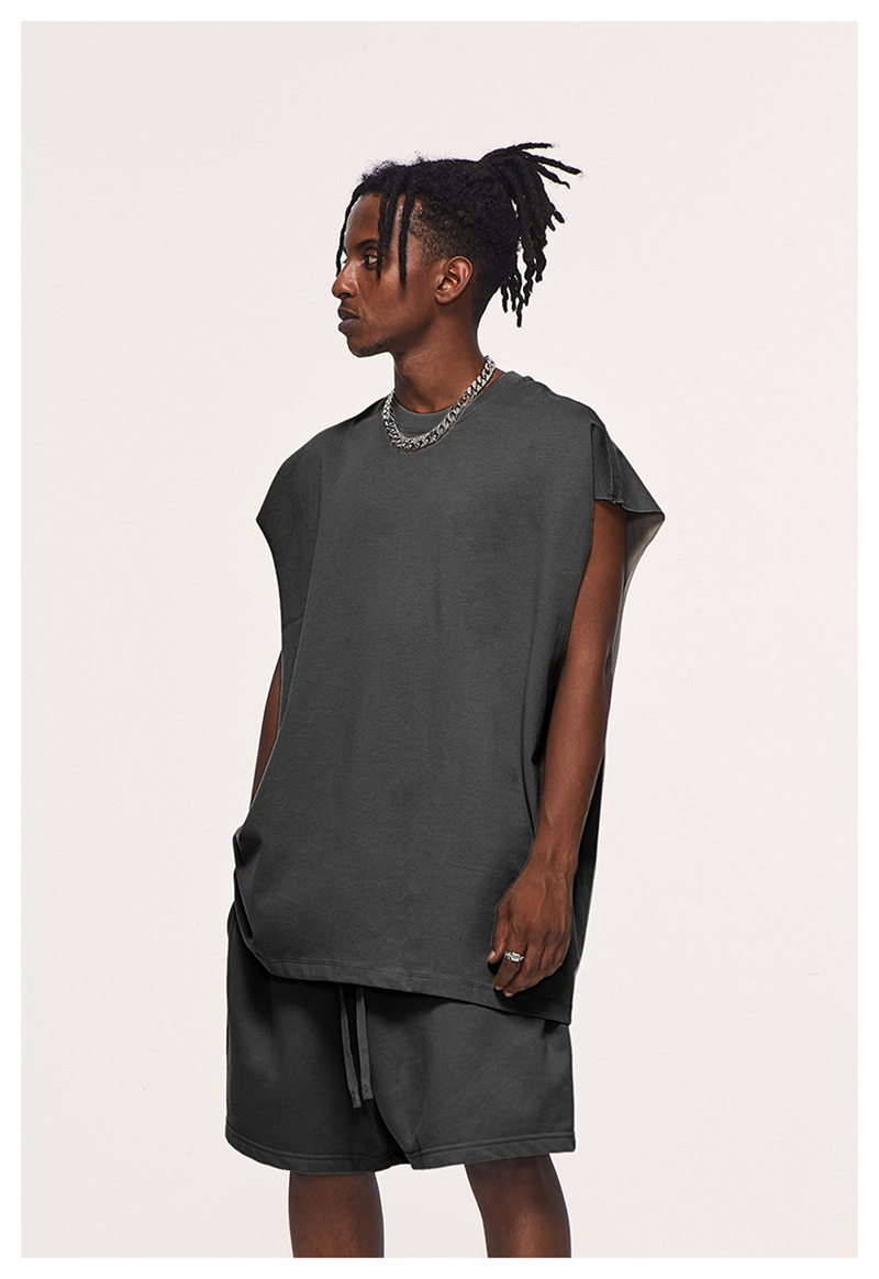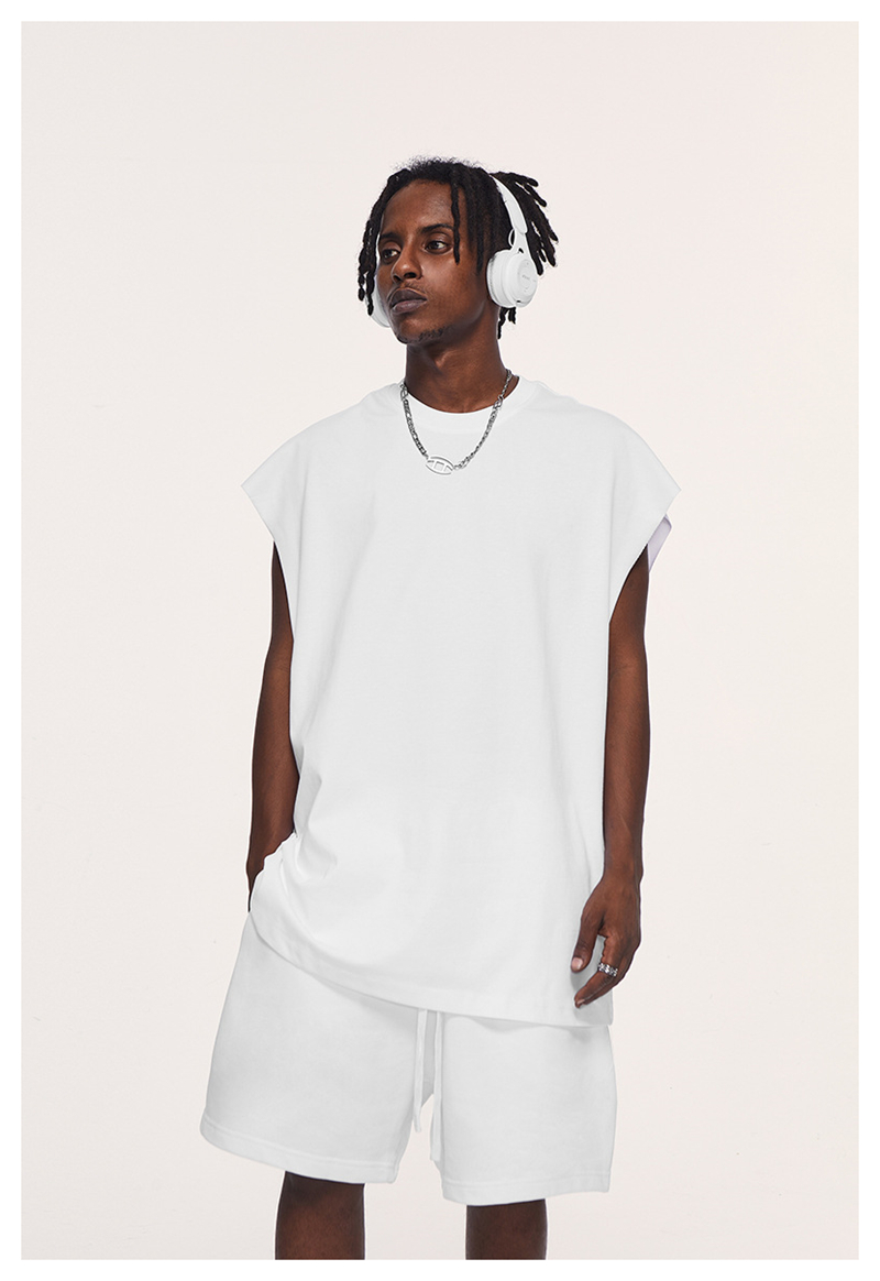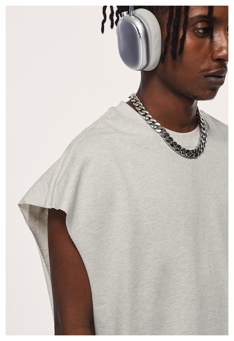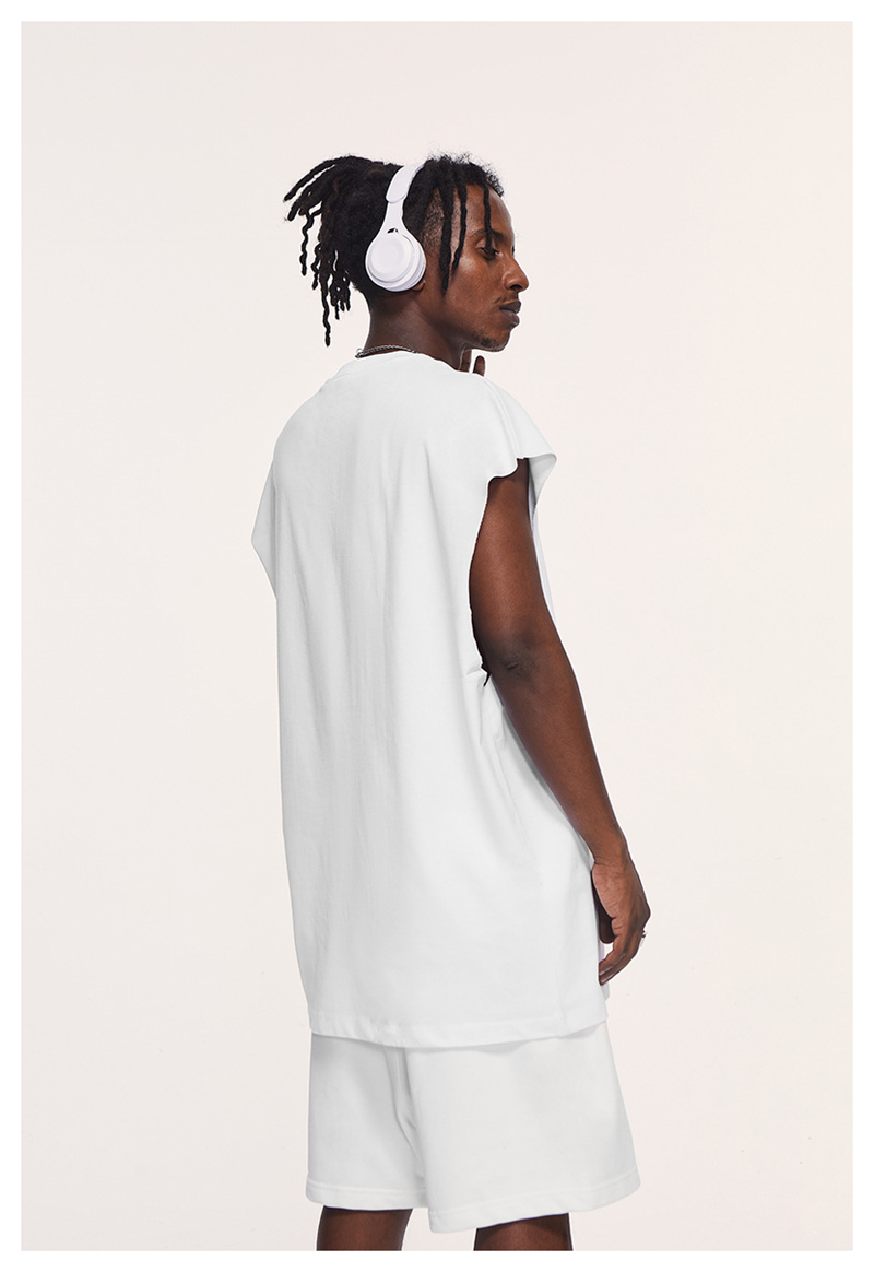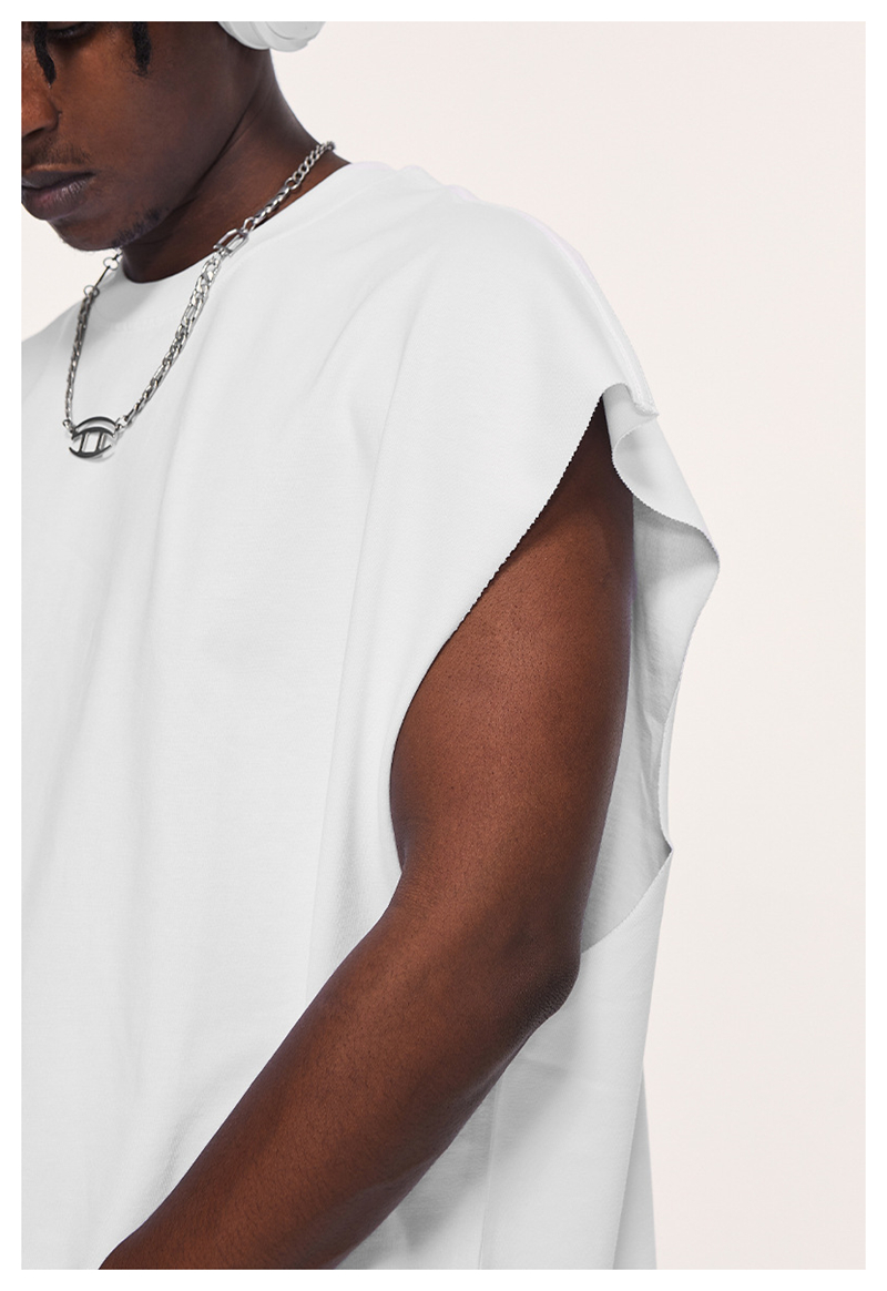 305G純棉 小領口 剪邊無袖 美式街頭基礎款 純色寬肩寬松背心