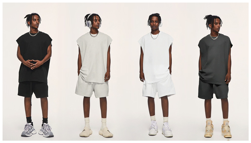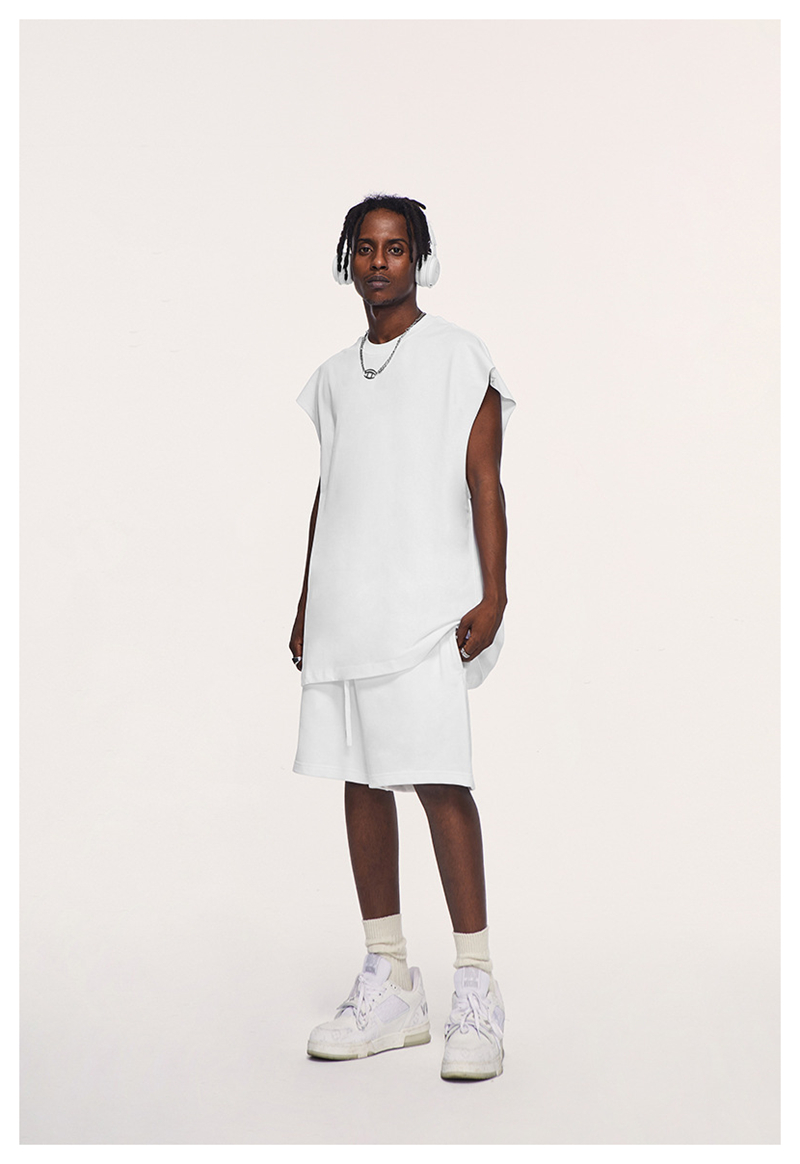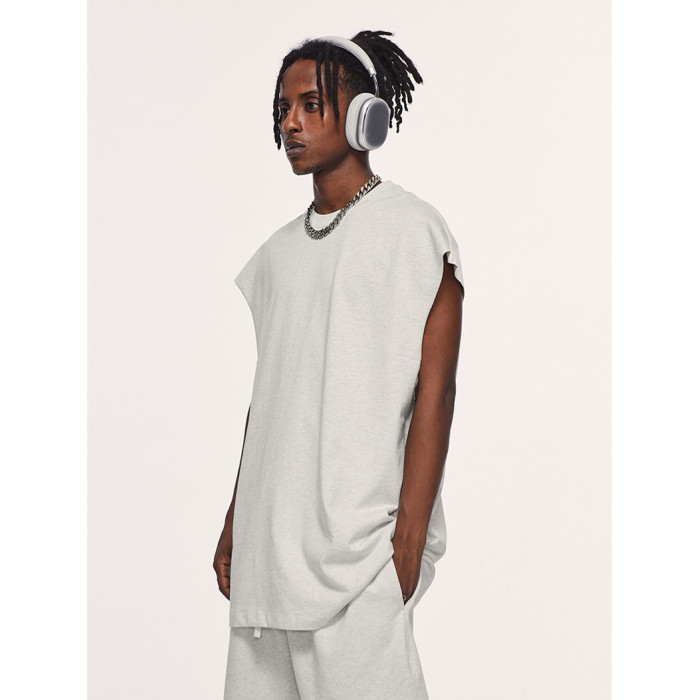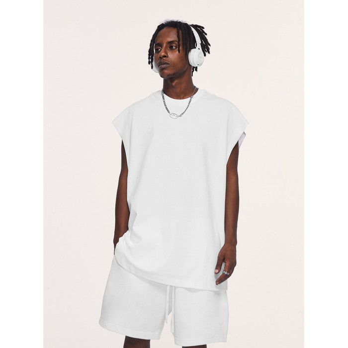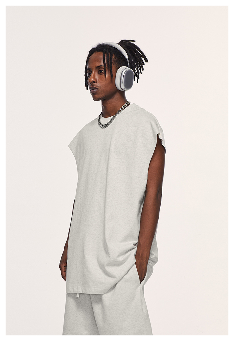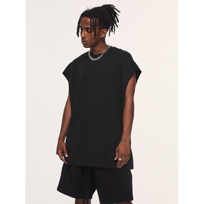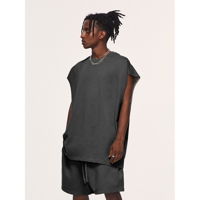 305G純棉 小領口 剪邊無袖 美式街頭基礎款 純色寬肩寬松背心