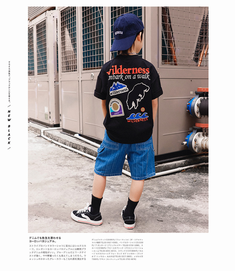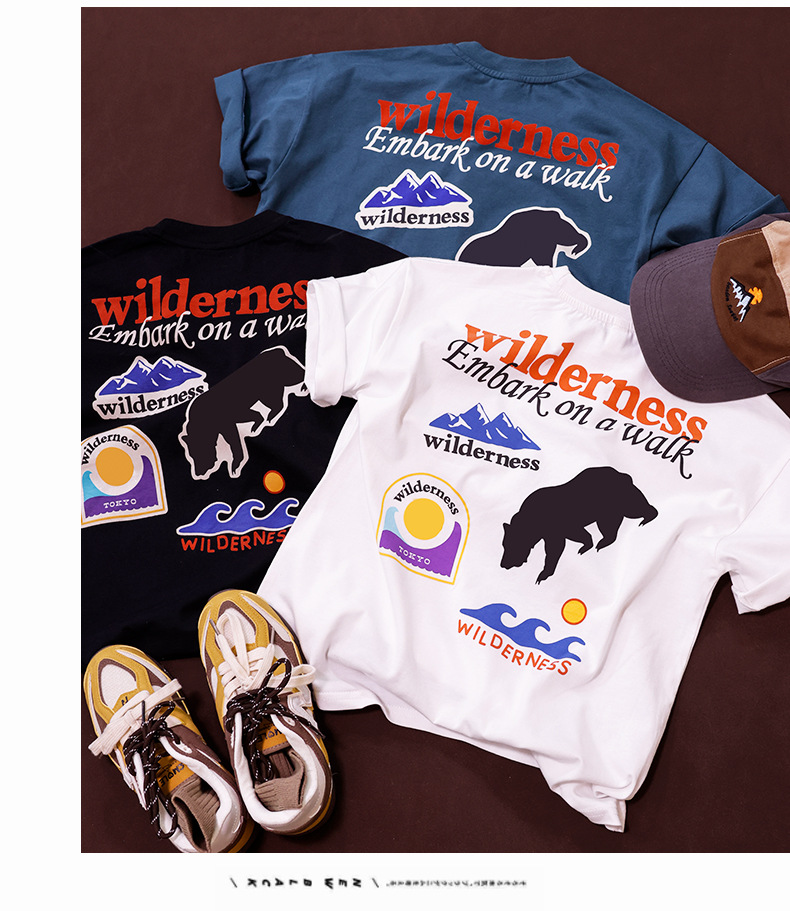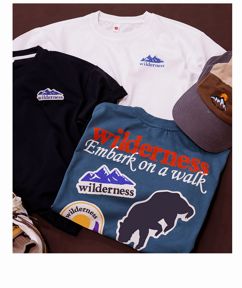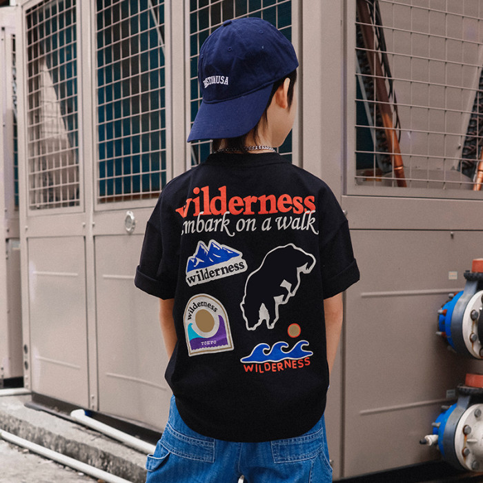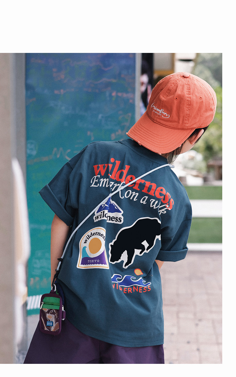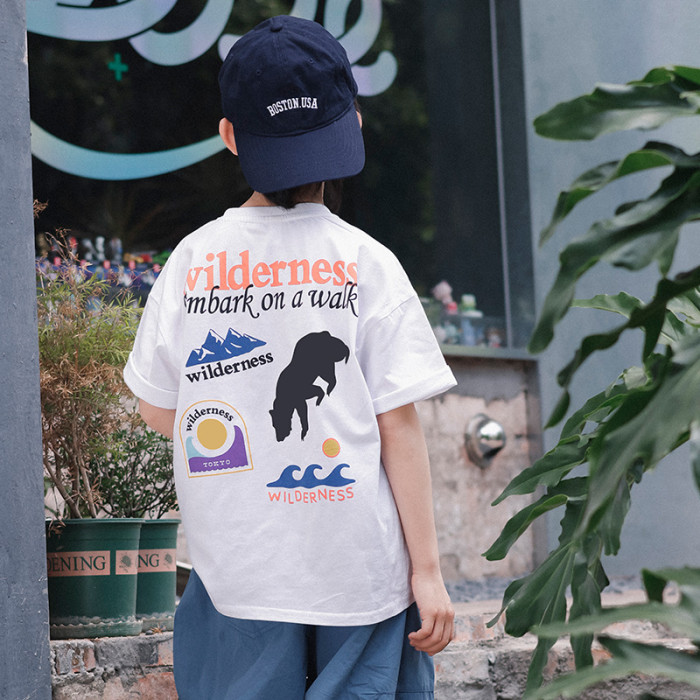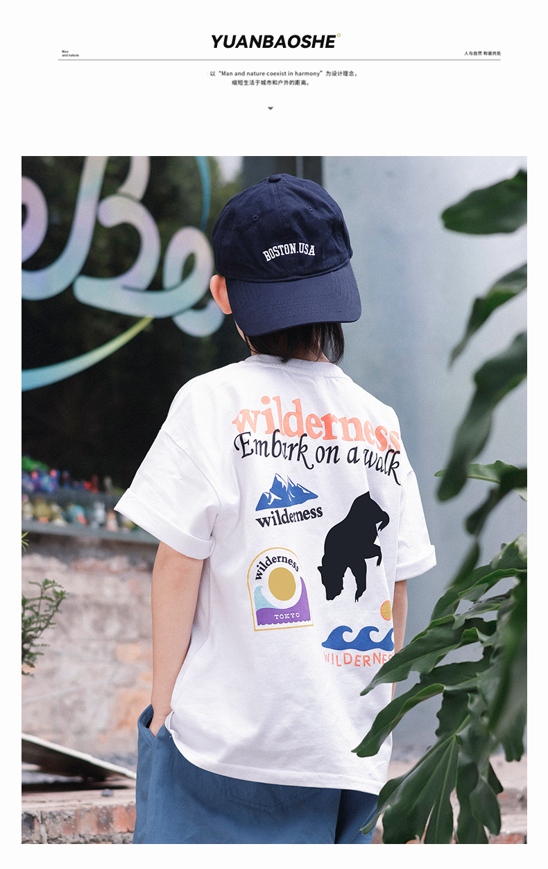 山系戶外童裝2025夏季款兒童露營風印花t恤男童柔軟親膚短袖上衣