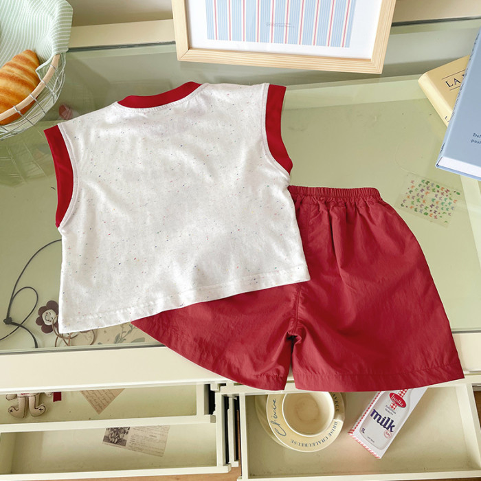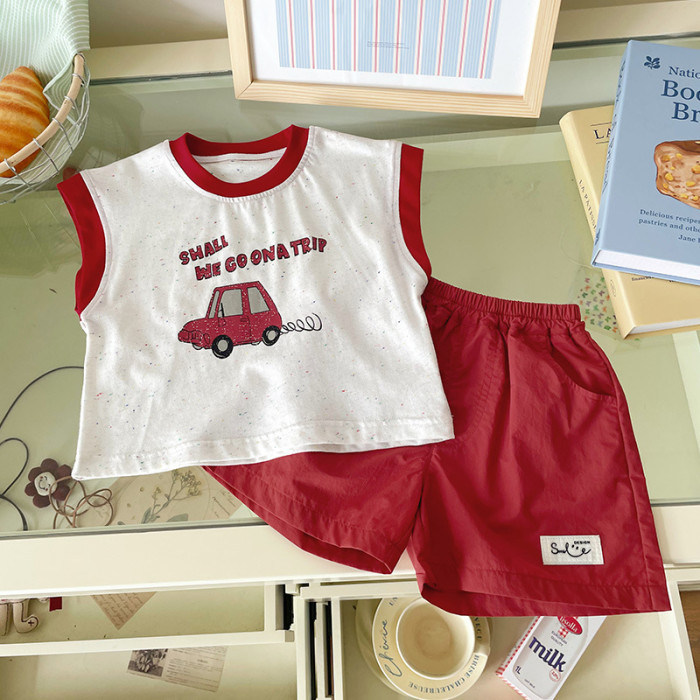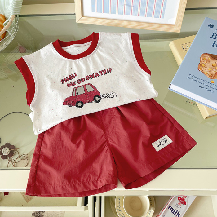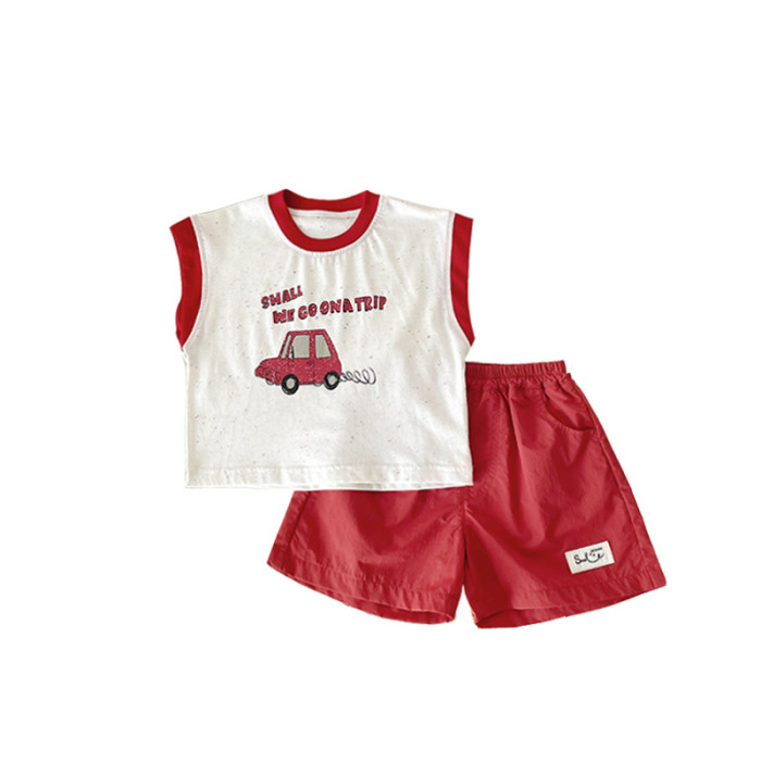 XT253040男童套裝2025夏季新款卡通小汽車背心潮酷寬松短褲