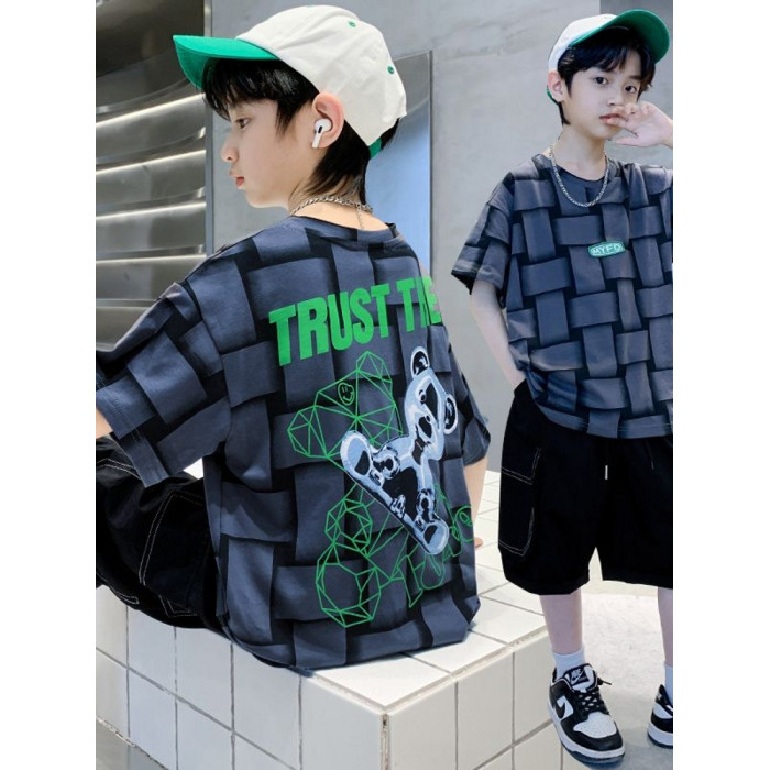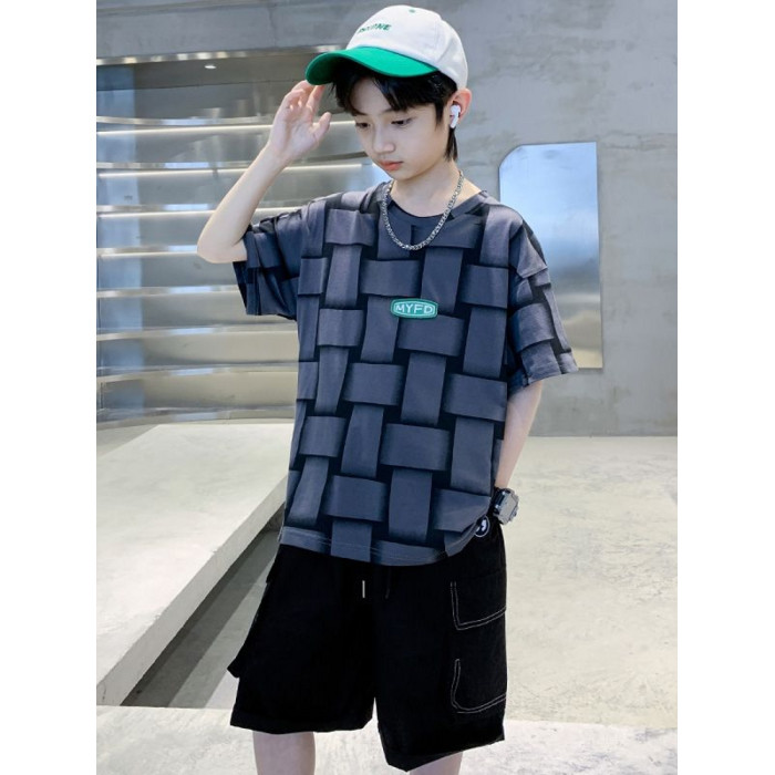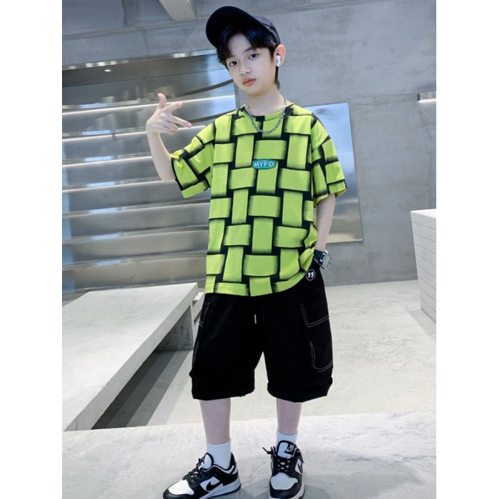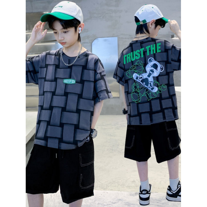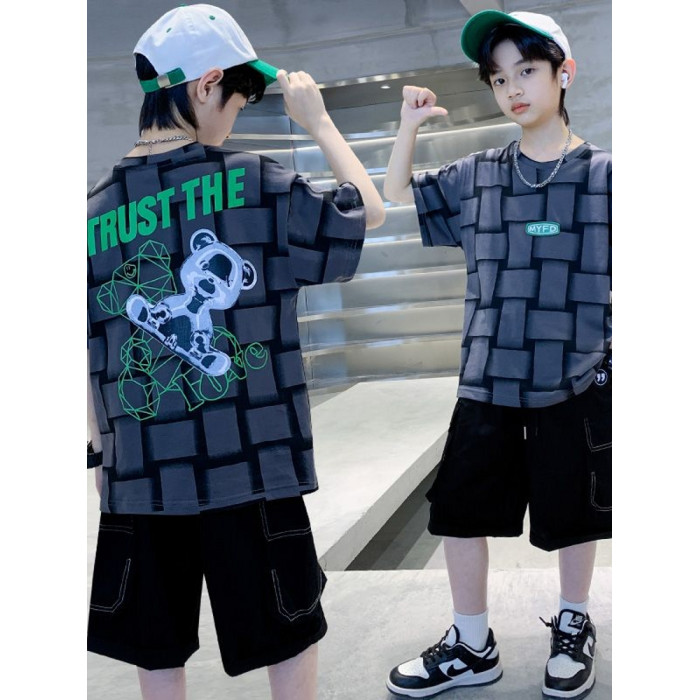 安哼安哼兒童裝男童夏裝套裝2025新款中大童夏季短袖男孩洋氣帥氣