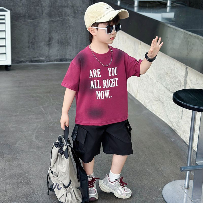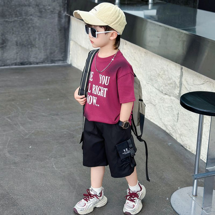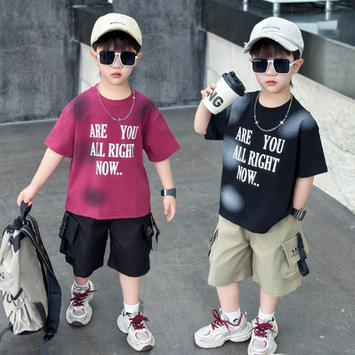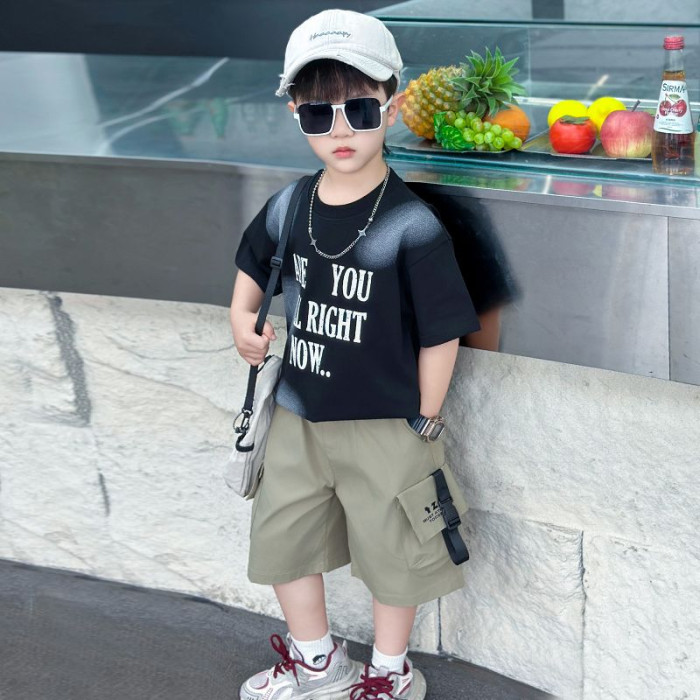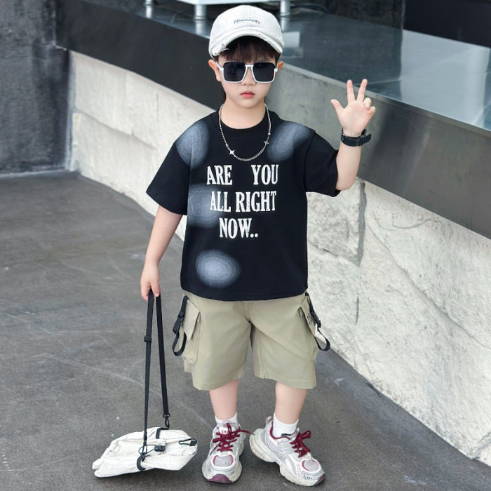 男童夏裝套裝2025新款兒童夏季短袖運動潮酷帥氣時髦男孩工裝短褲