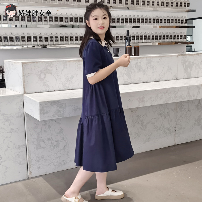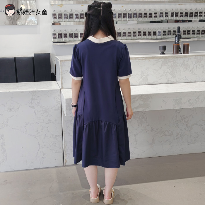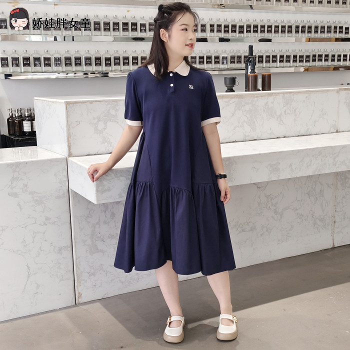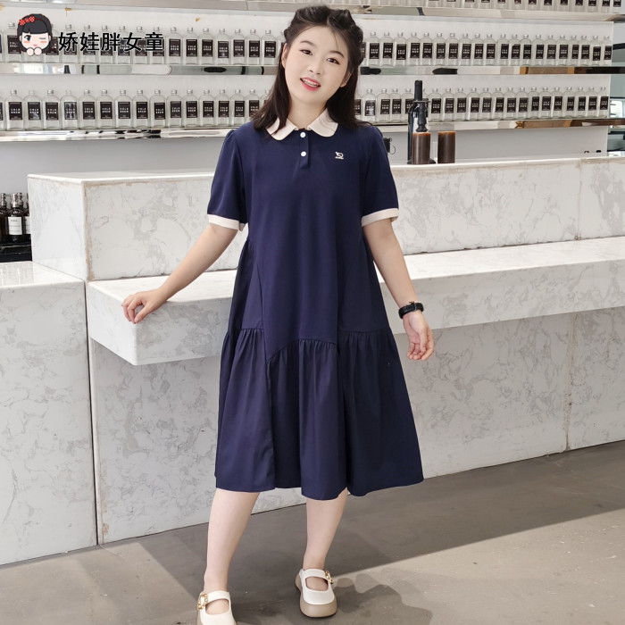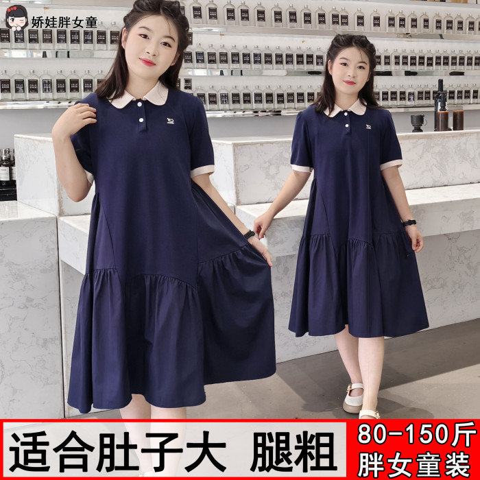 胖女童連衣裙兒童夏季加肥加大碼寬松短袖公主裙學院風POLO領裙子