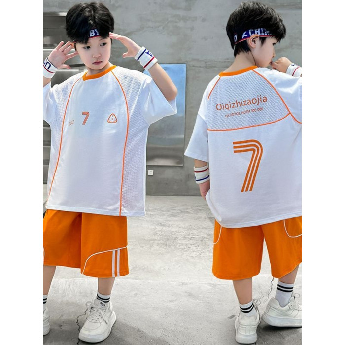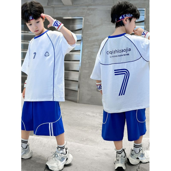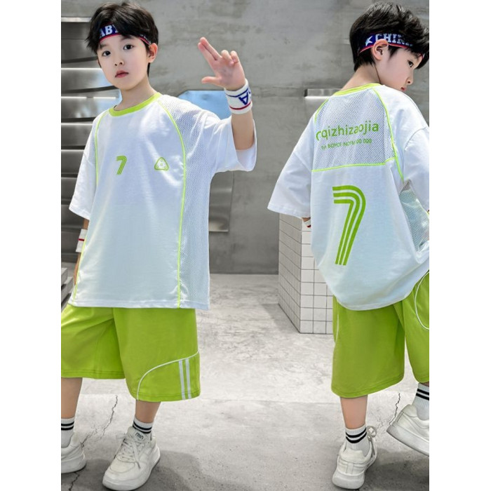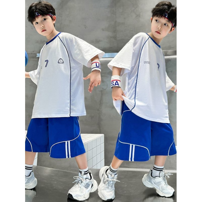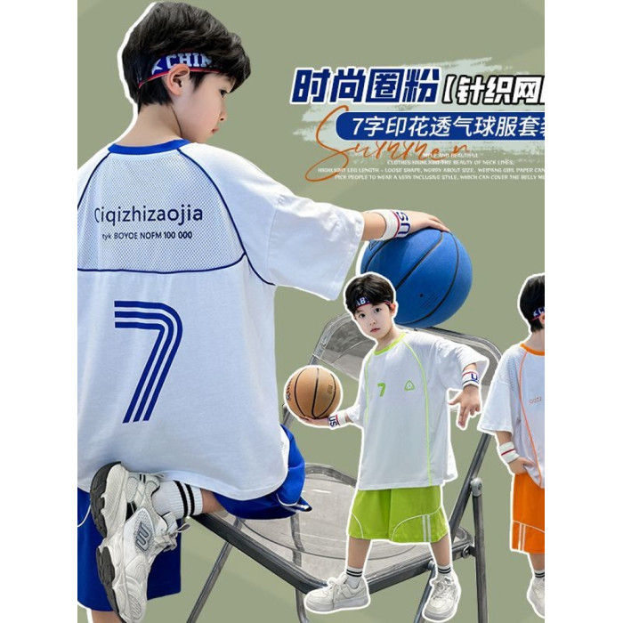 安哼安哼男童運動套裝兒童夏季速乾籃球服2025大童冰絲漸變短袖跑