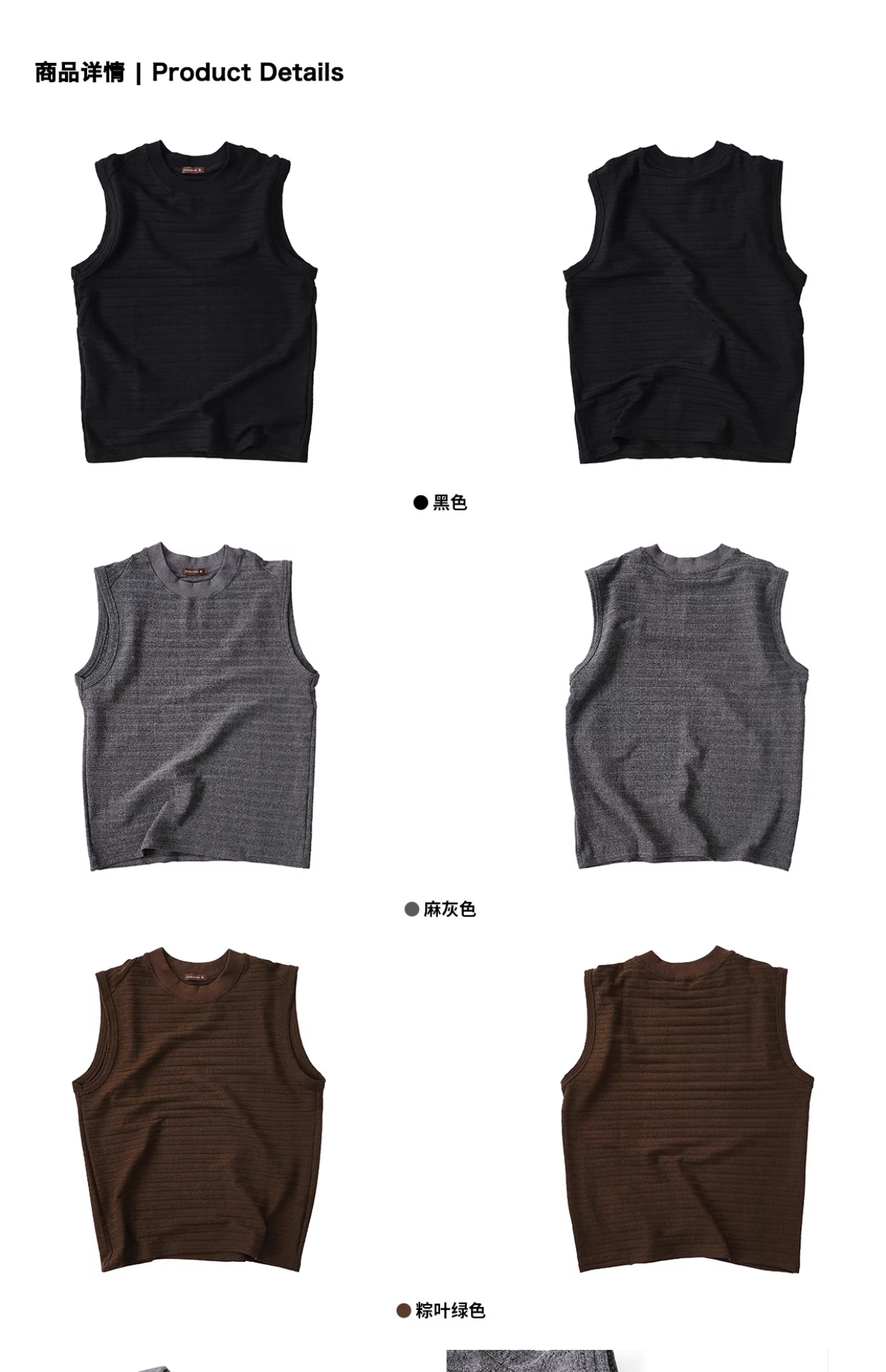 LIVINGTOWN日系純色休閒寬松簡約日常通勤百搭肌理感無袖坎肩背心