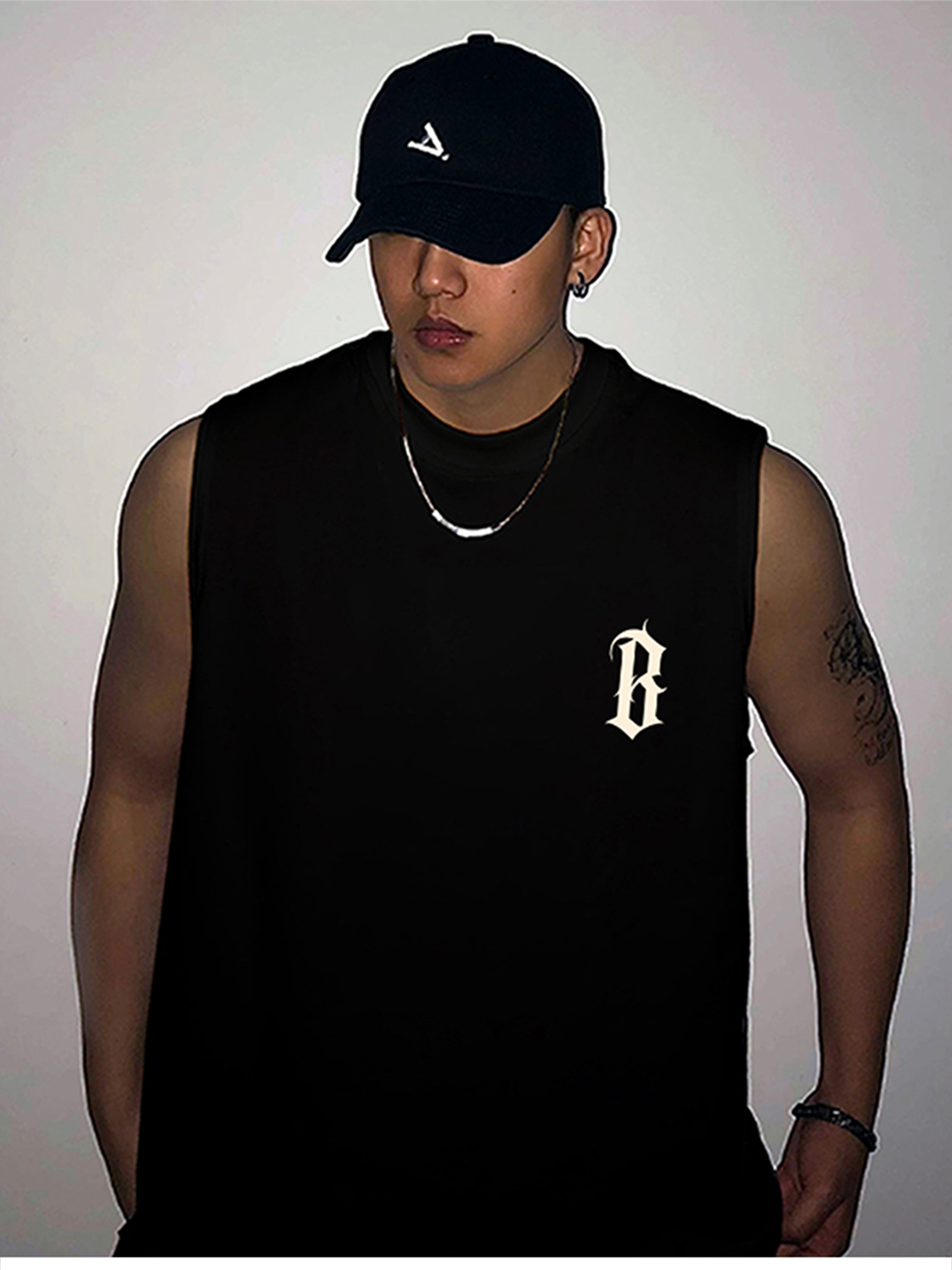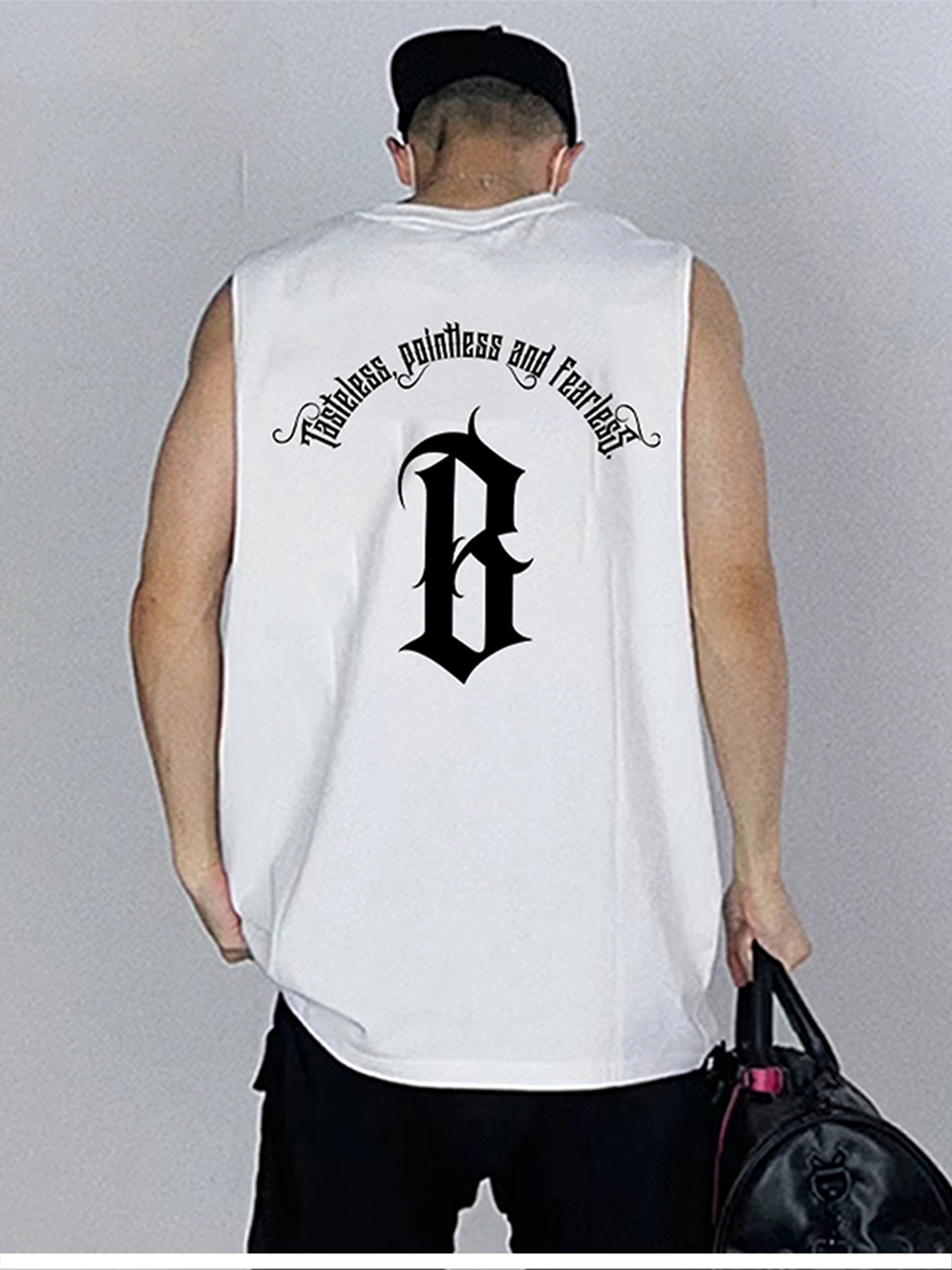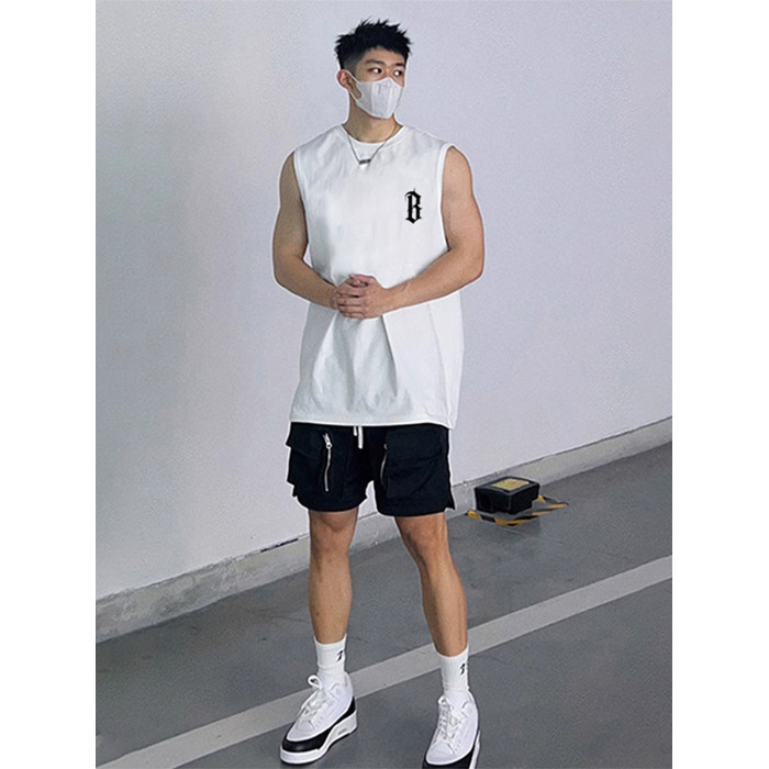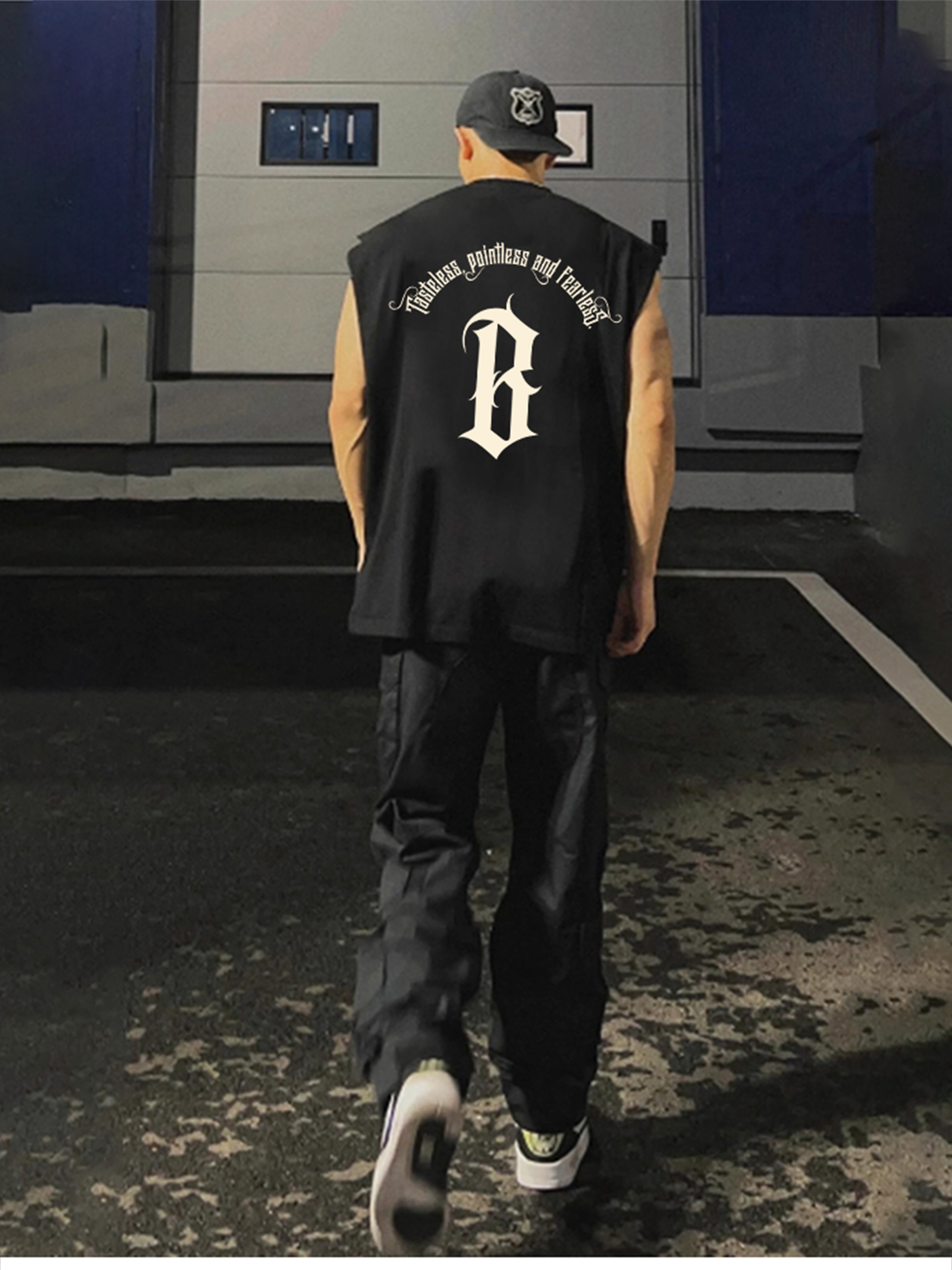 BONELESS BTW夏季潮牌字母無袖背心T恤男女重磅純棉情侶坎肩上衣