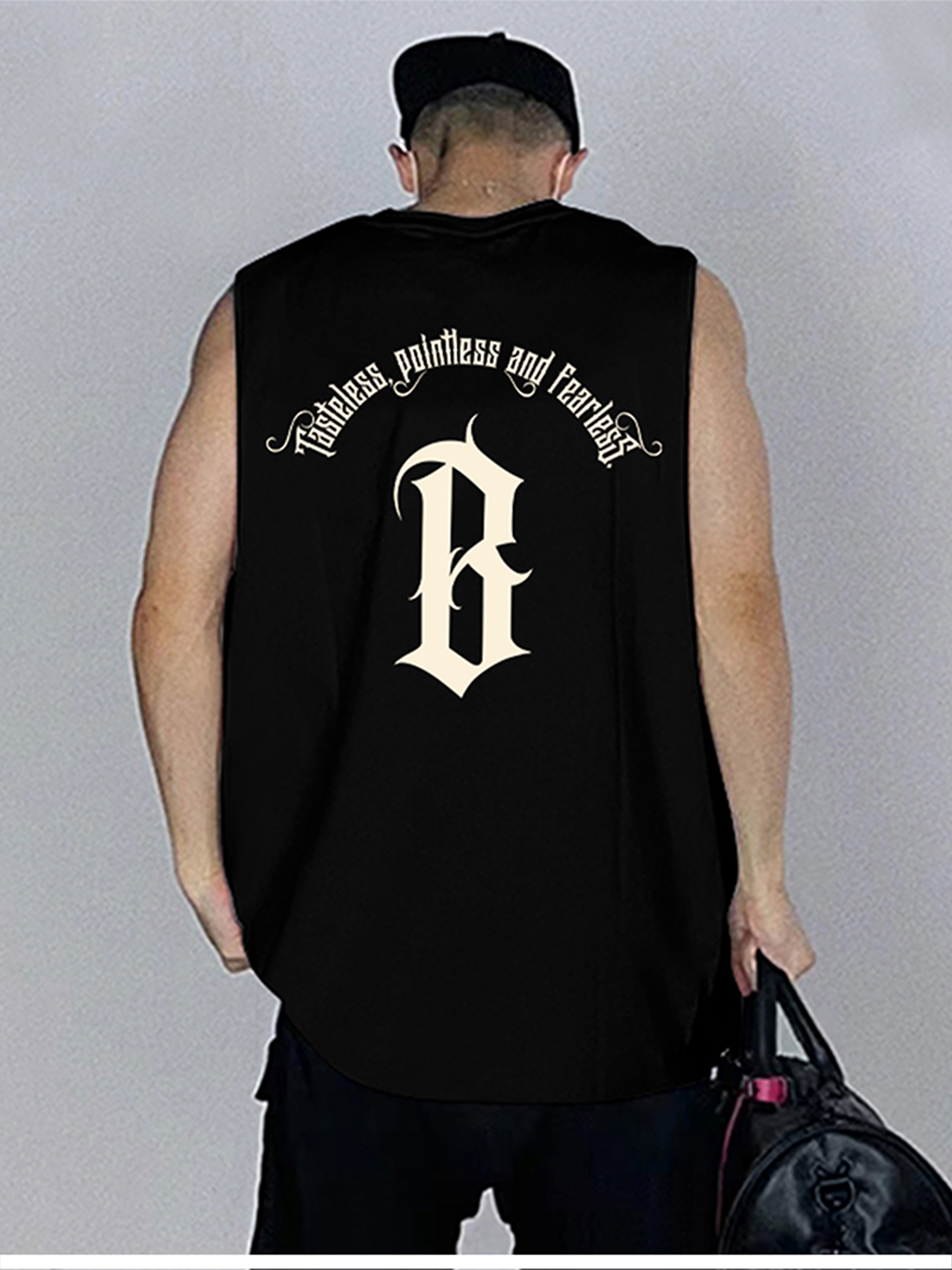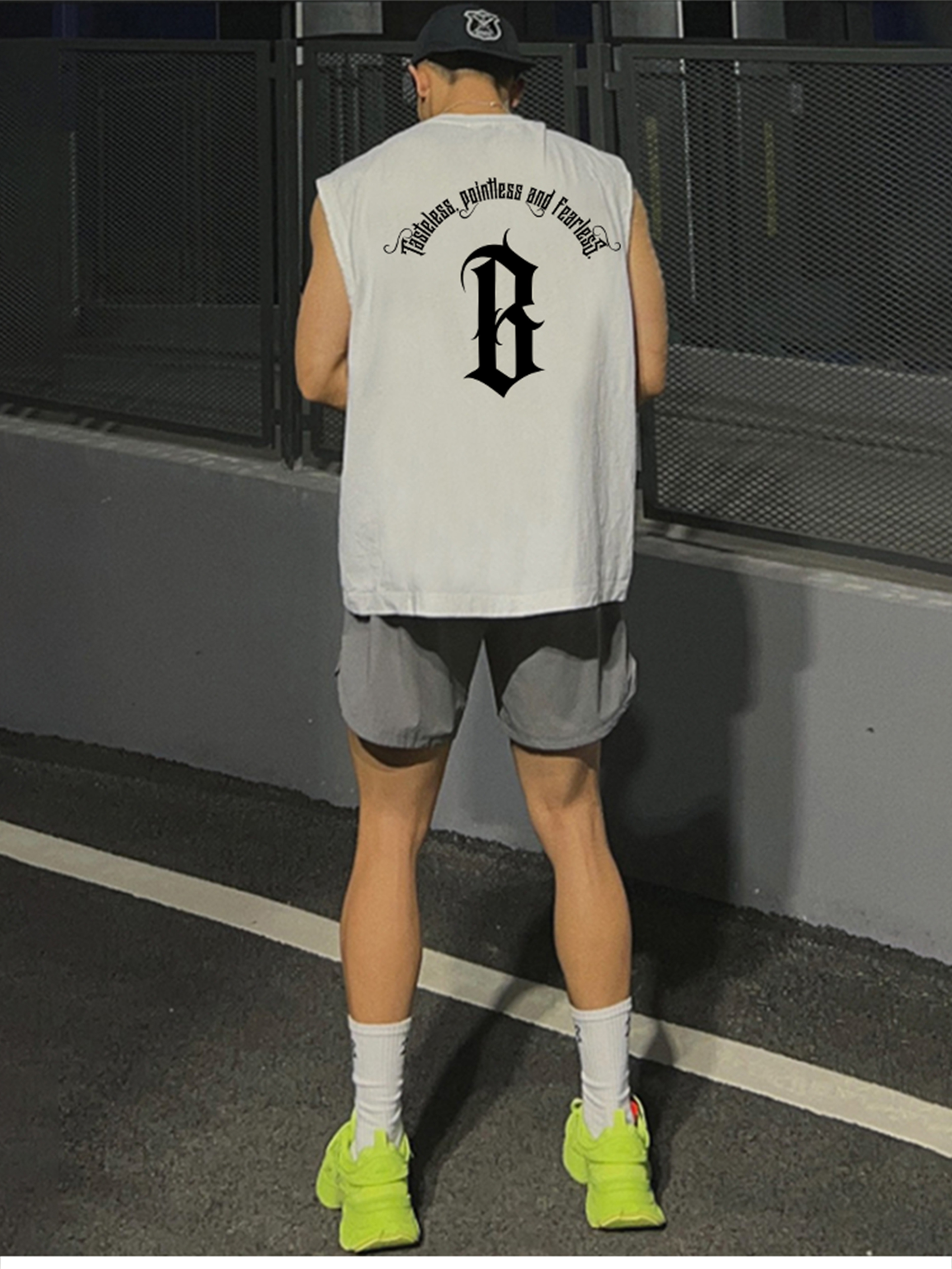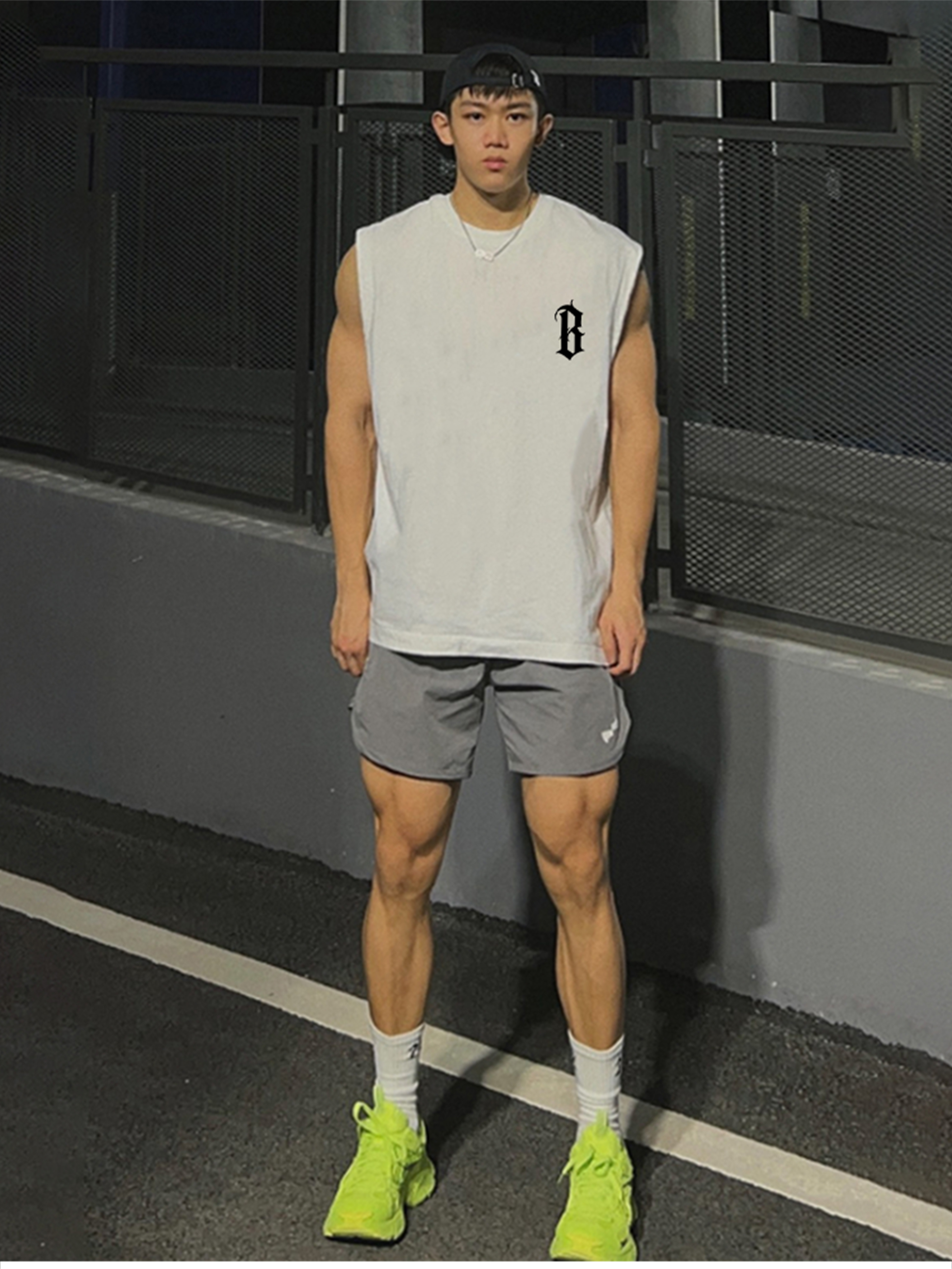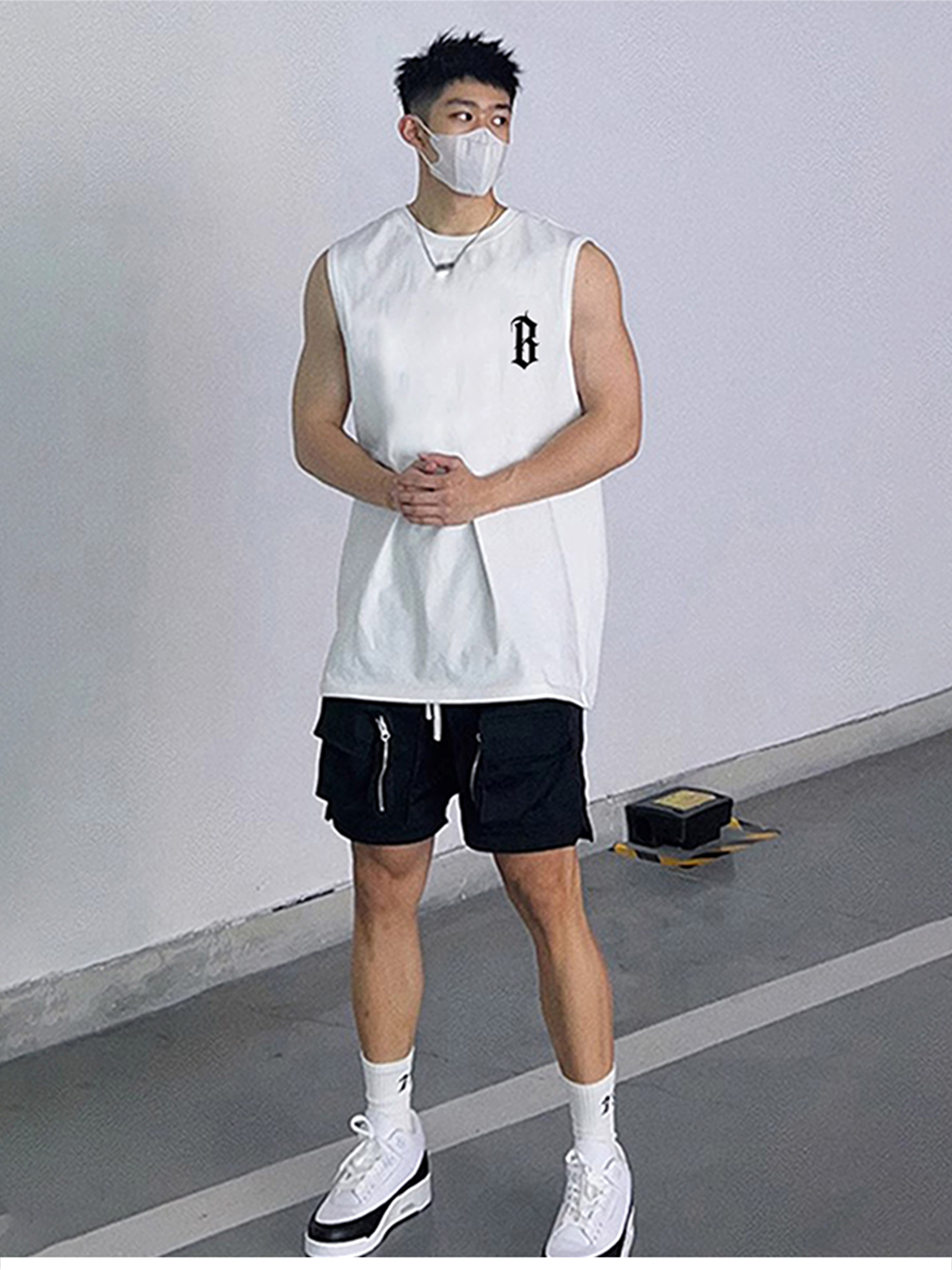 BONELESS BTW夏季潮牌字母無袖背心T恤男女重磅純棉情侶坎肩上衣