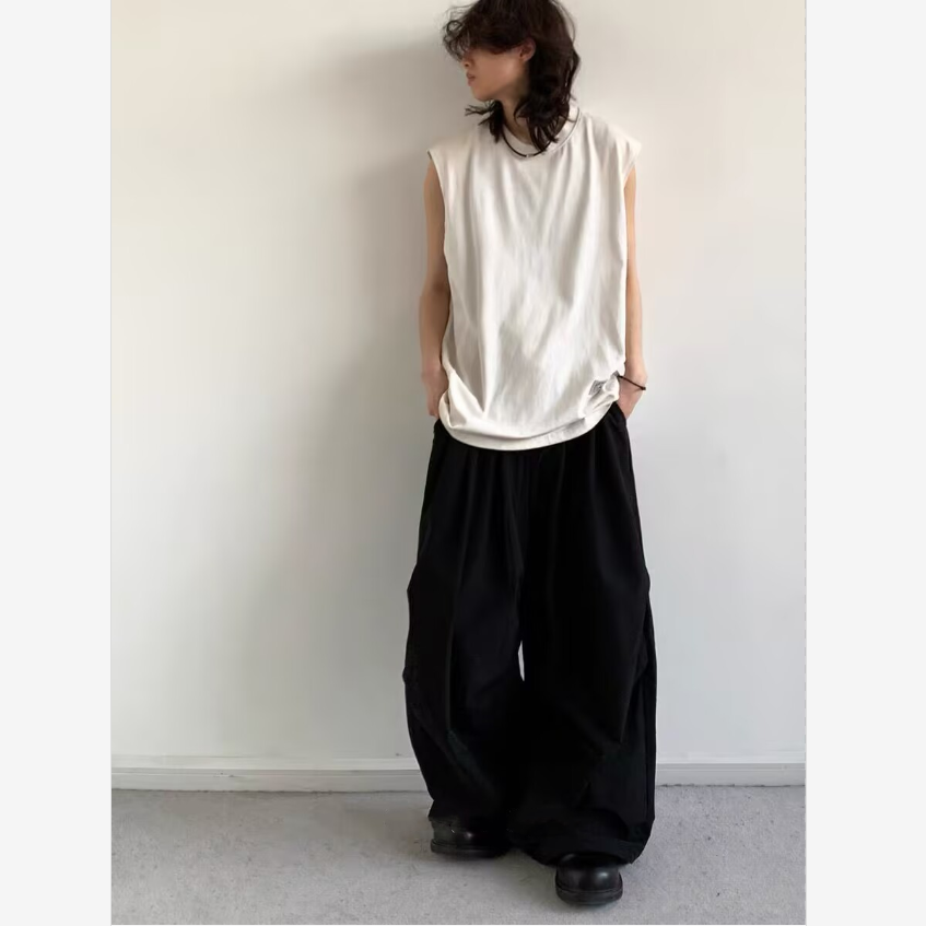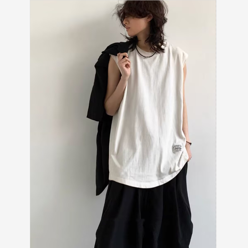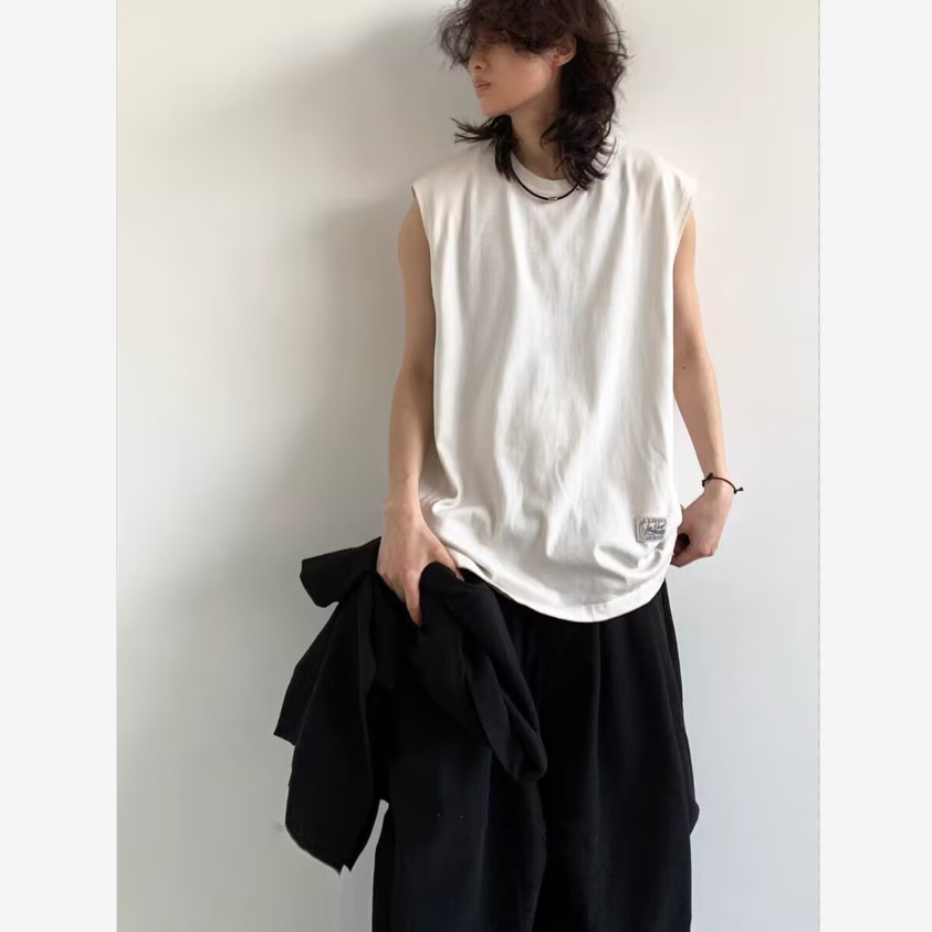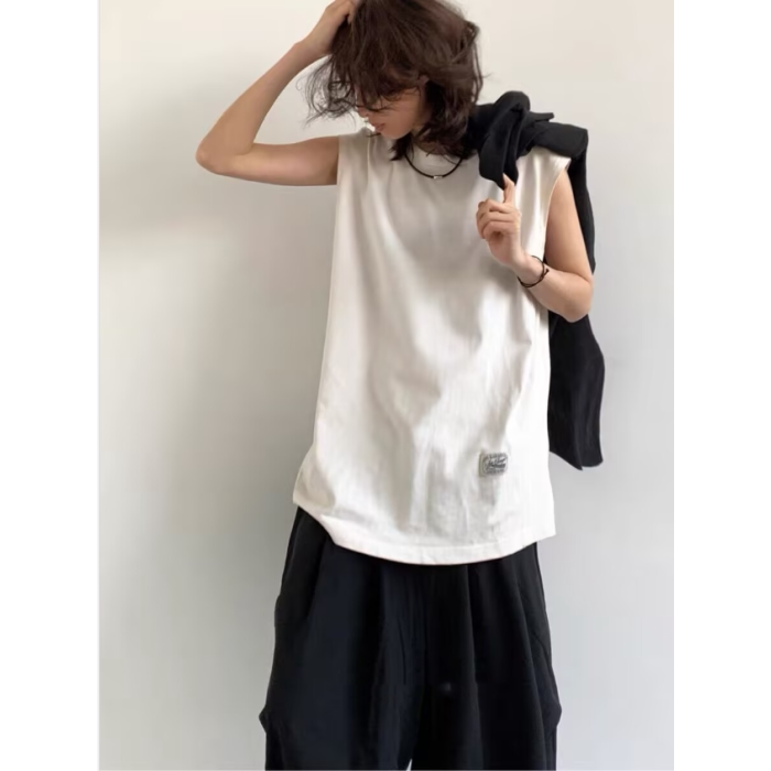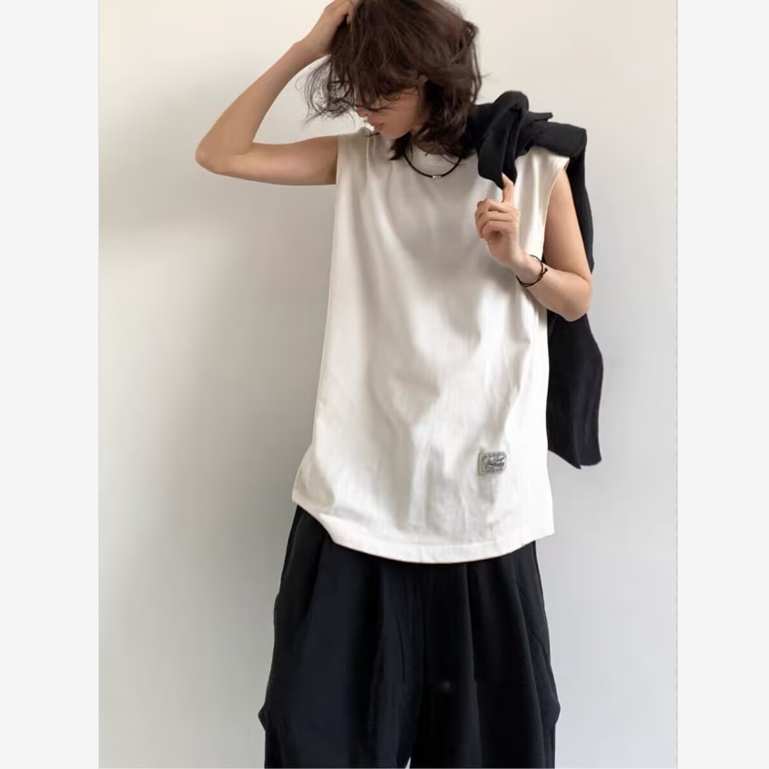 日系慵懶風基礎款背心男女夏季寬松美式休閒百搭純色無袖打底汗衫
