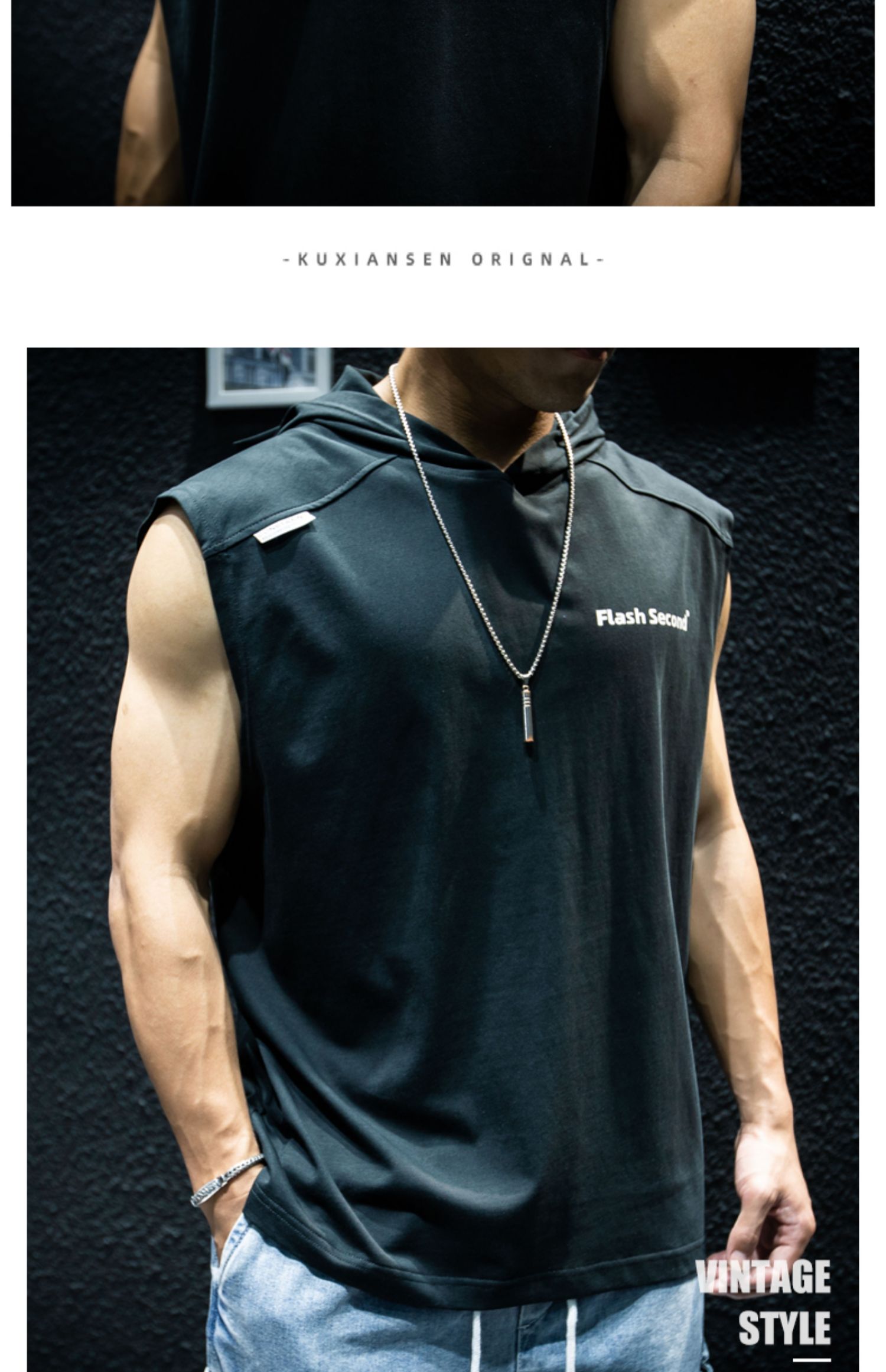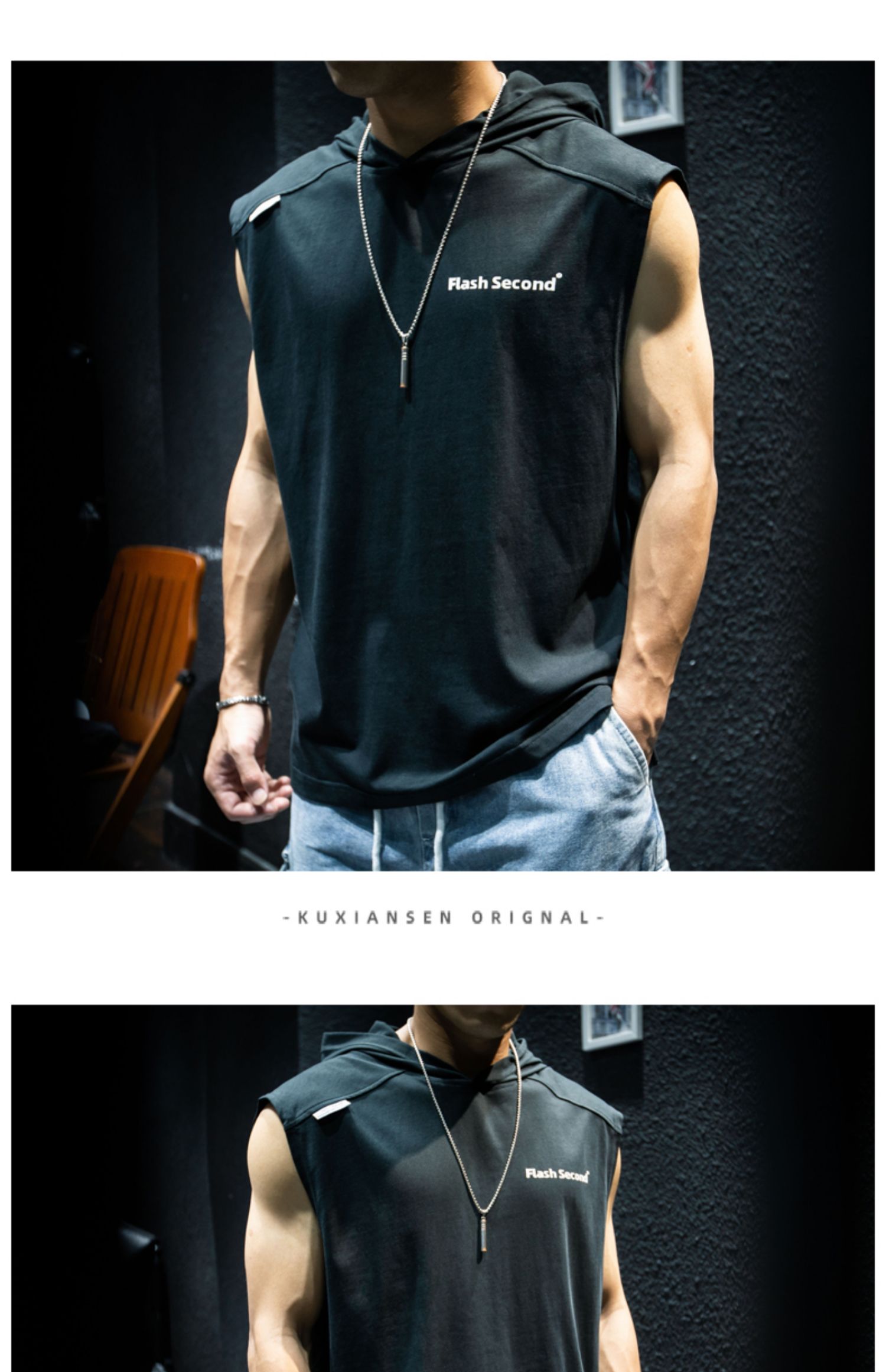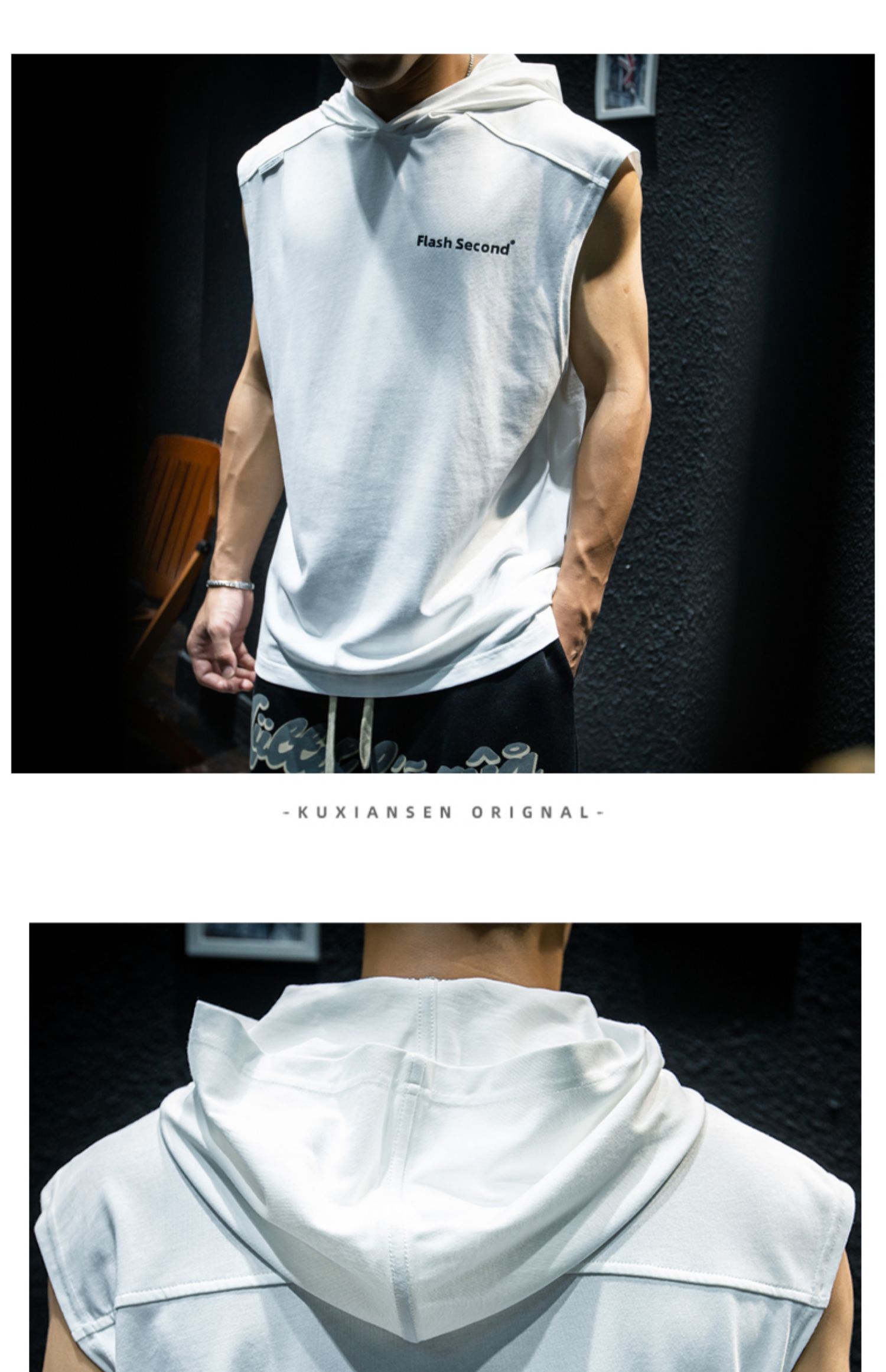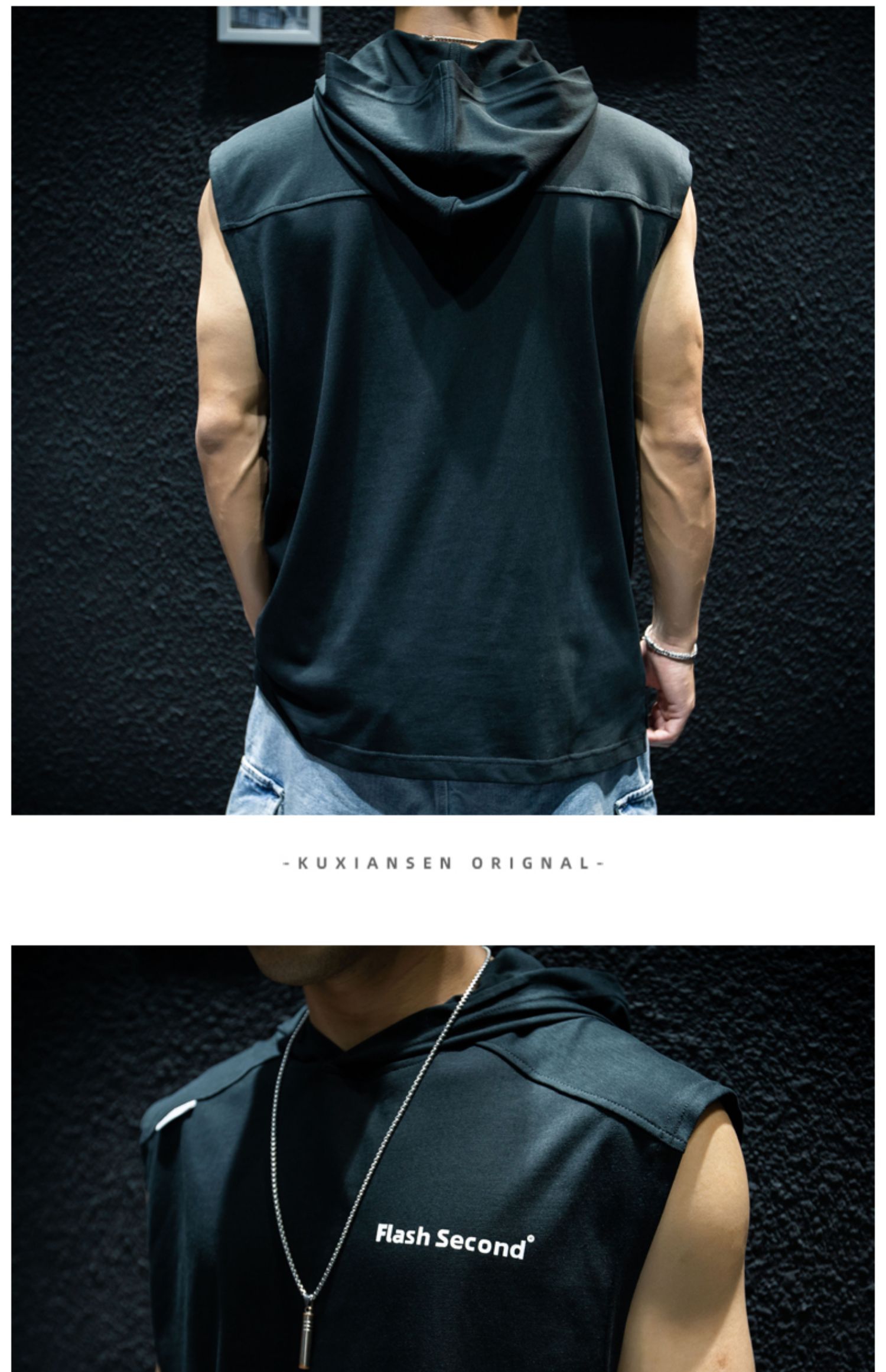 夏季連帽無袖t恤背心男寬松潮牌ins坎肩短袖大碼運動健身純棉半袖