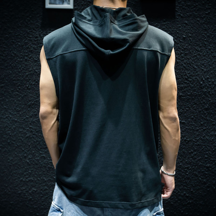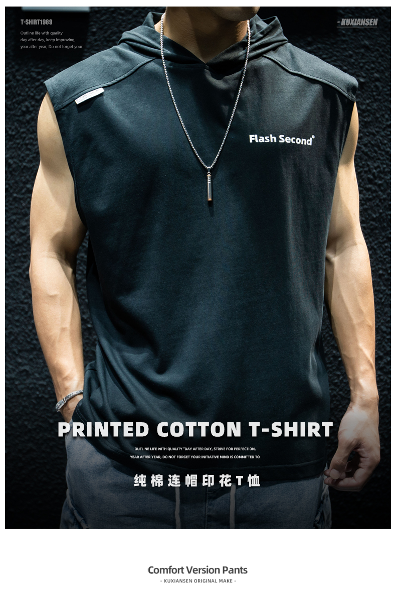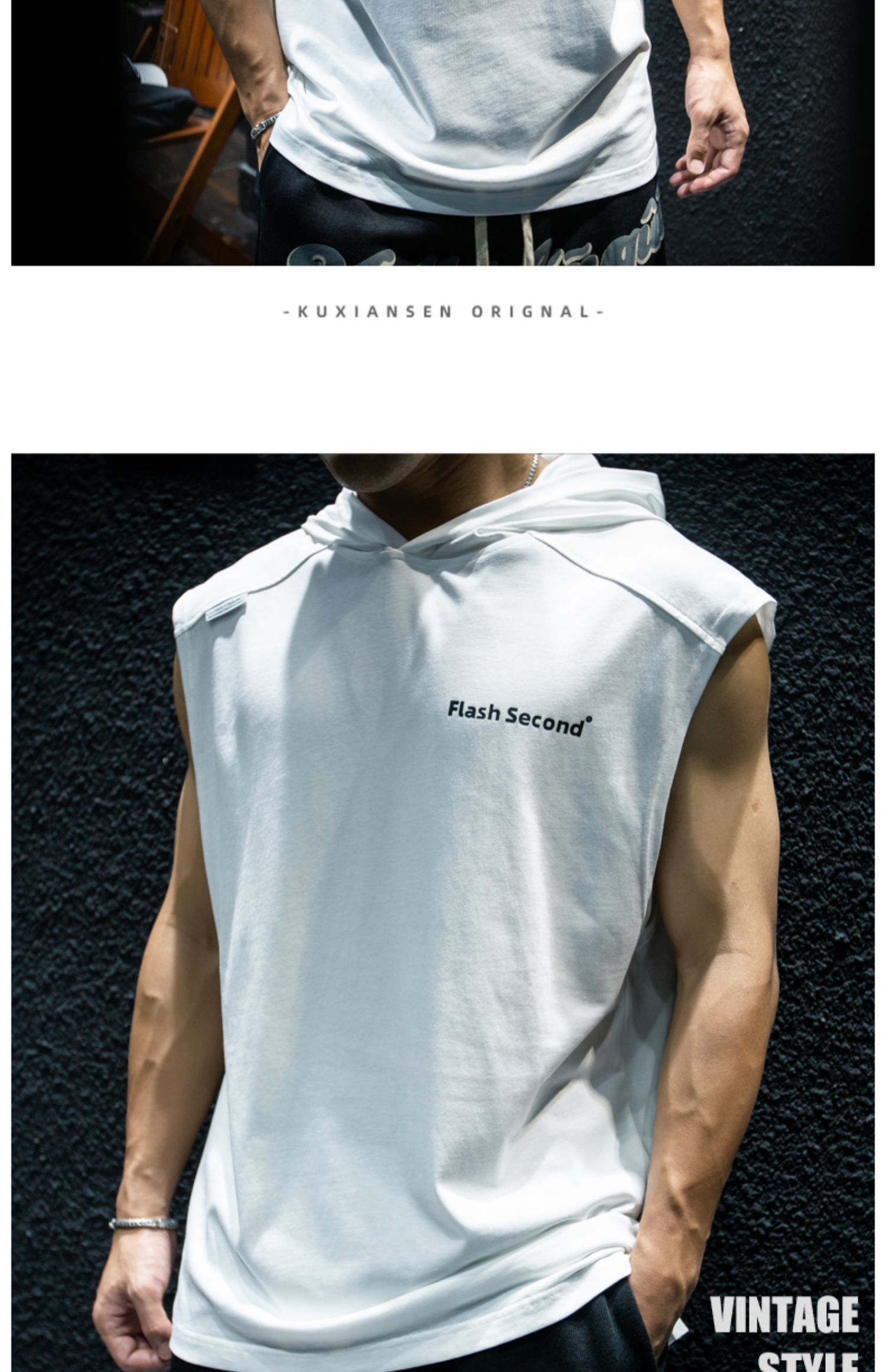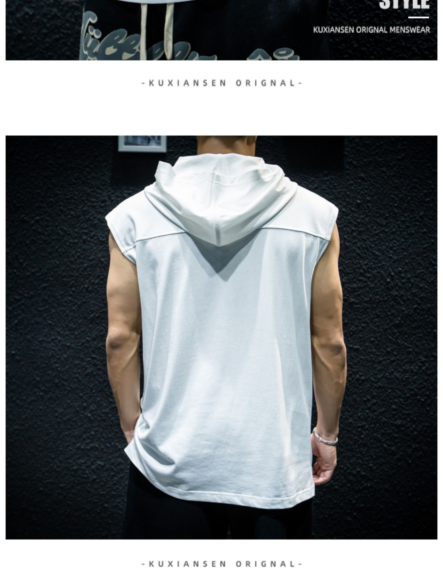 夏季連帽無袖t恤背心男寬松潮牌ins坎肩短袖大碼運動健身純棉半袖