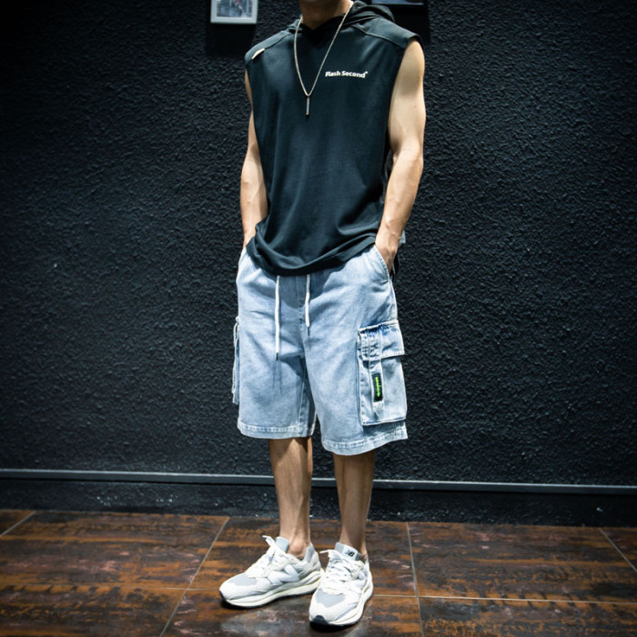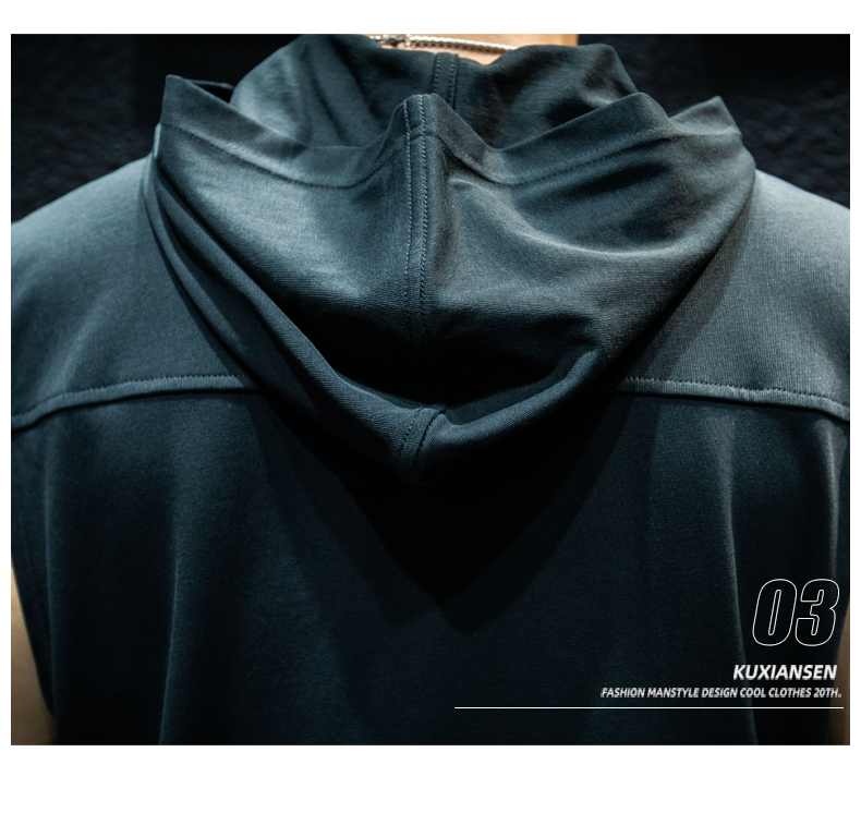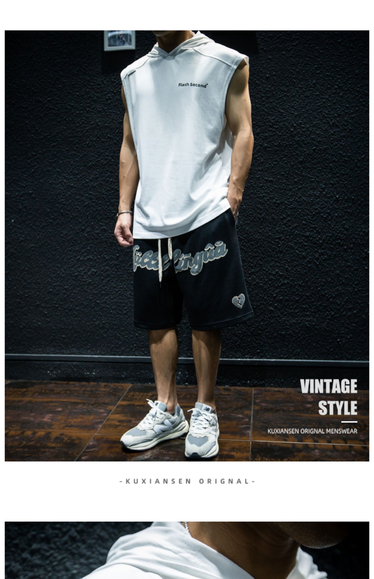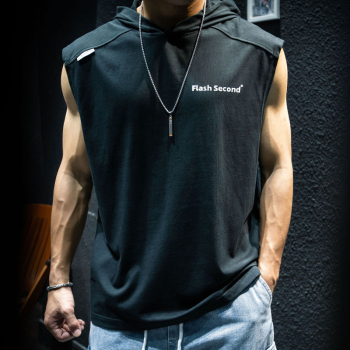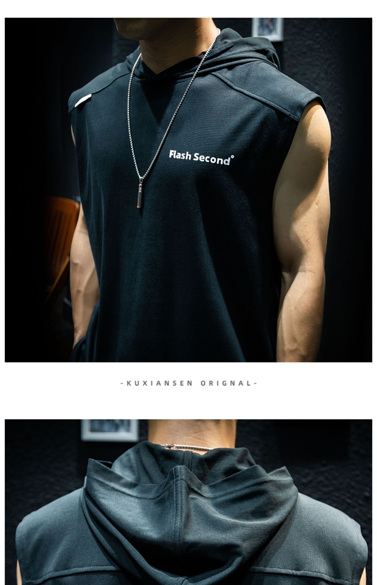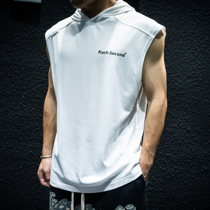 夏季連帽無袖t恤背心男寬松潮牌ins坎肩短袖大碼運動健身純棉半袖