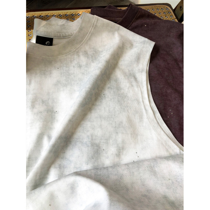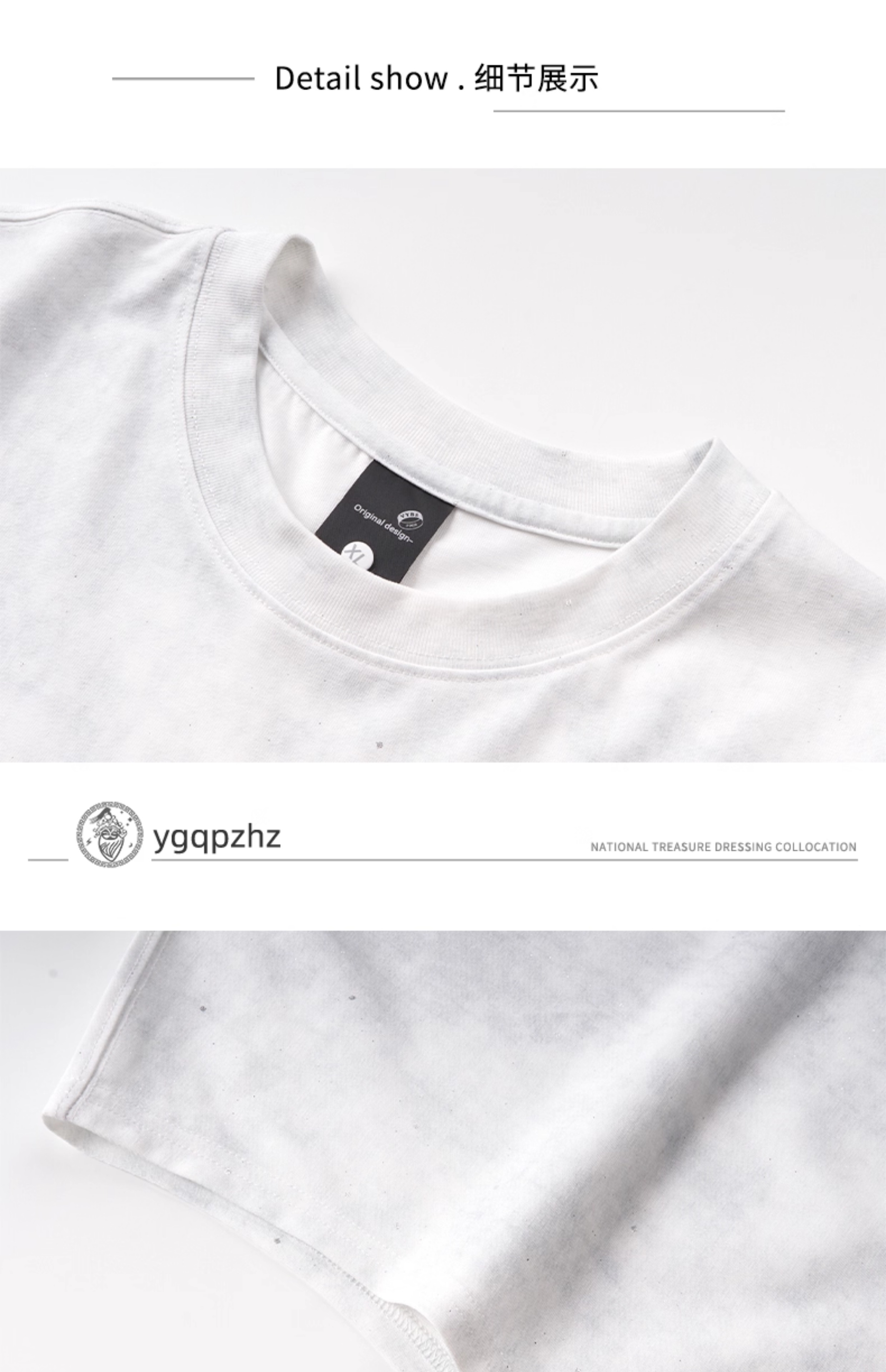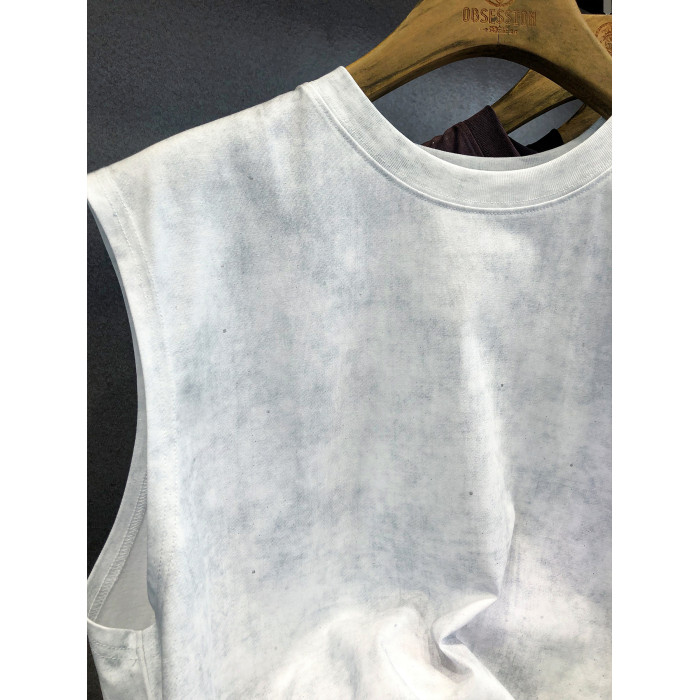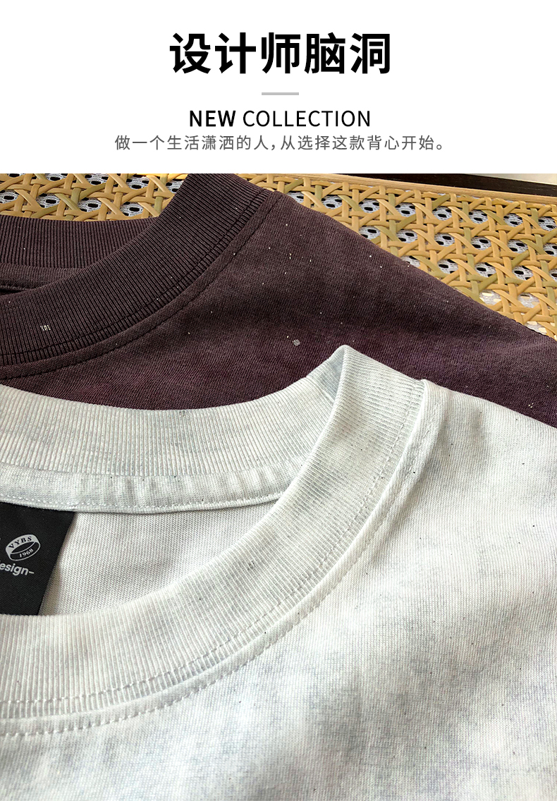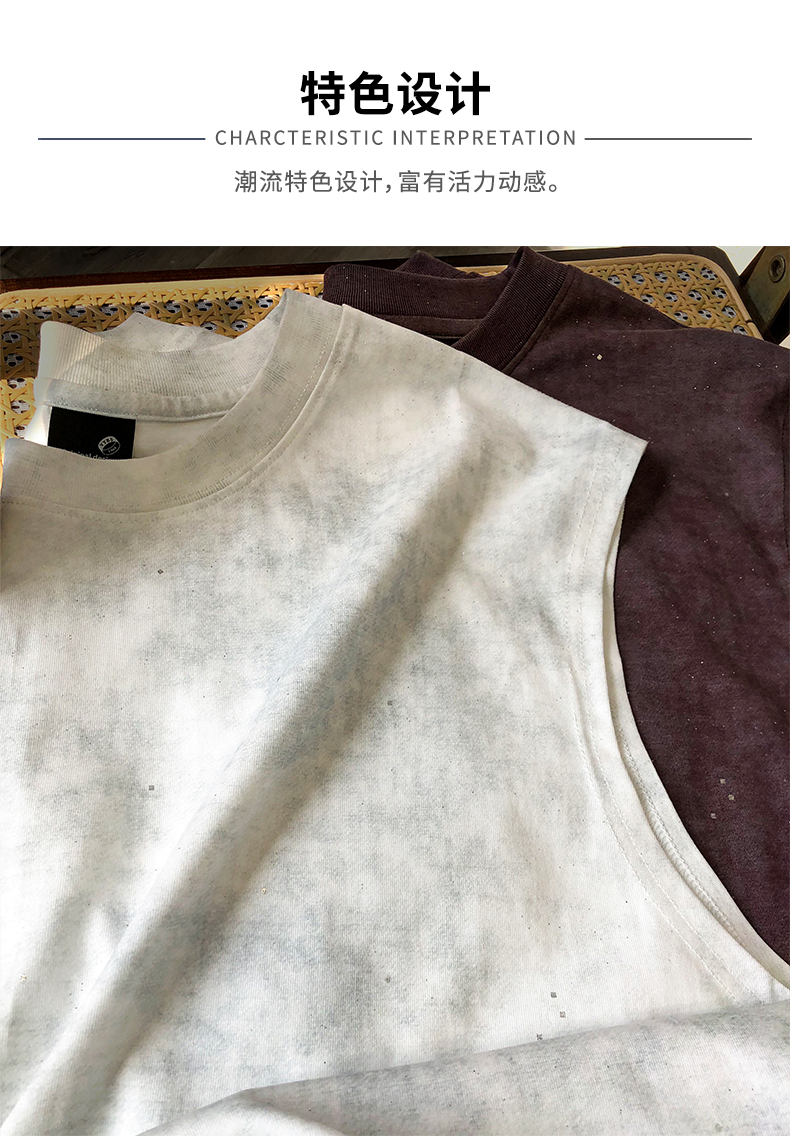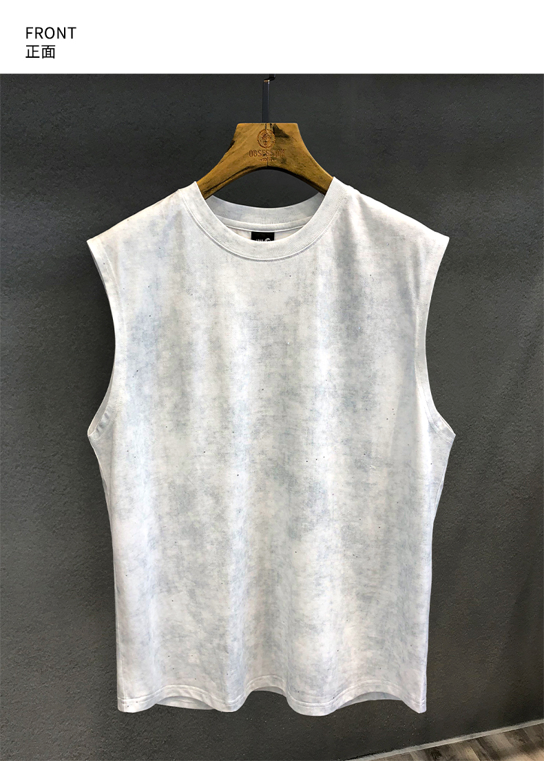 涼感透氣棉復古雲菸軋染設計坎肩無袖T恤男士背心2025寬松體恤男