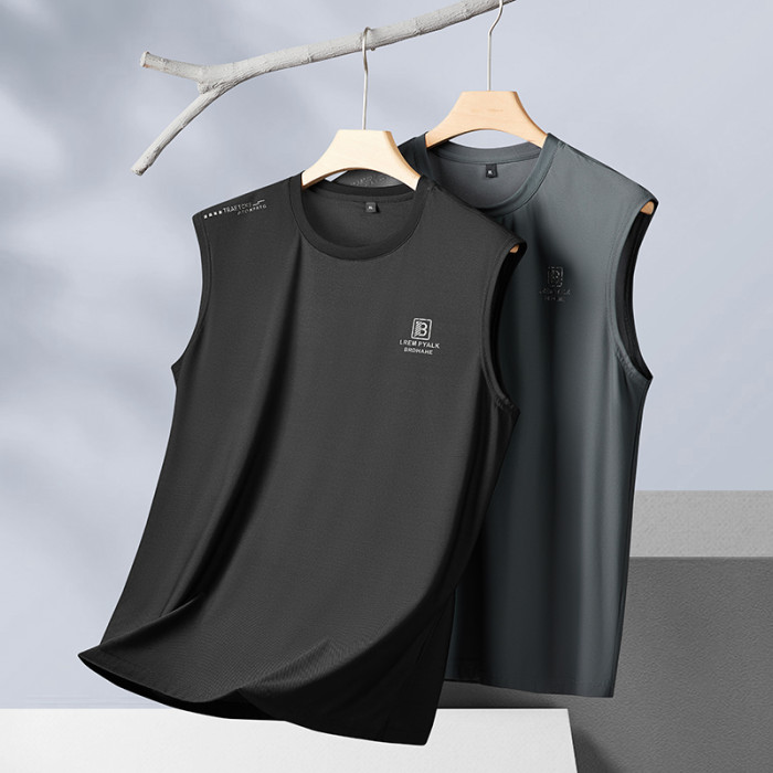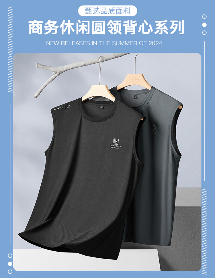 加肥加大碼背心男夏季寬松胖子汗衫圓領冰絲加肥男士無袖t恤坎肩