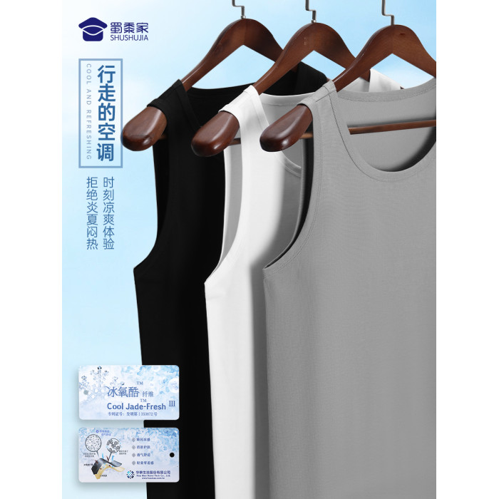 蜀黍家冰氧吧棉背心男冰絲2025新款夏季透氣跑步健身運動內搭坎肩