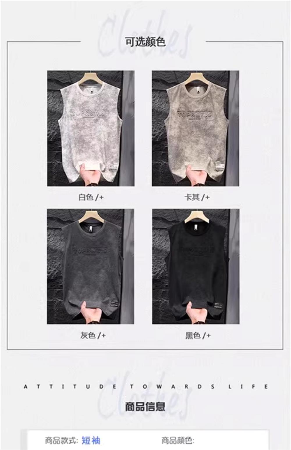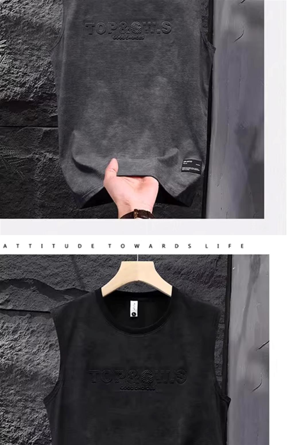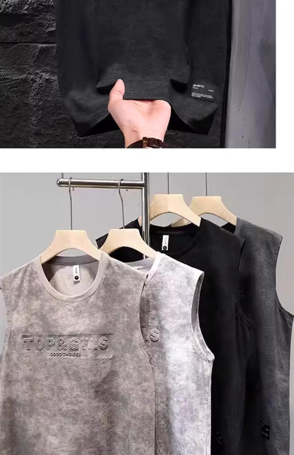 高級復古風男士無袖T恤背心2025新款夏季休閒運動汗衫坎肩男款潮