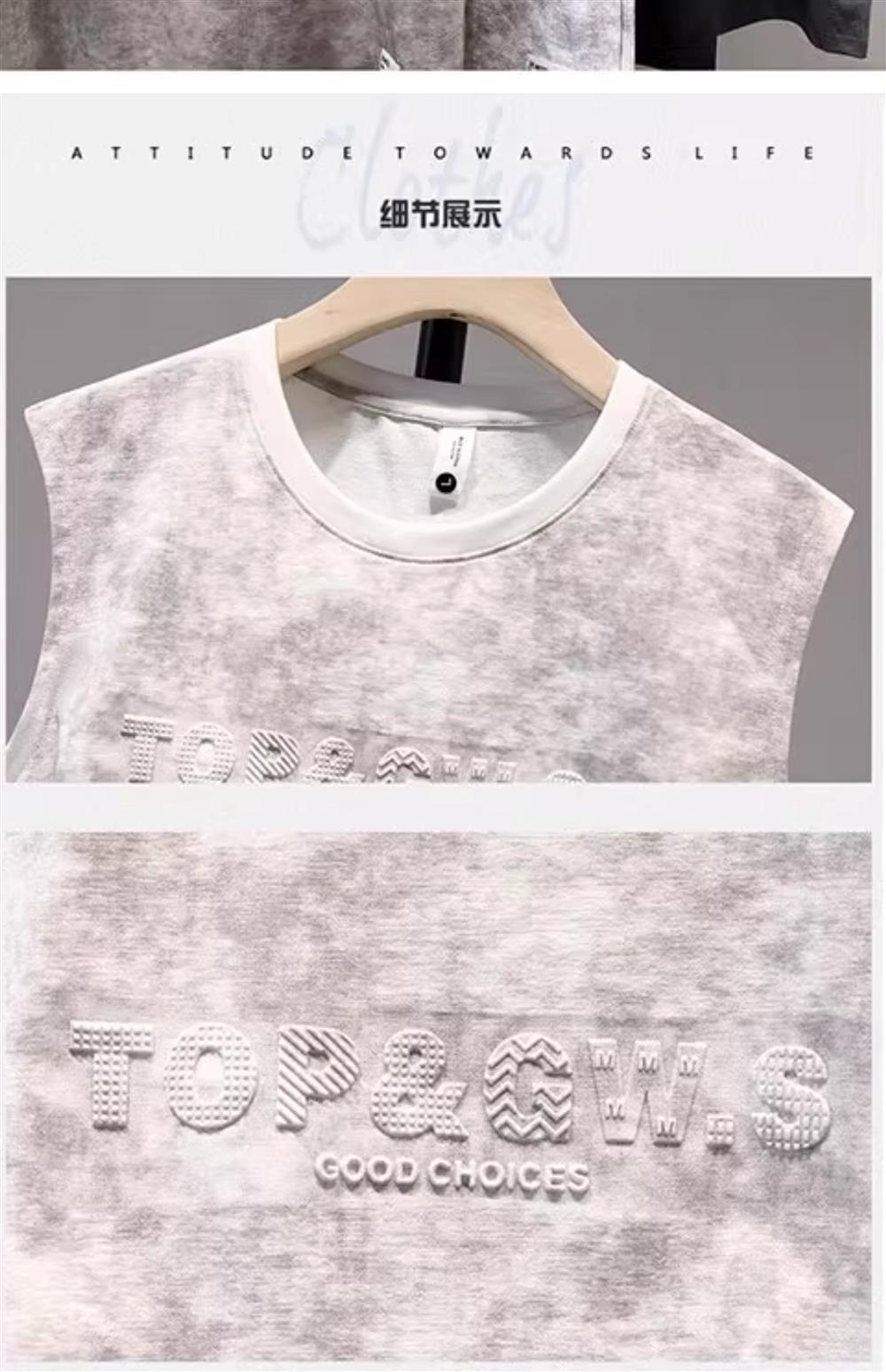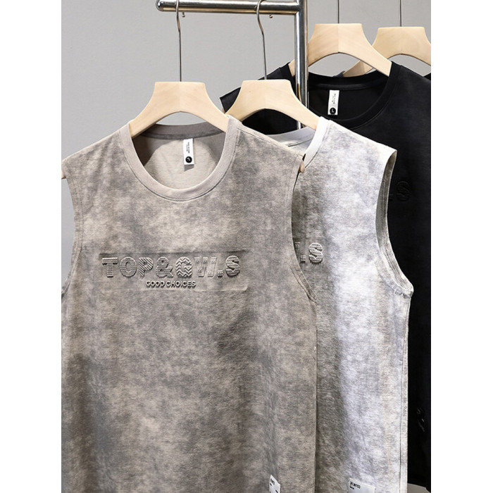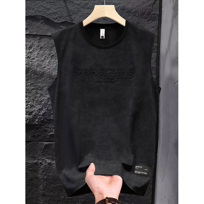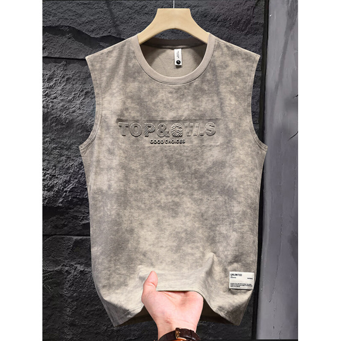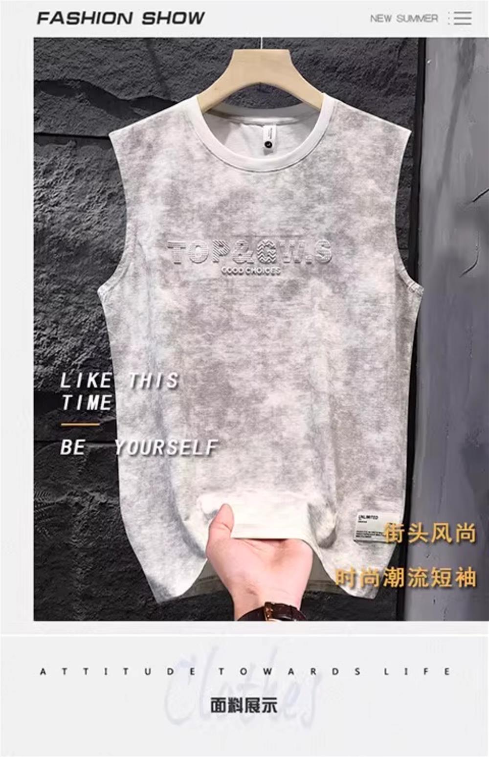 高級復古風男士無袖T恤背心2025新款夏季休閒運動汗衫坎肩男款潮