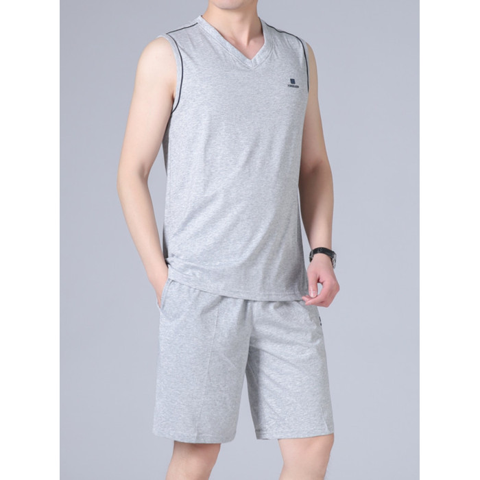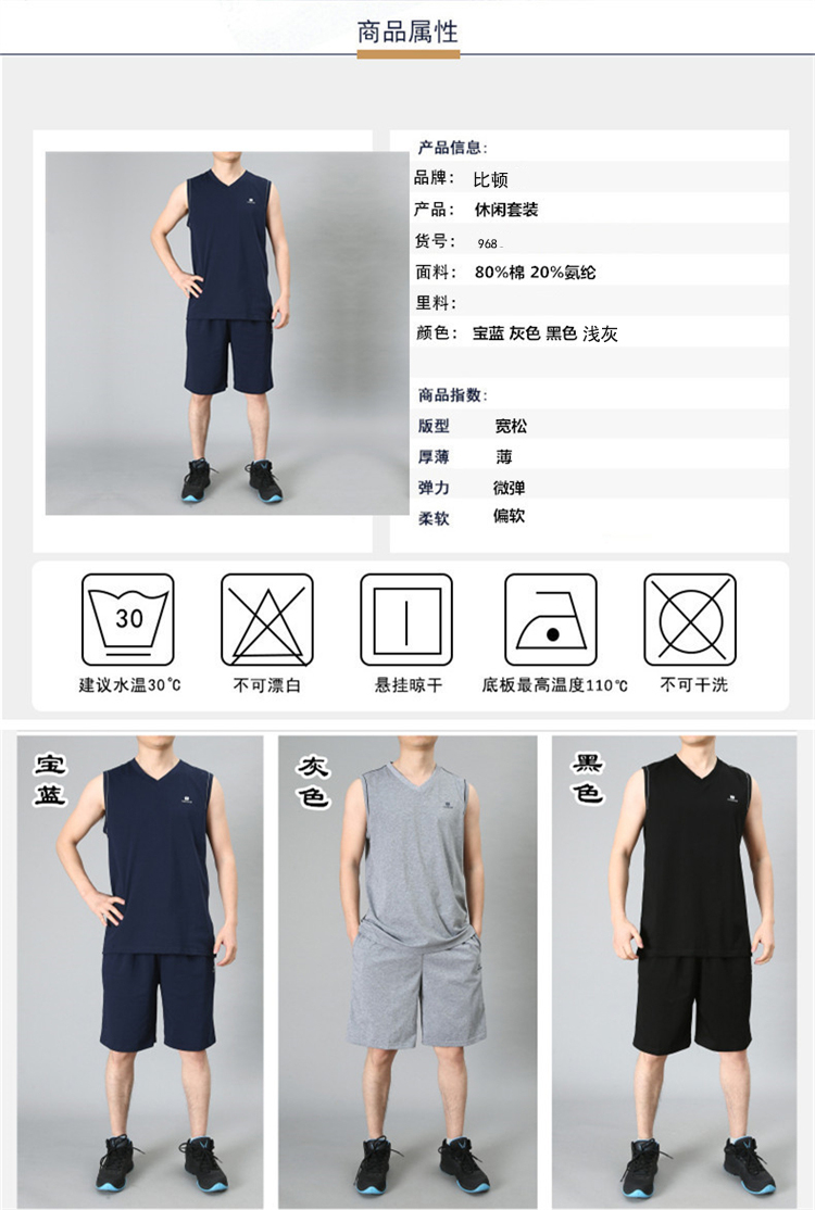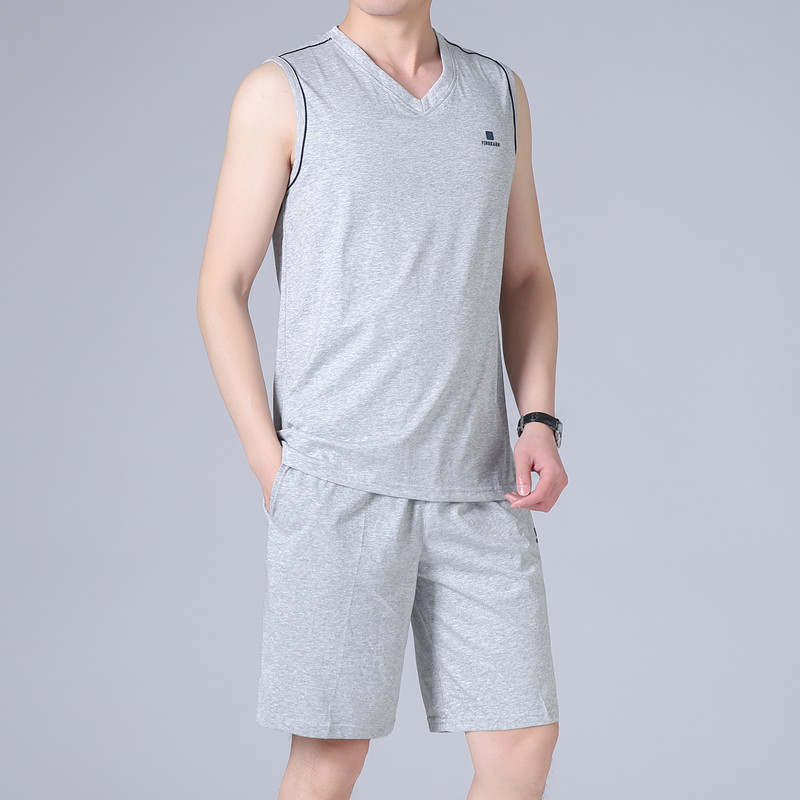 大碼無袖純棉背心男夏季運動套裝寬松透氣休閒薄款跑步健身籃球服