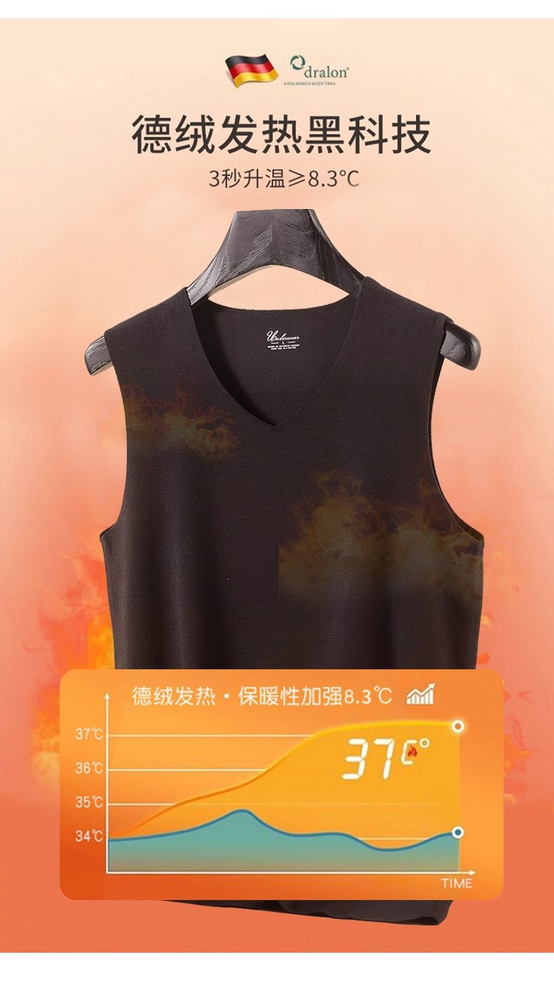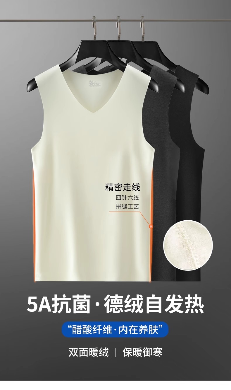 保暖背心男士5A抗菌 無痕髮熱德絨恒溫內穿冬季單件打底上衣內衣