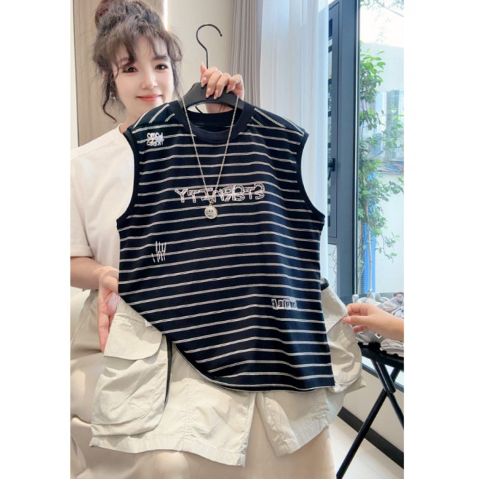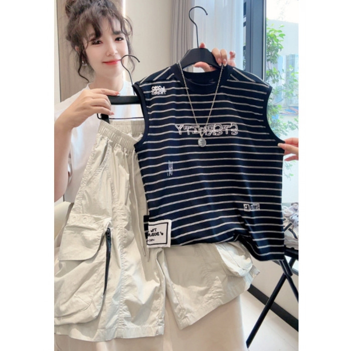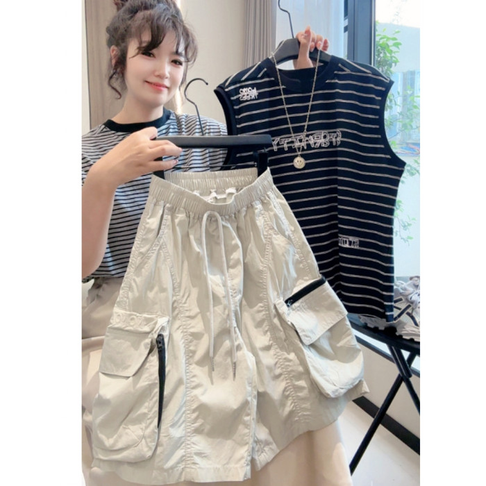 黑色條紋+工裝短褲兩件套