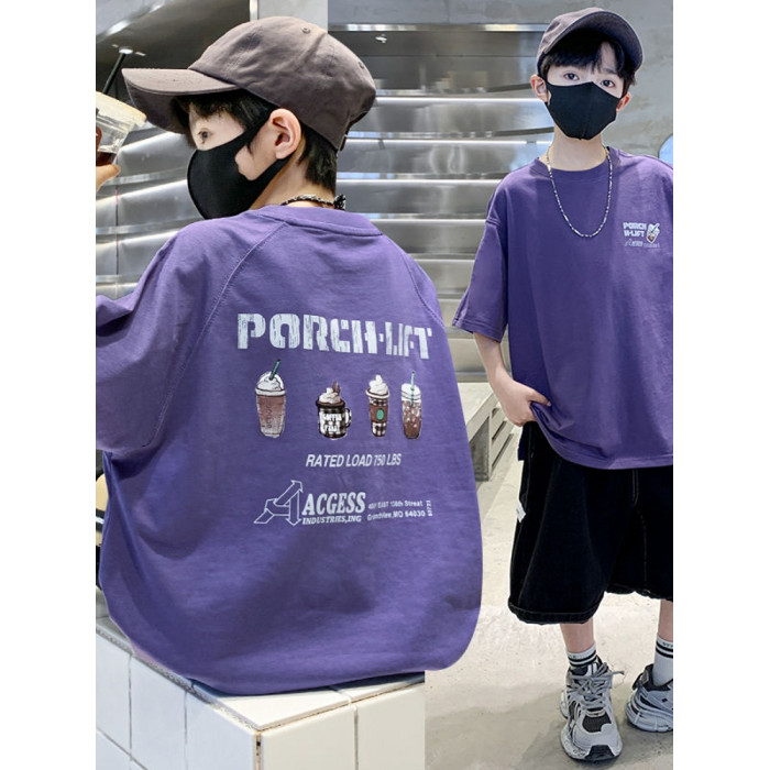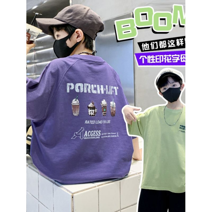 安哼安哼兒童男童夏裝T恤短袖上衣2025新款中大童夏季炸街衣服男