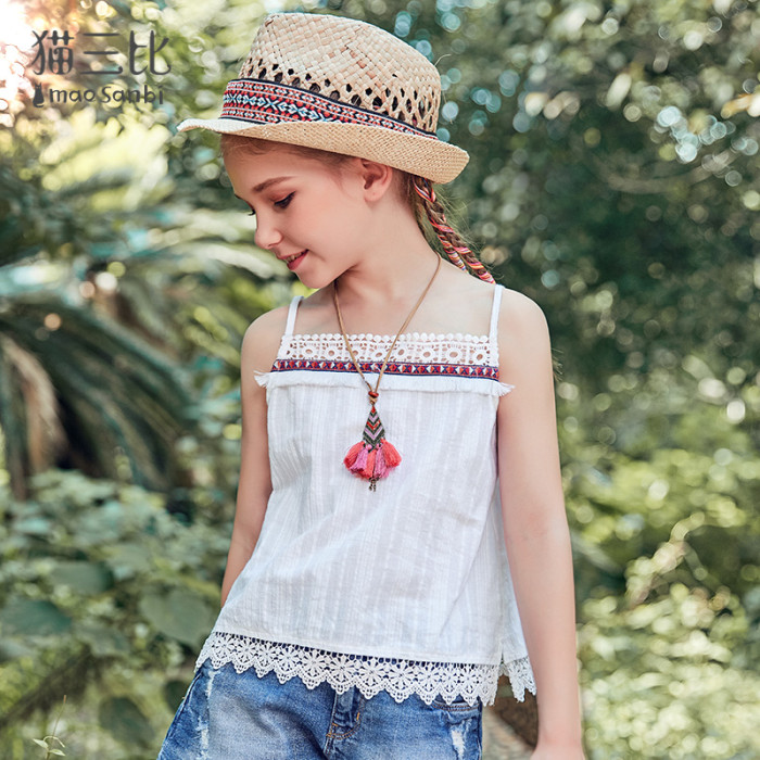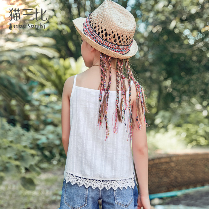 女童純棉吊帶衫2025夏季新款童裝女孩提花襯衫中大童兒童上衣薄款