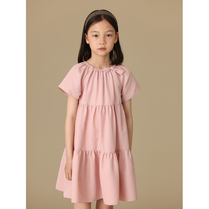 哈齒童裝夏季薄款兒童蛋糕裙粉色泡泡肌理感公主裙短袖連衣裙女童