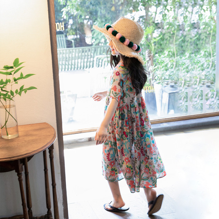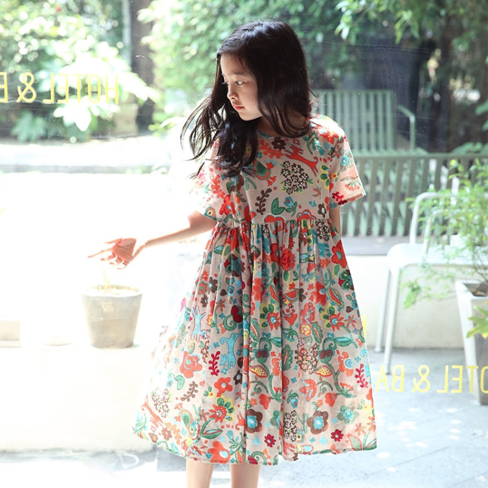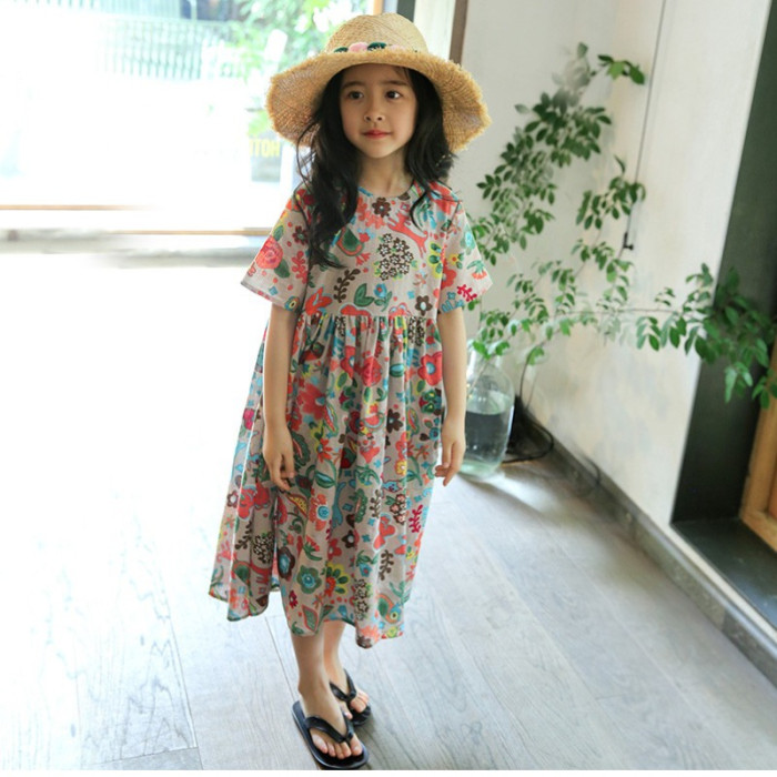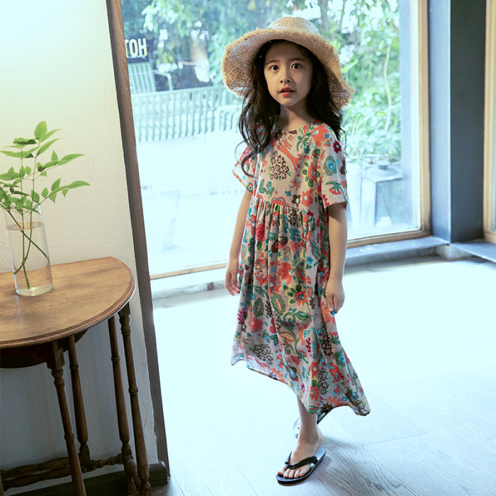 女童連衣裙2025夏裝韓版洋氣女大童棉麻中長款小碎花裙子夏薄款潮