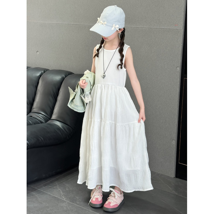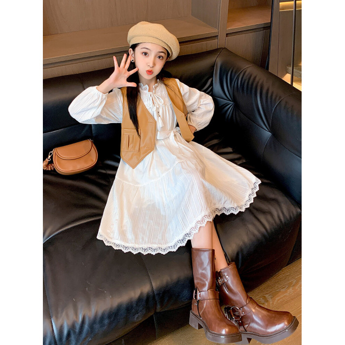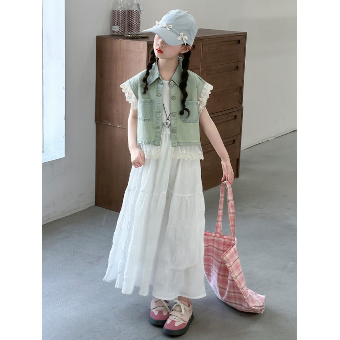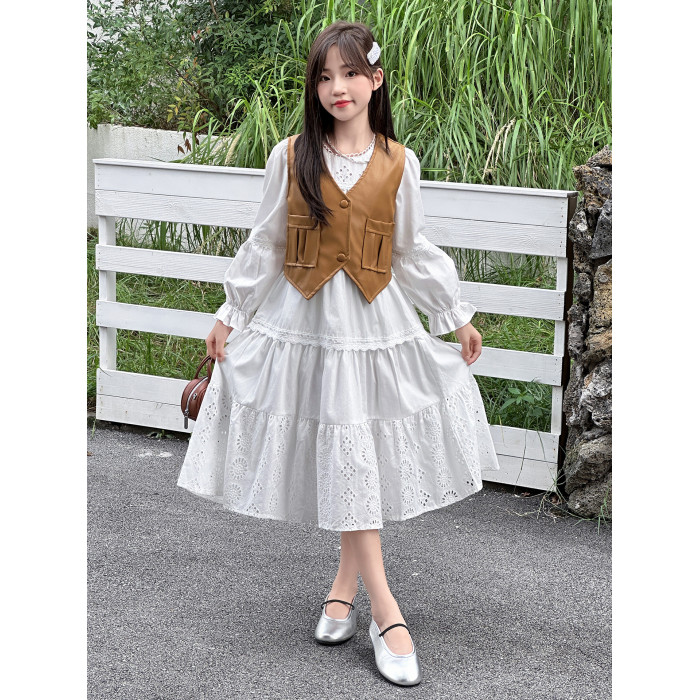 女童連衣裙套裝春秋兒童春夏季馬甲大童白色裙子兩件套女孩親子裝