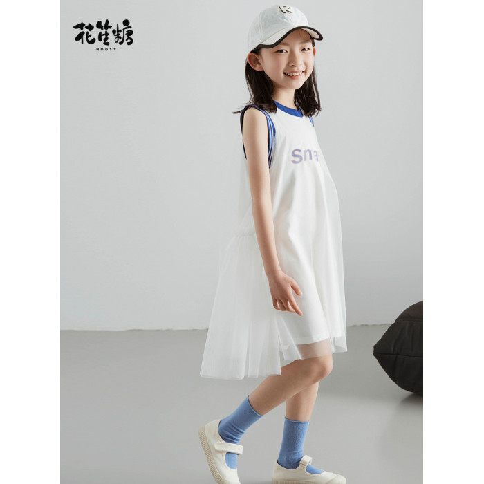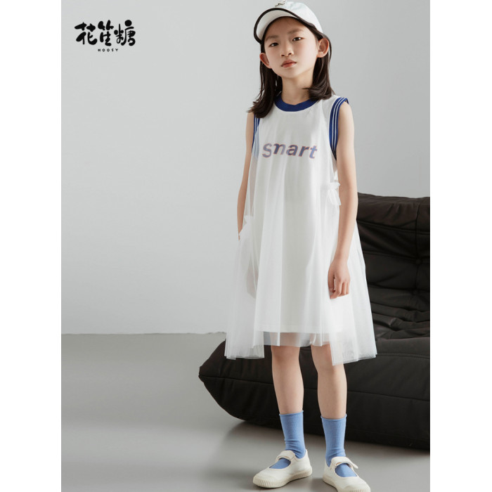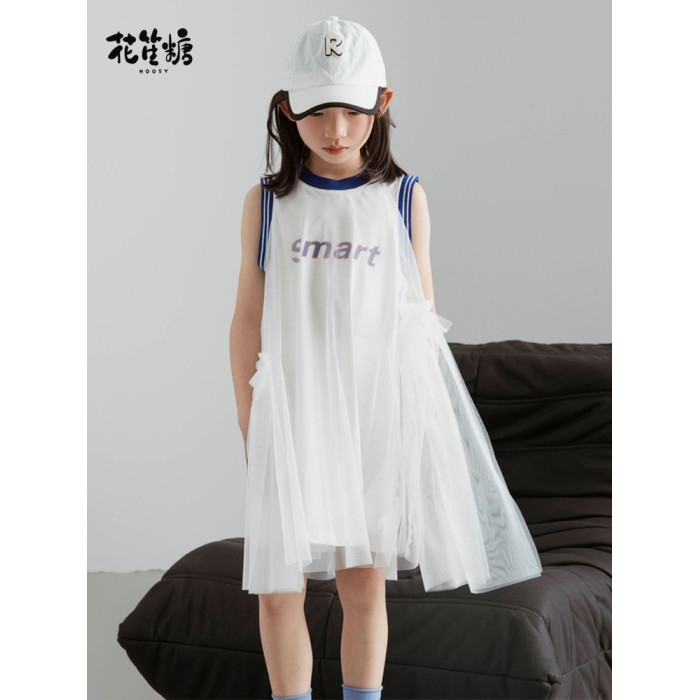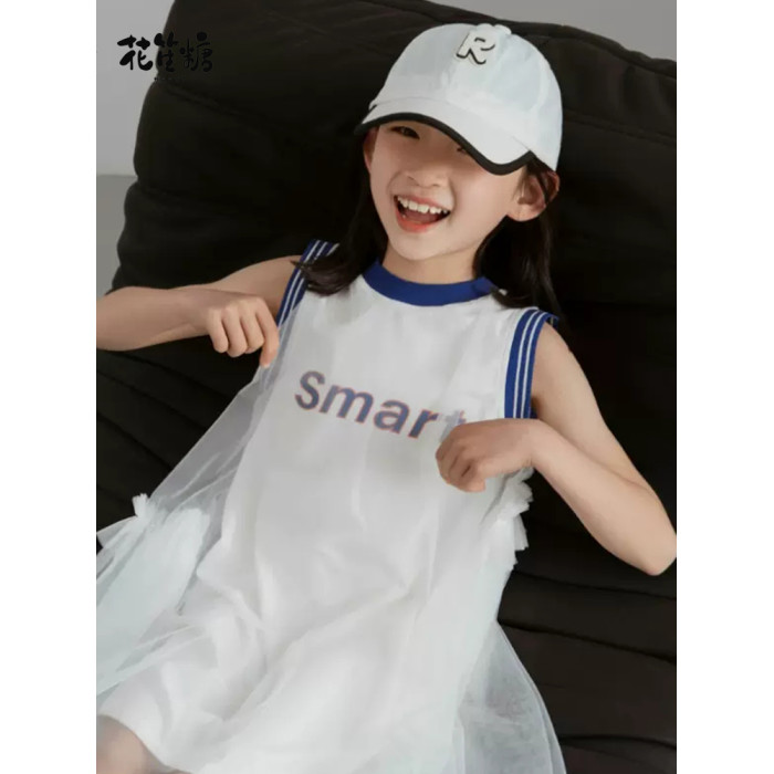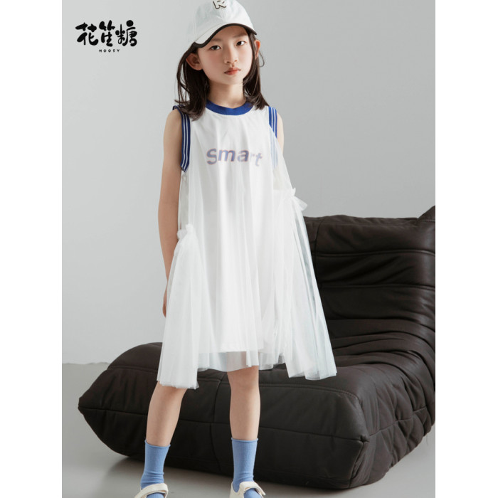 大童女童網紗連衣裙簡約夏裝兒童無袖裙子小女孩紗裙童裝背心裙新