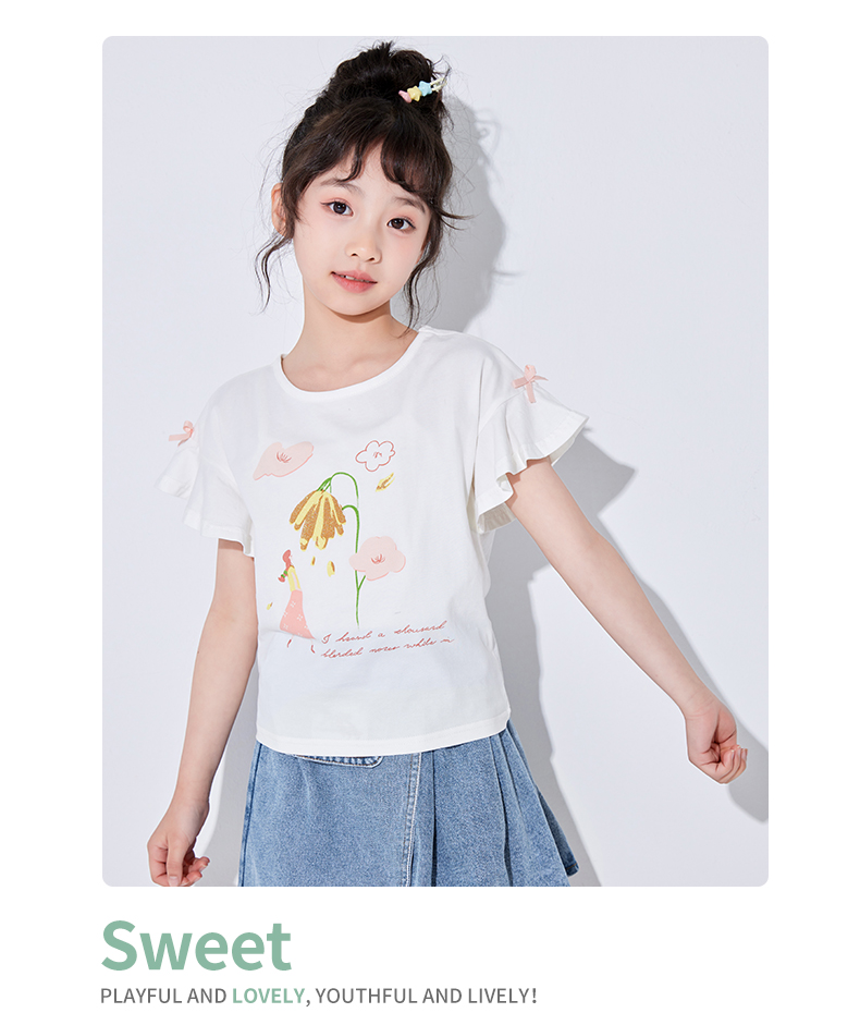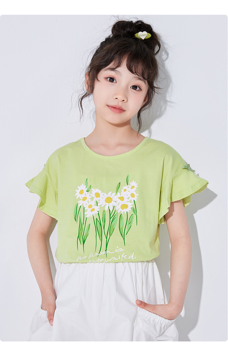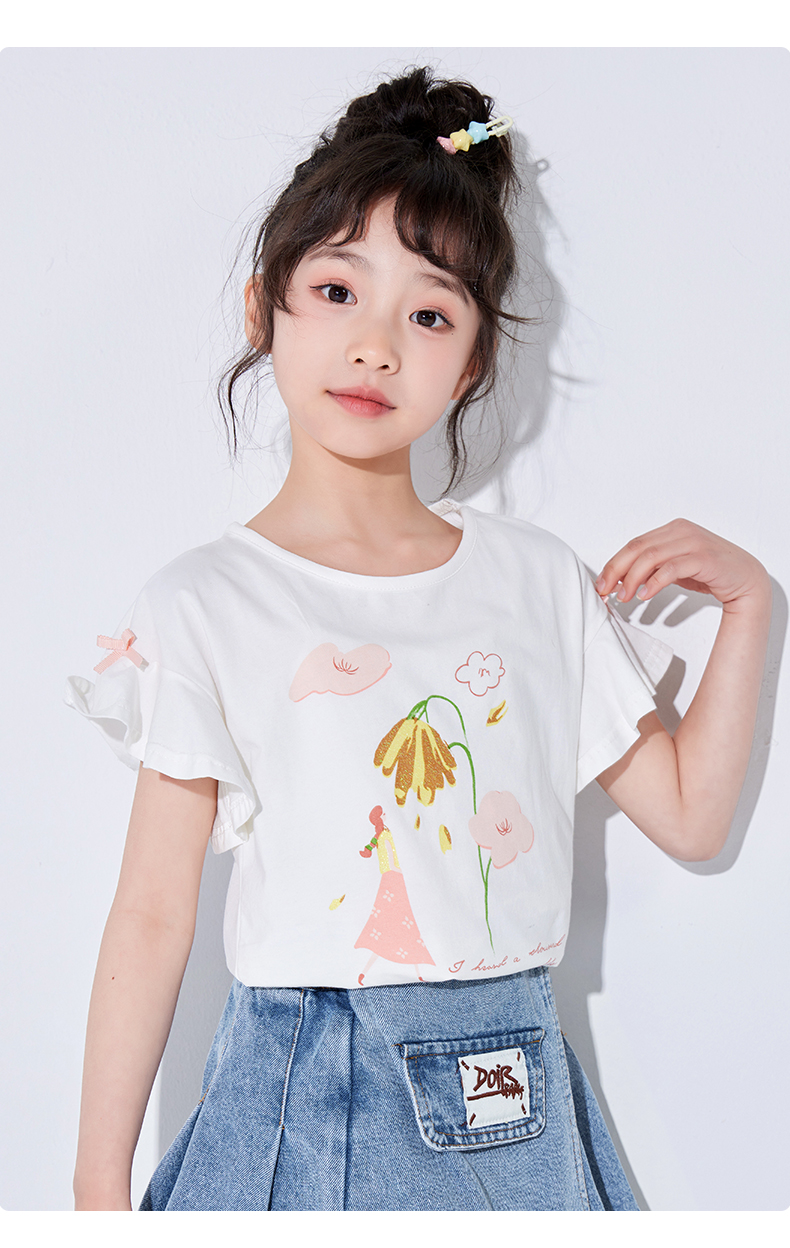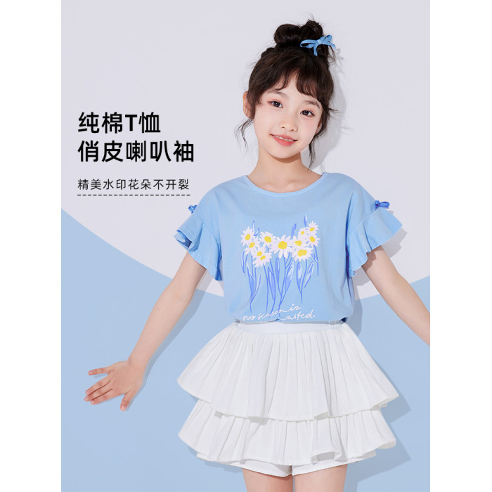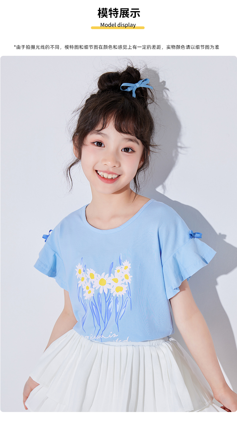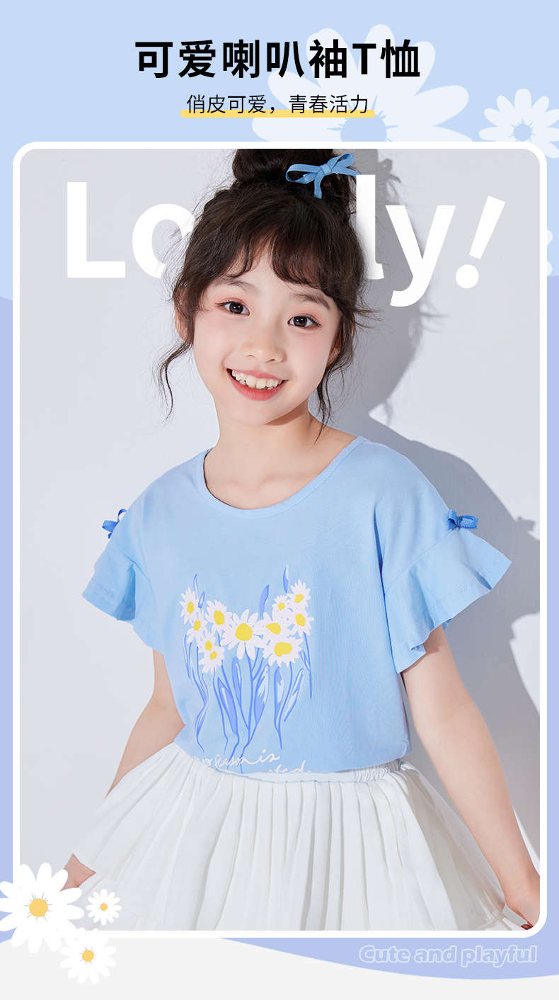 女童短袖t恤夏季薄款2025新款兒童純棉上衣喇叭袖洋氣夏天女孩
