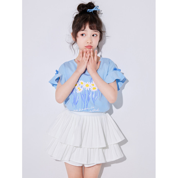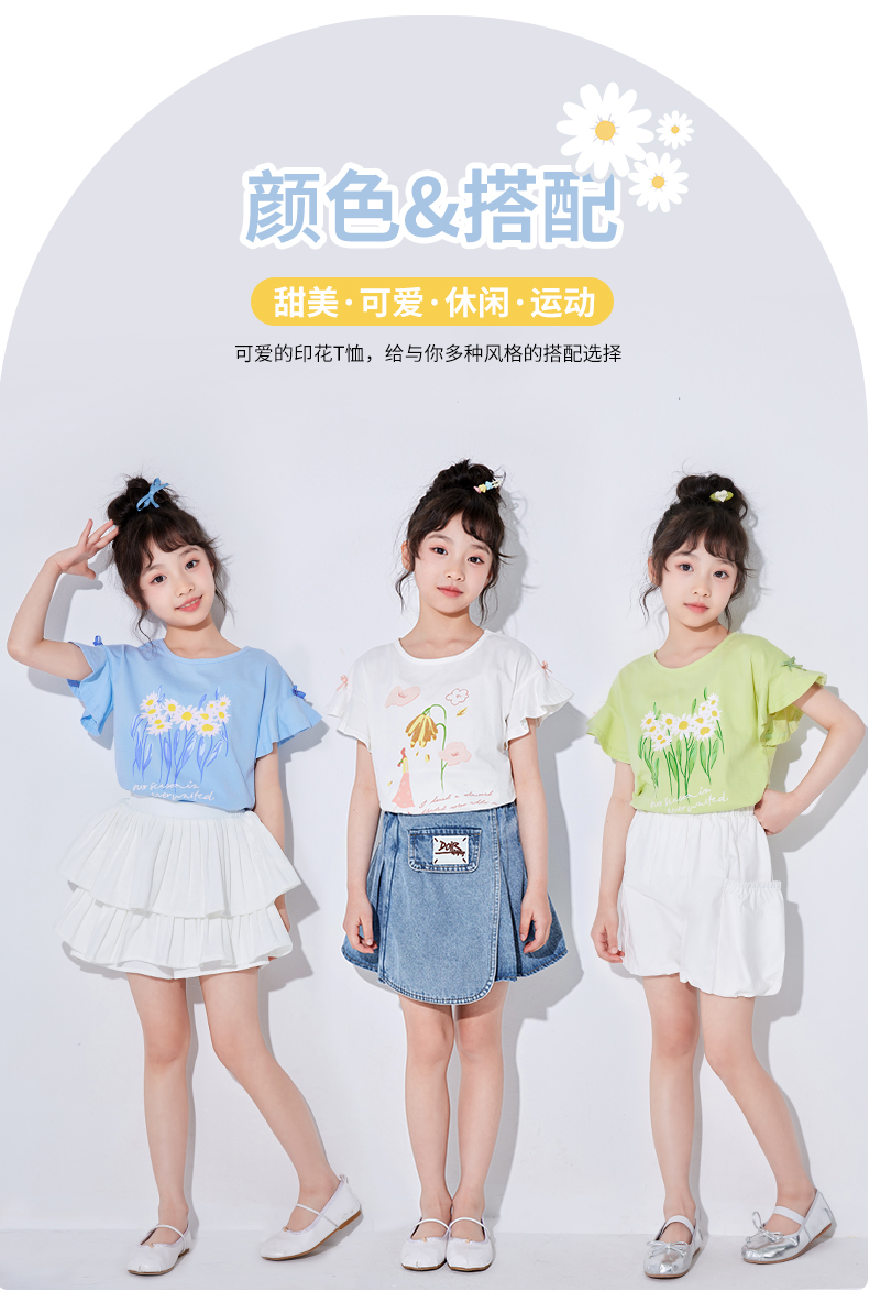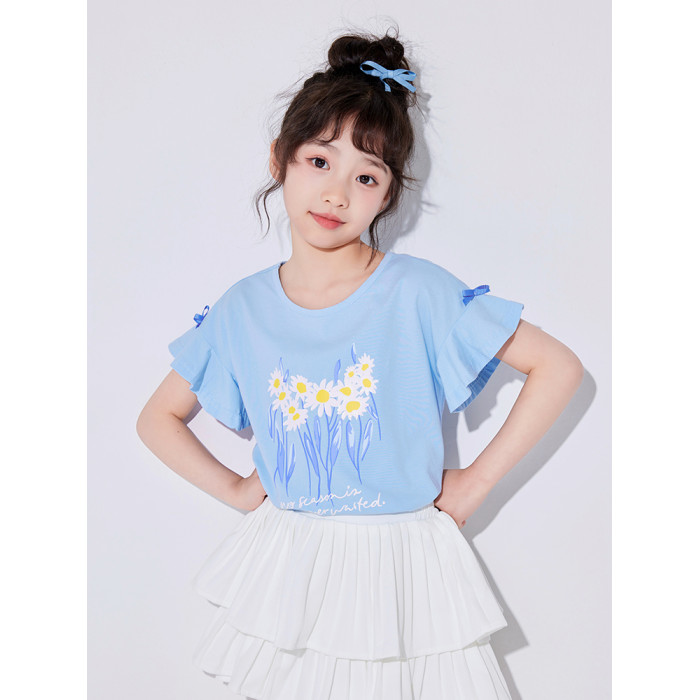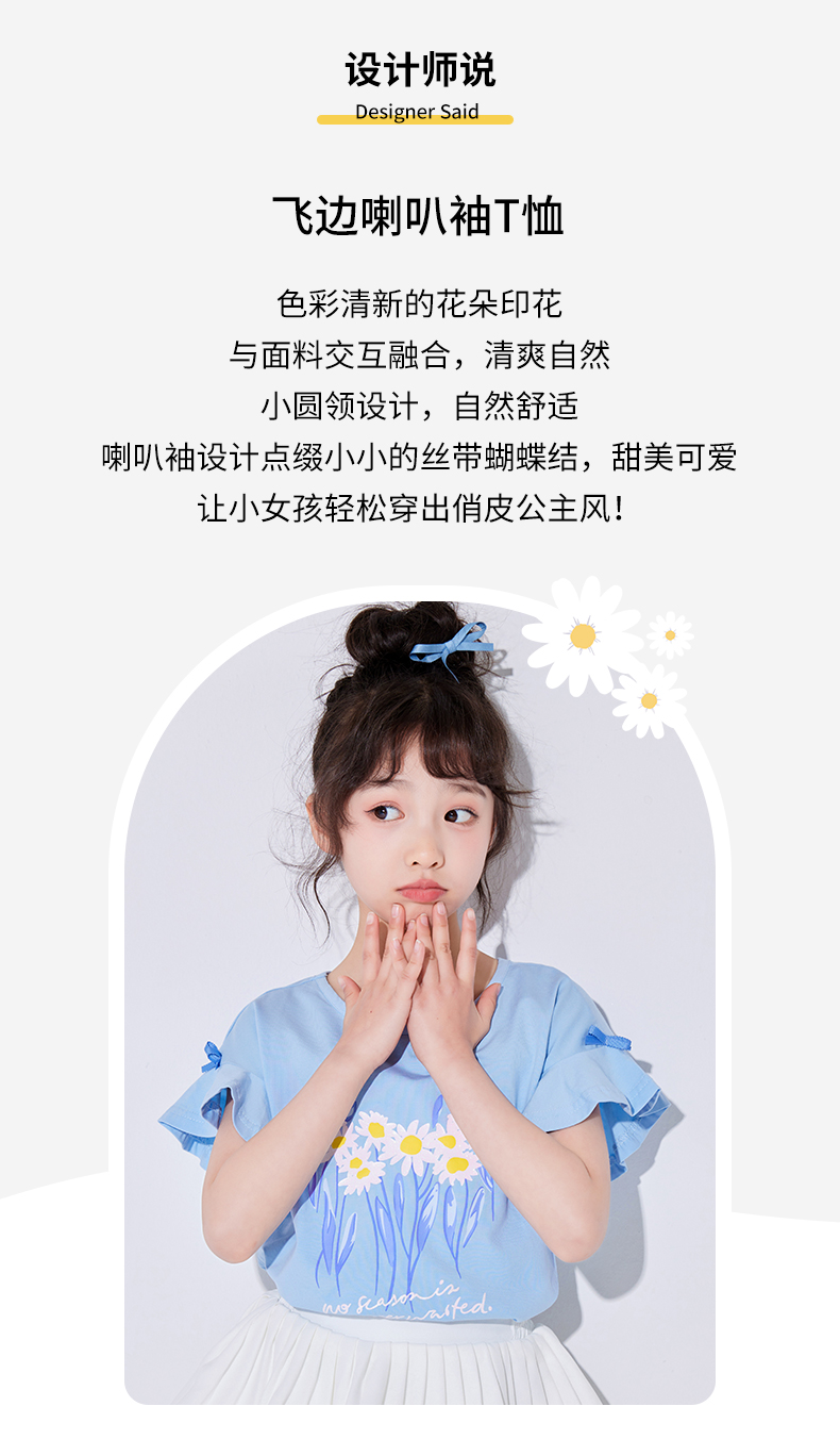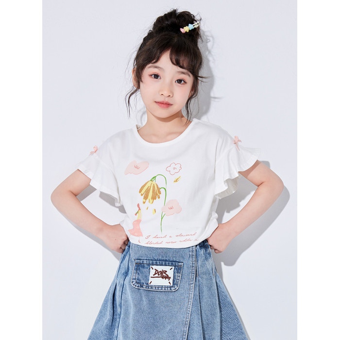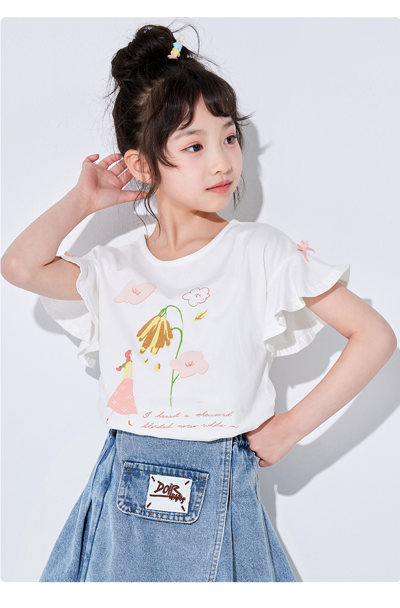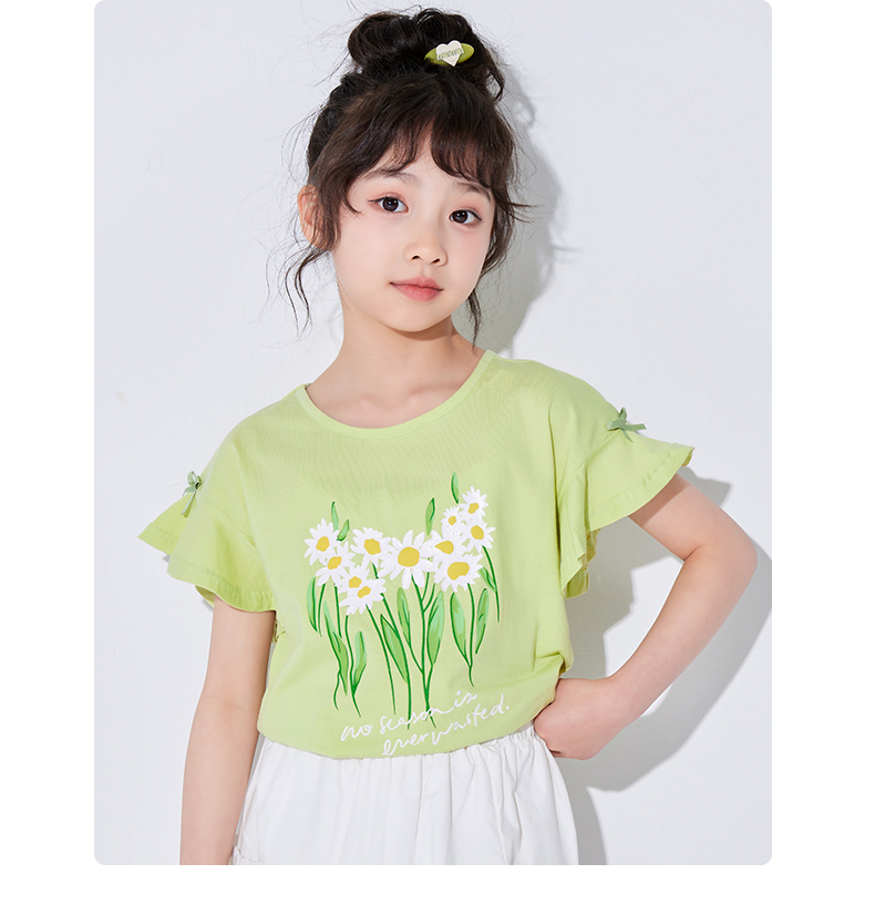 女童短袖t恤夏季薄款2025新款兒童純棉上衣喇叭袖洋氣夏天女孩