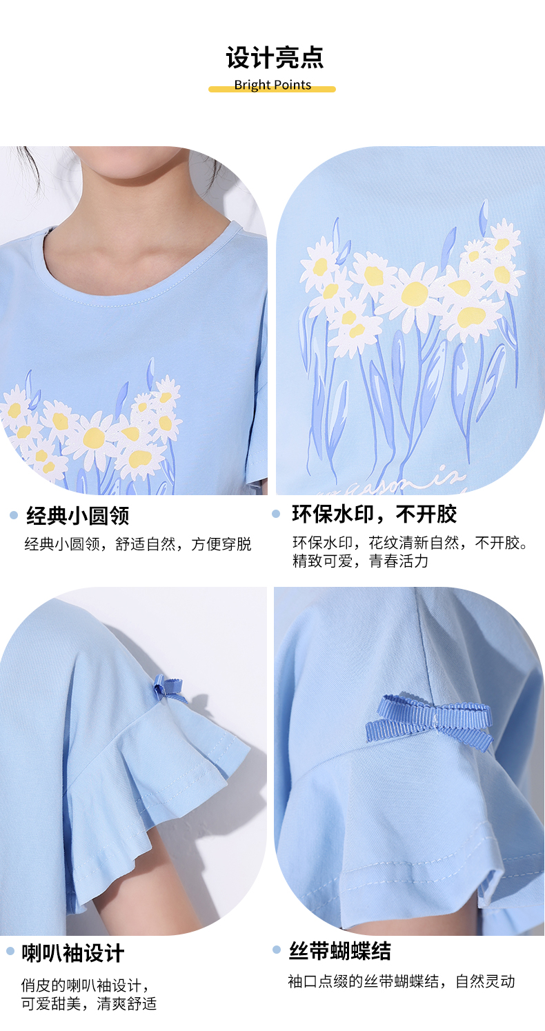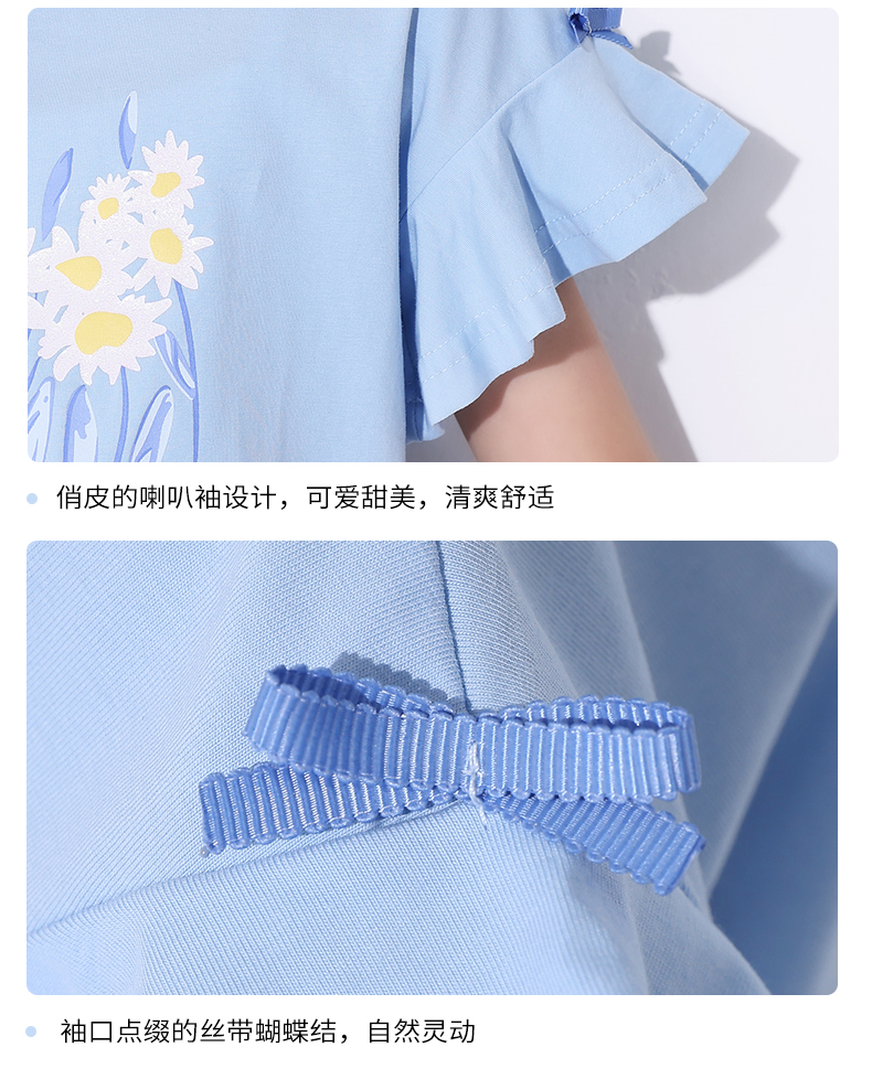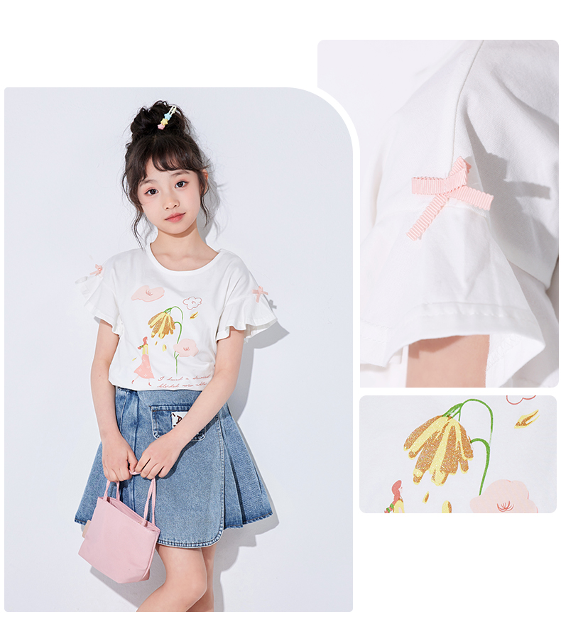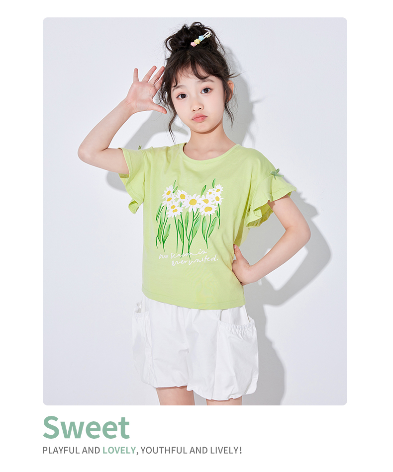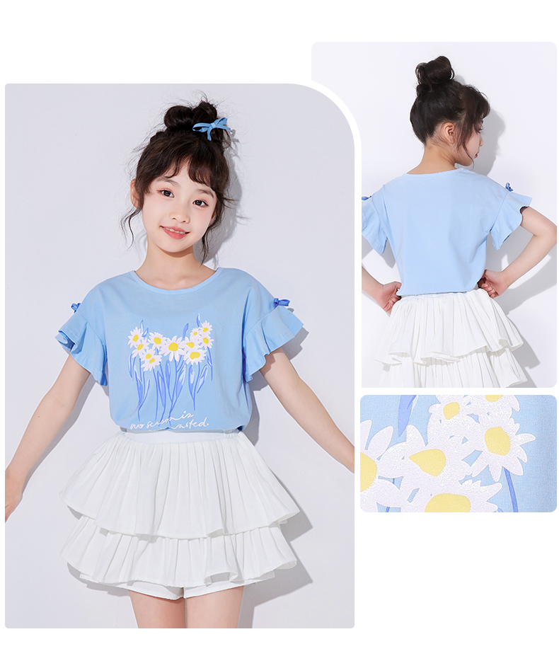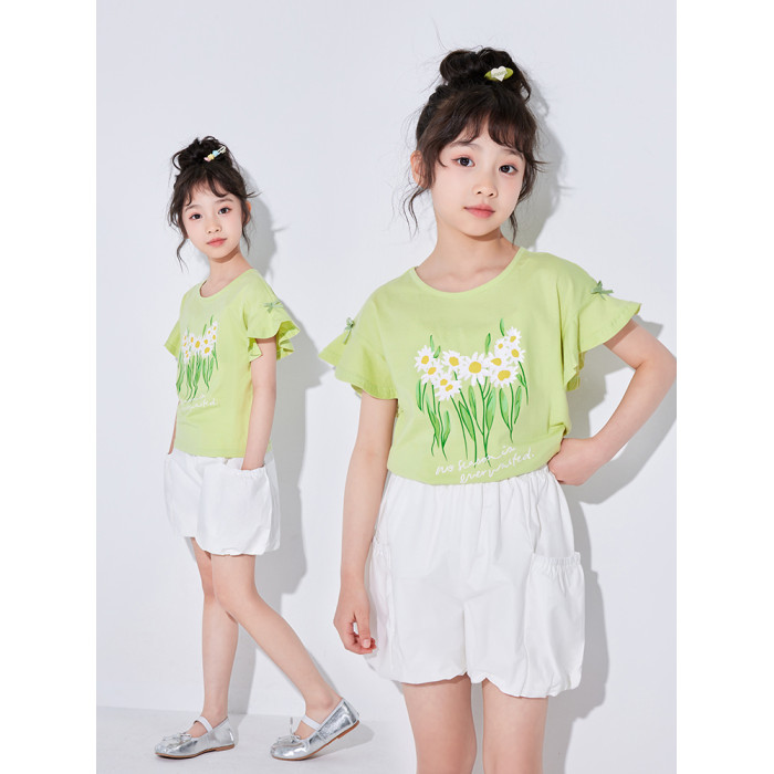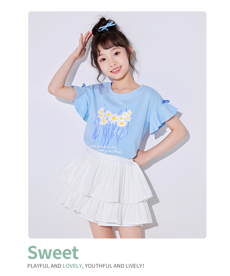 女童短袖t恤夏季薄款2025新款兒童純棉上衣喇叭袖洋氣夏天女孩